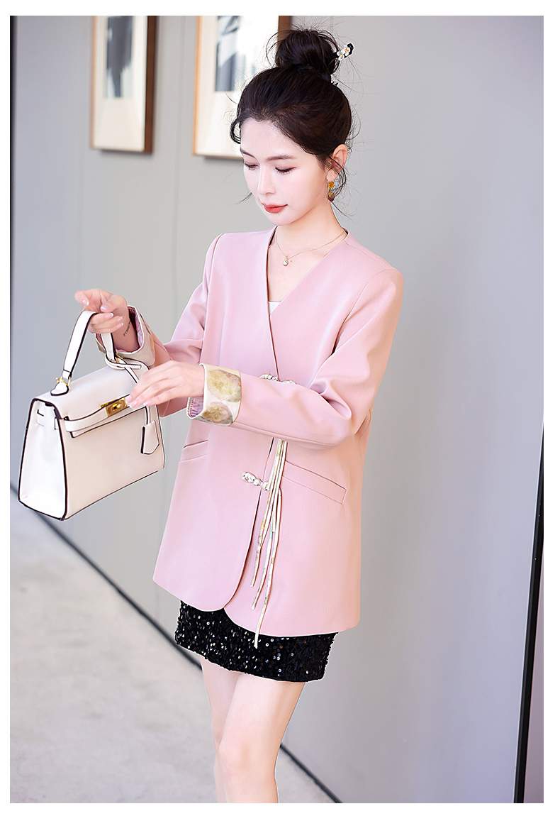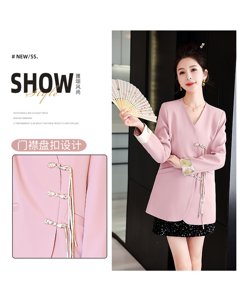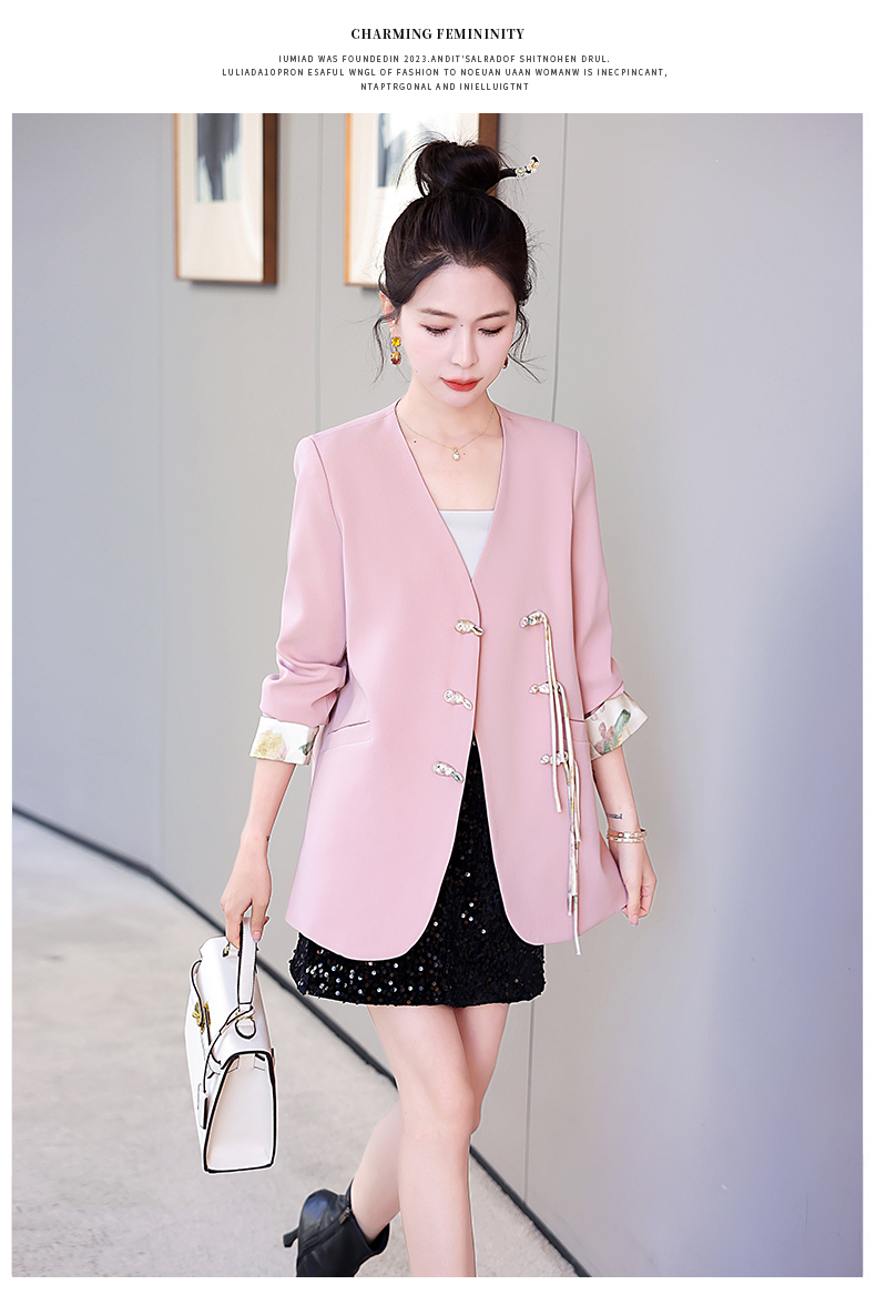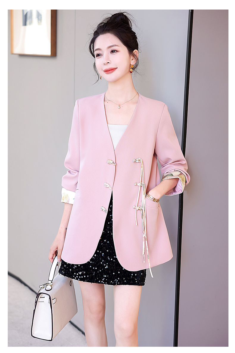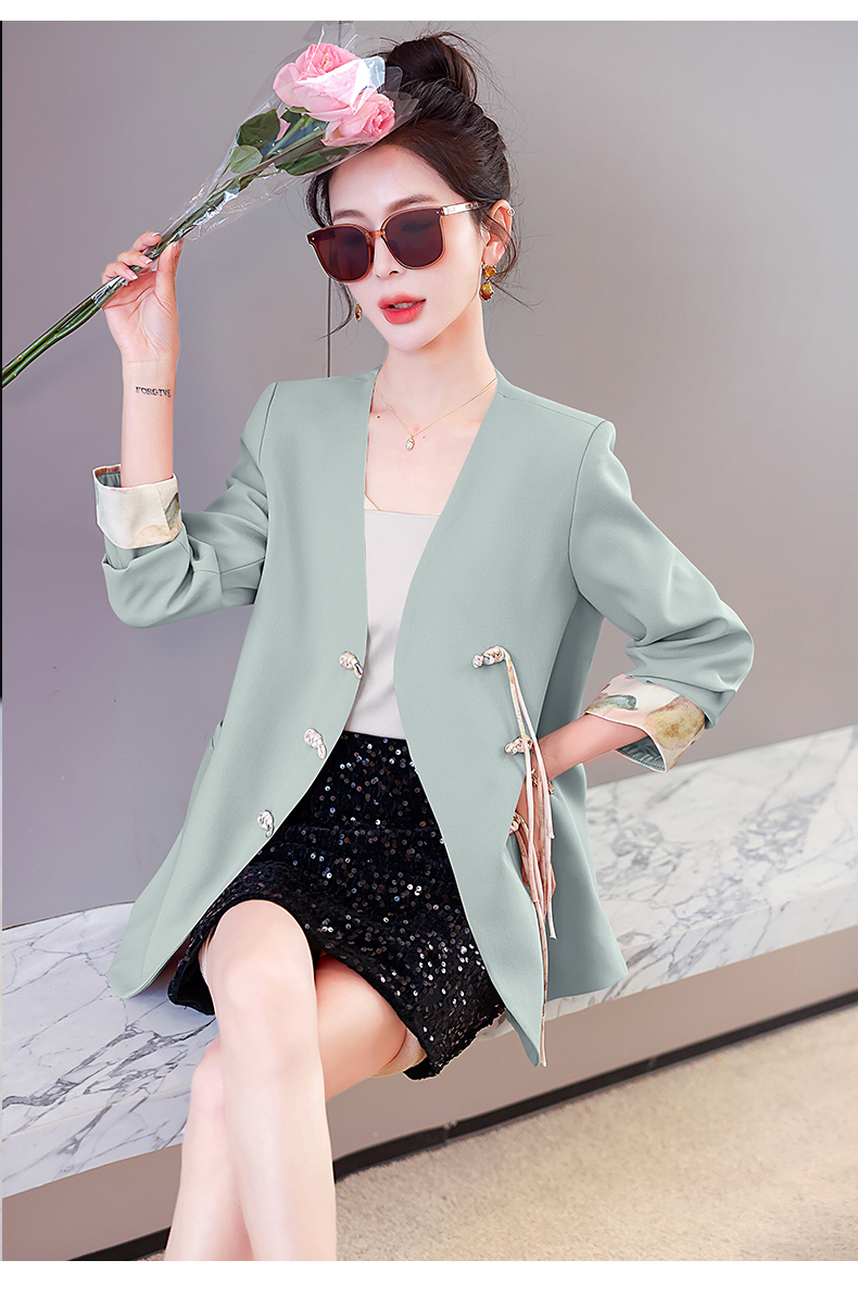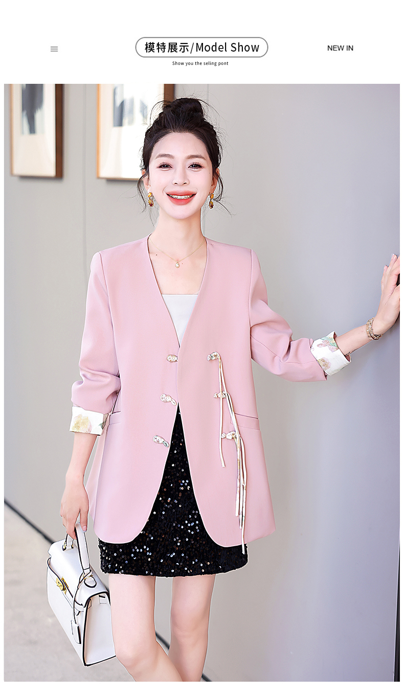 时尚复古,盘扣流苏V领拼接袖口外套HR-DMGY526