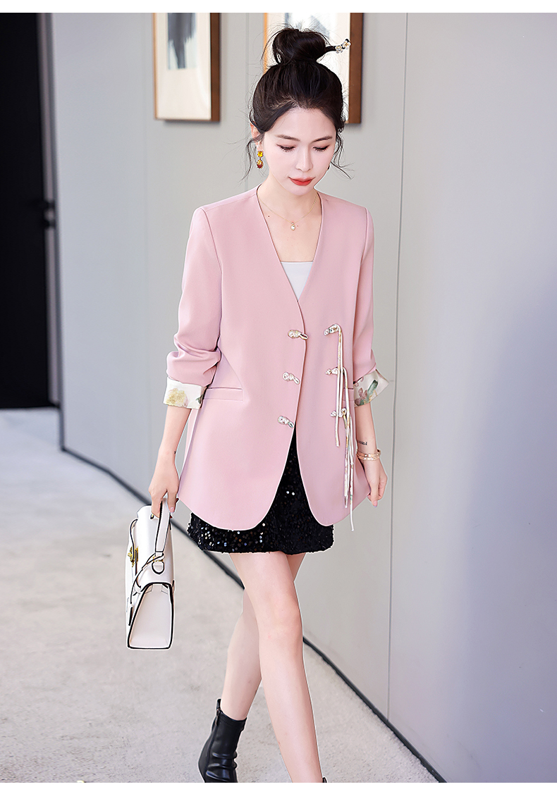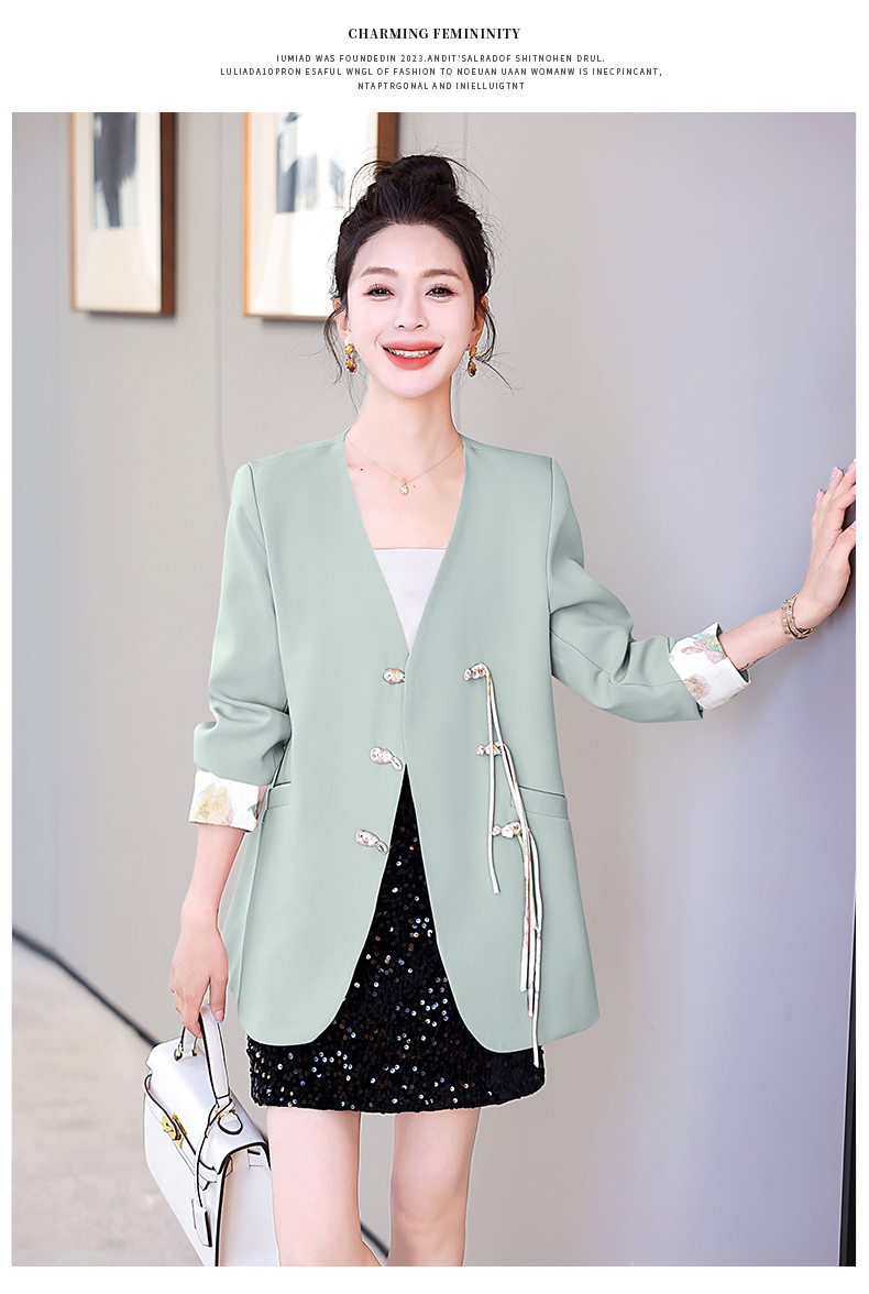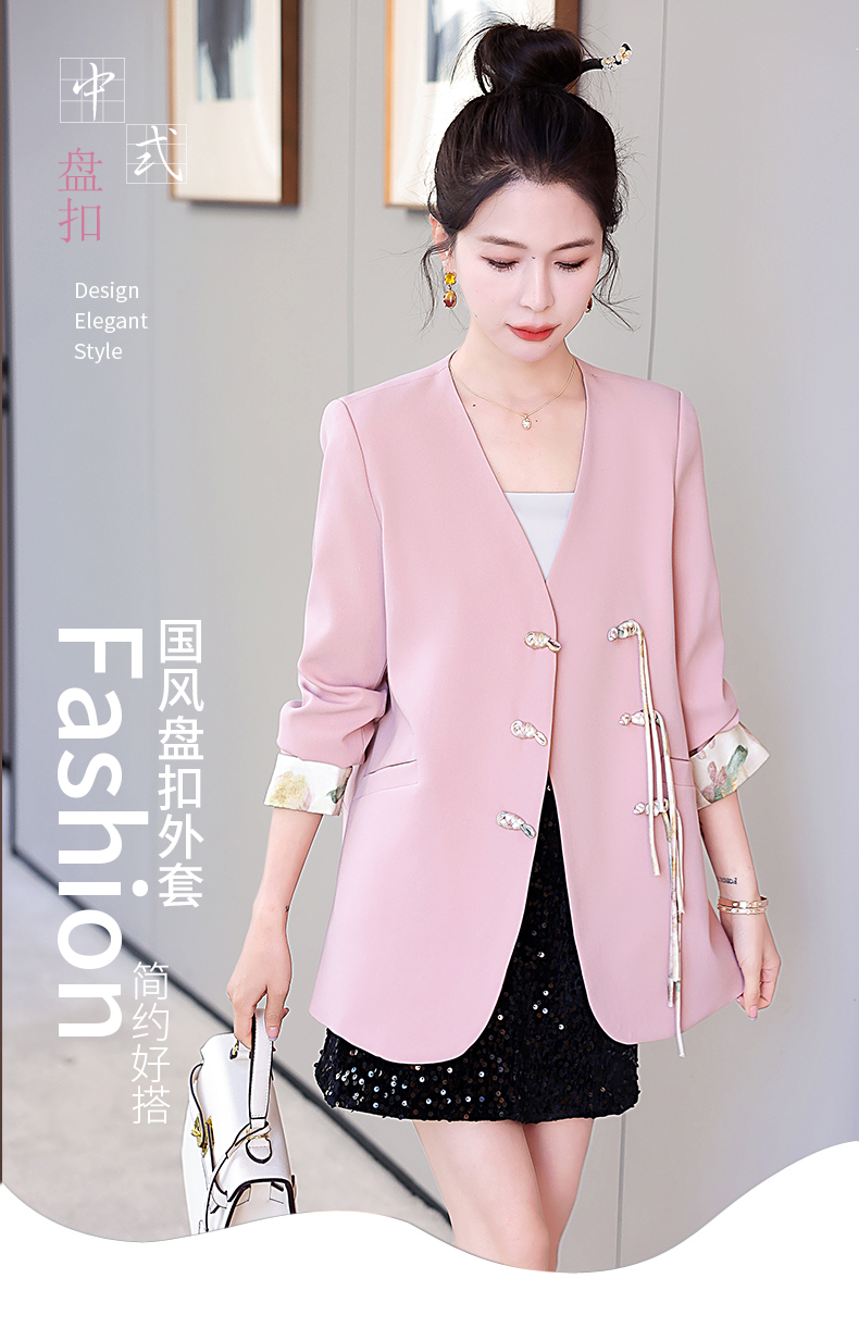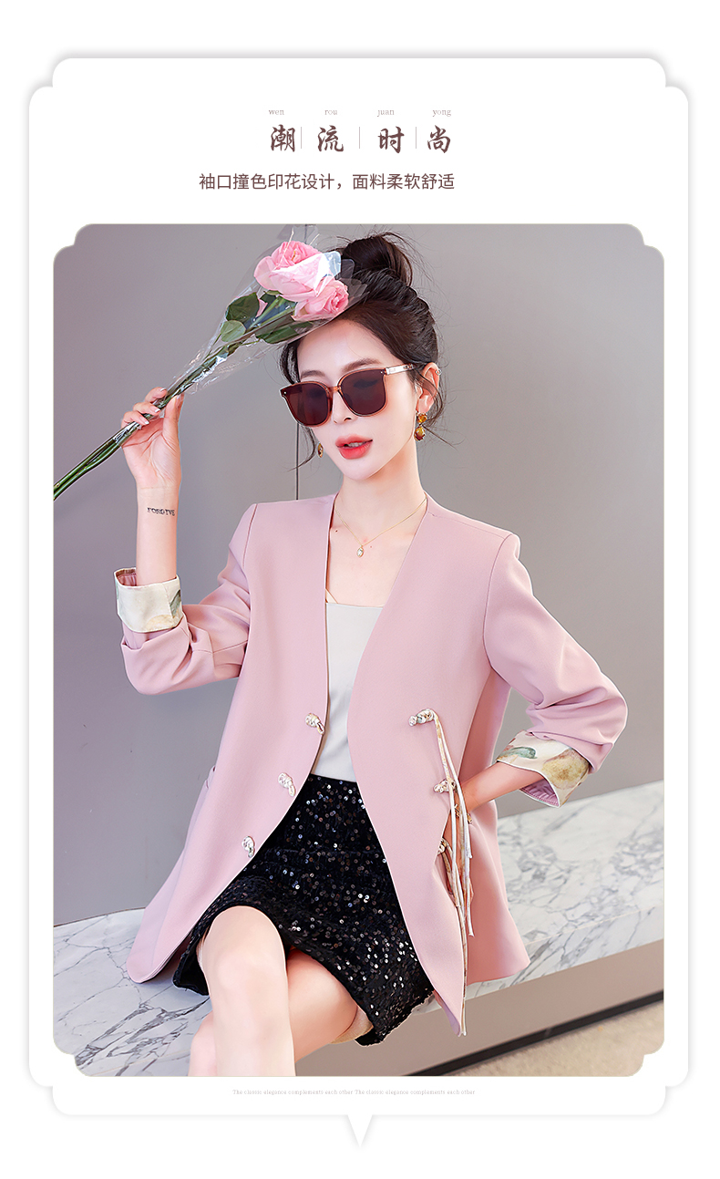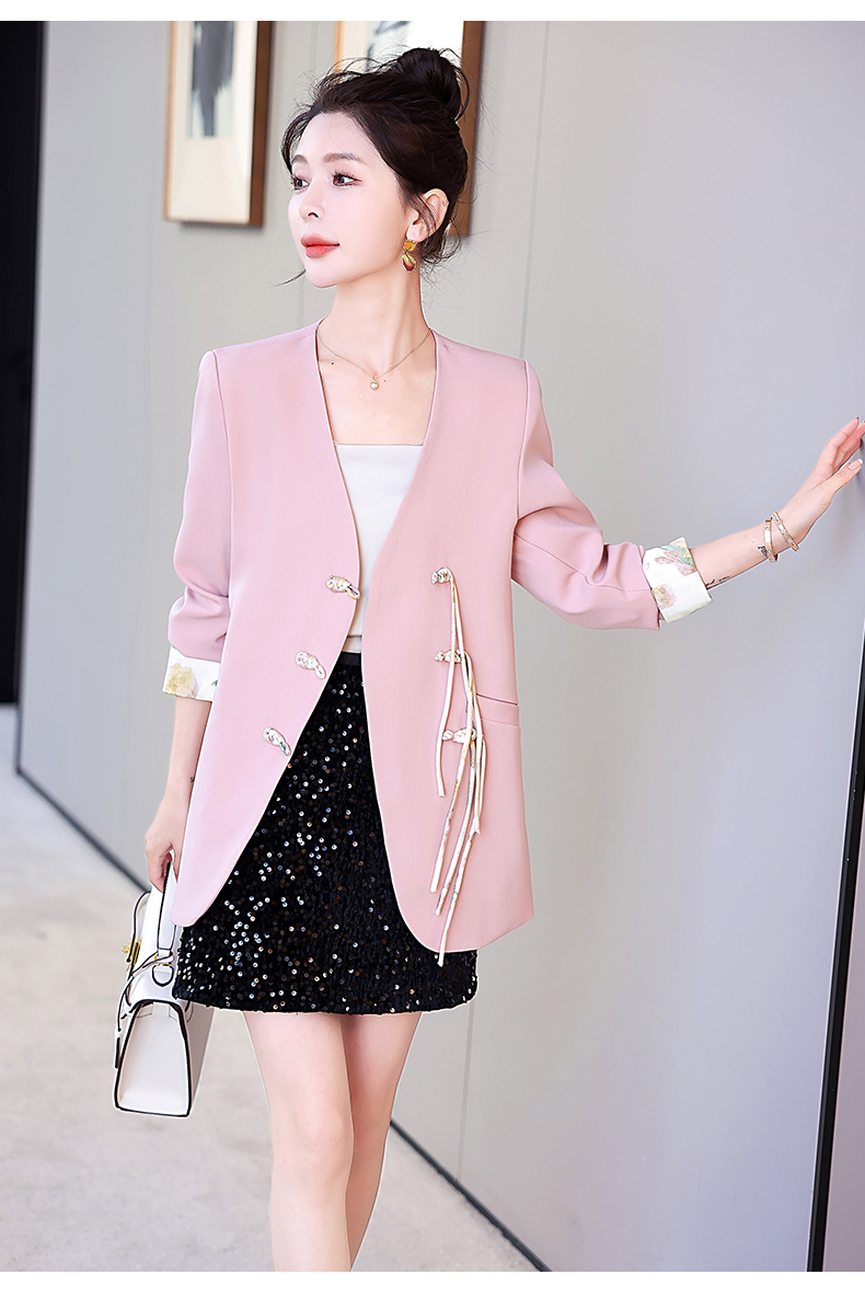 时尚复古,盘扣流苏V领拼接袖口外套HR-DMGY526