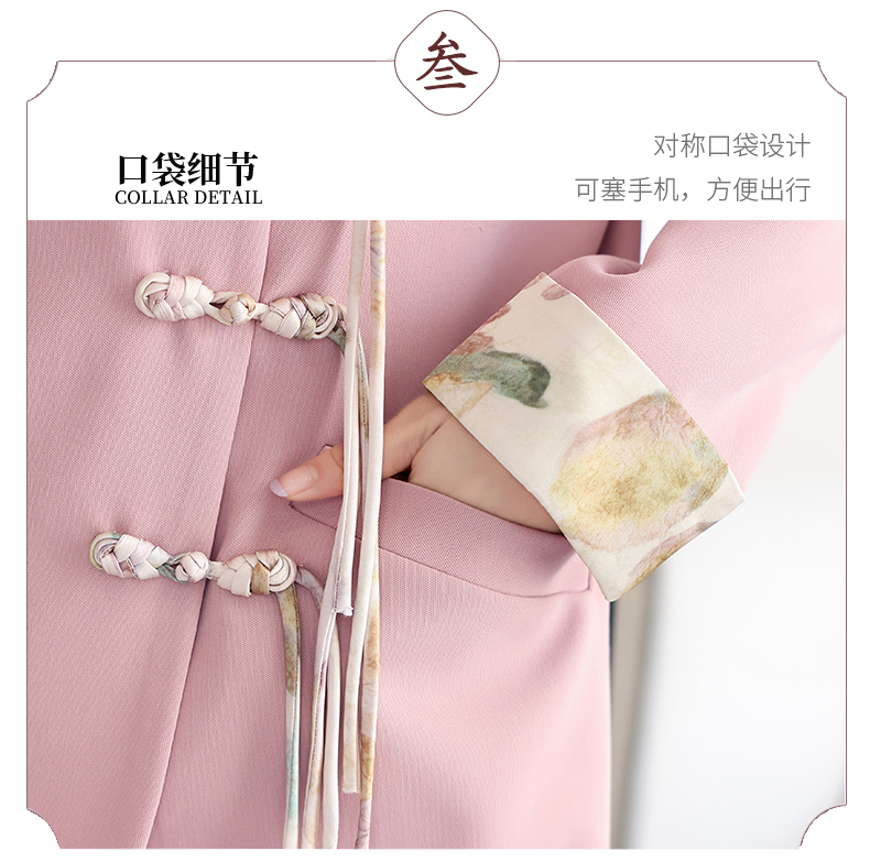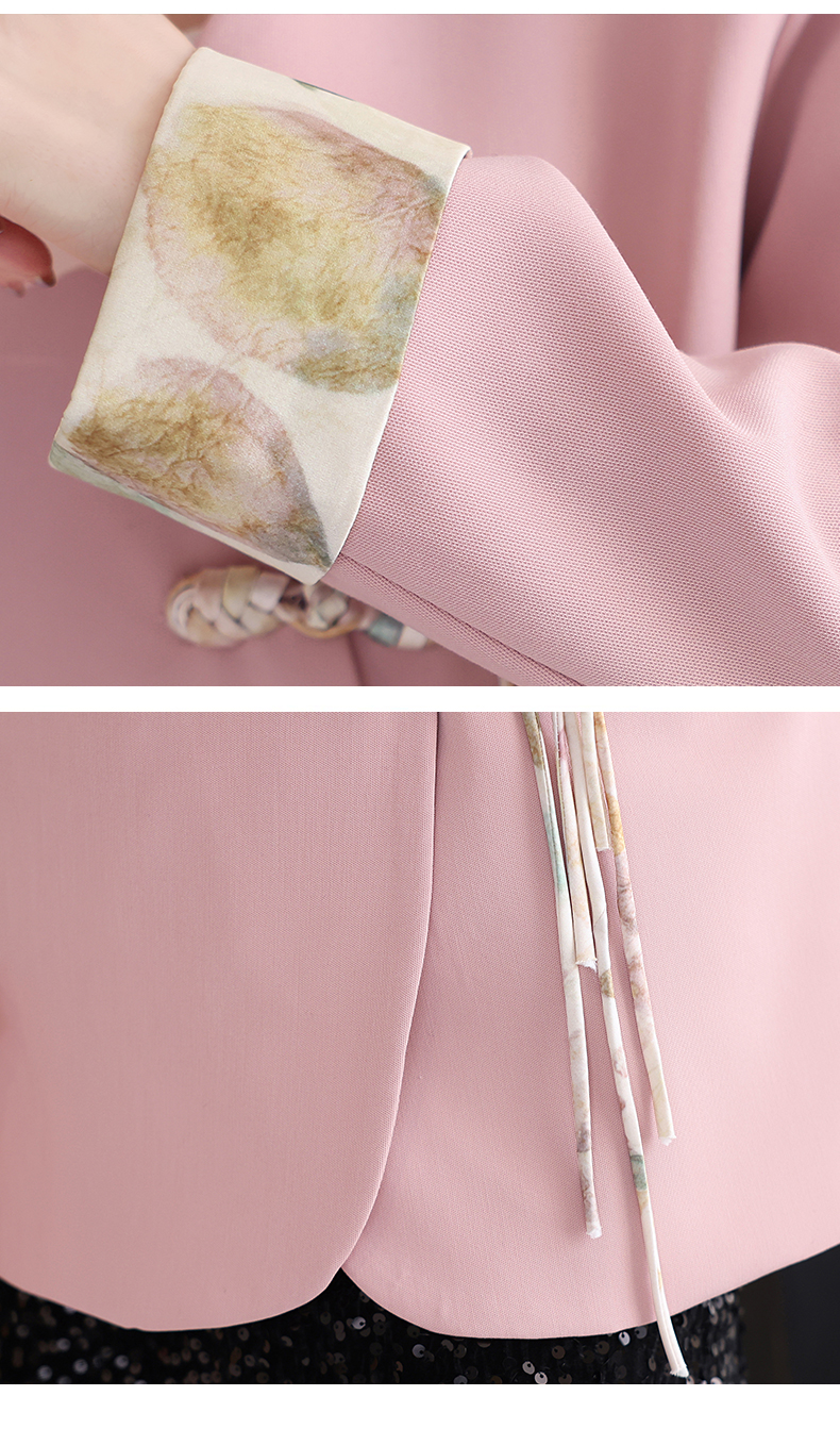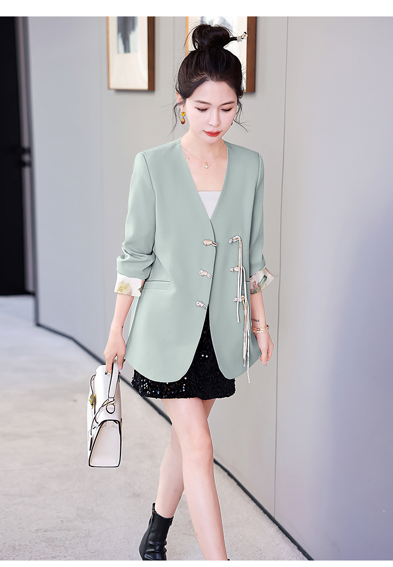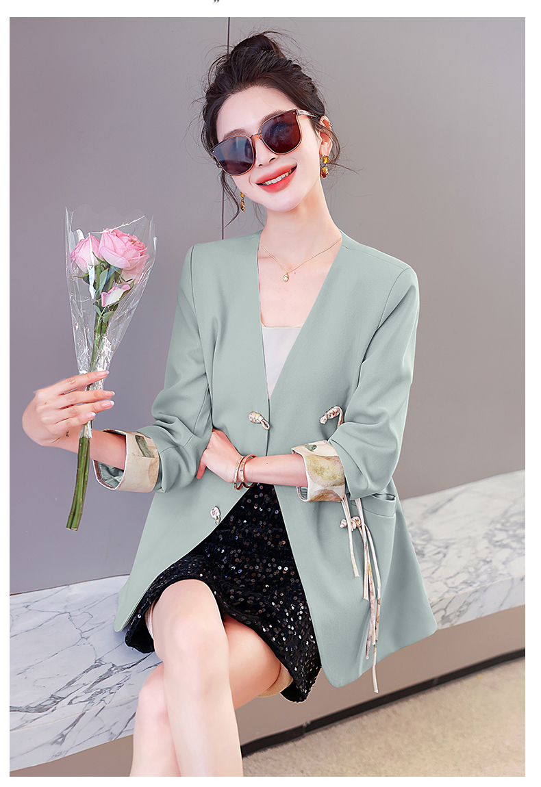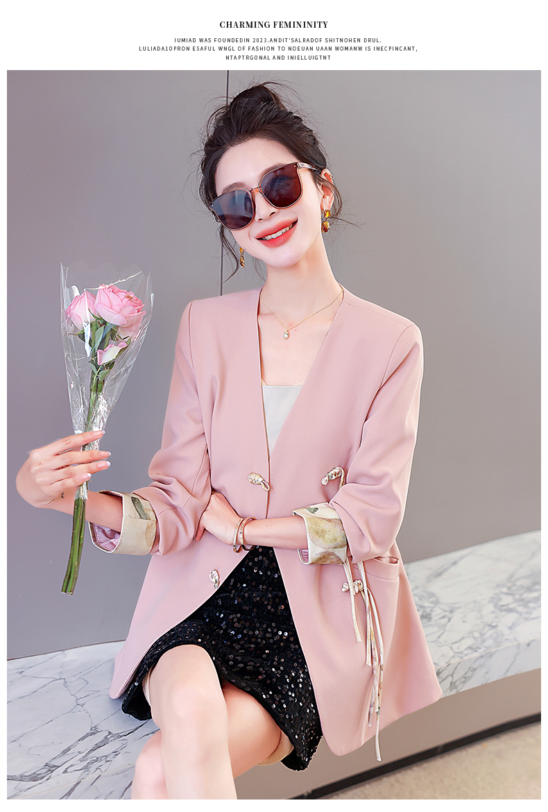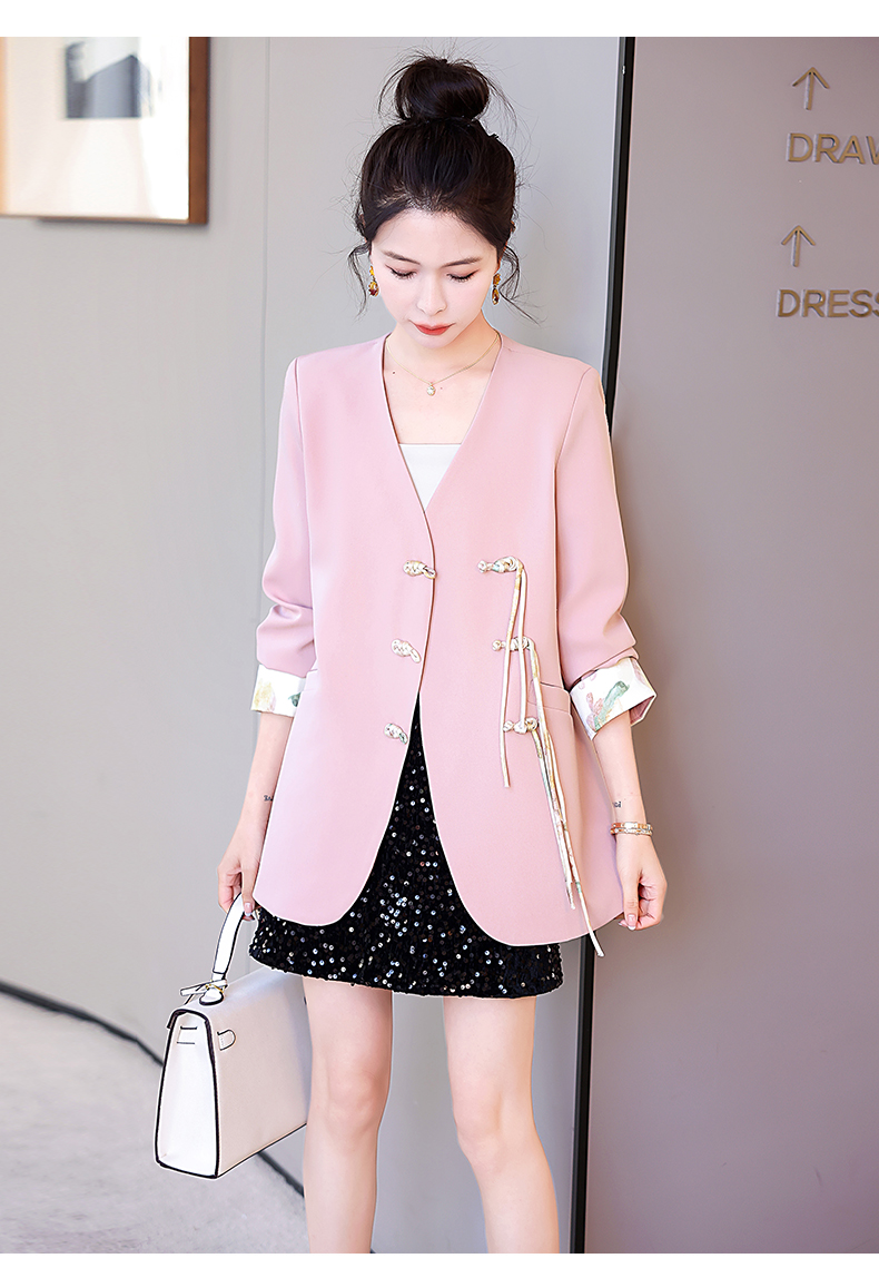 时尚复古,盘扣流苏V领拼接袖口外套HR-DMGY526