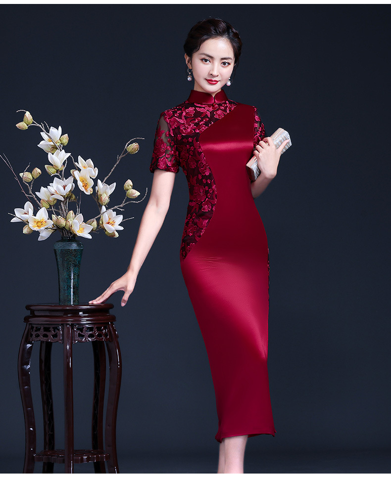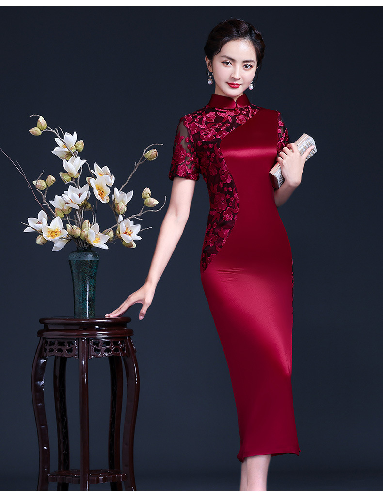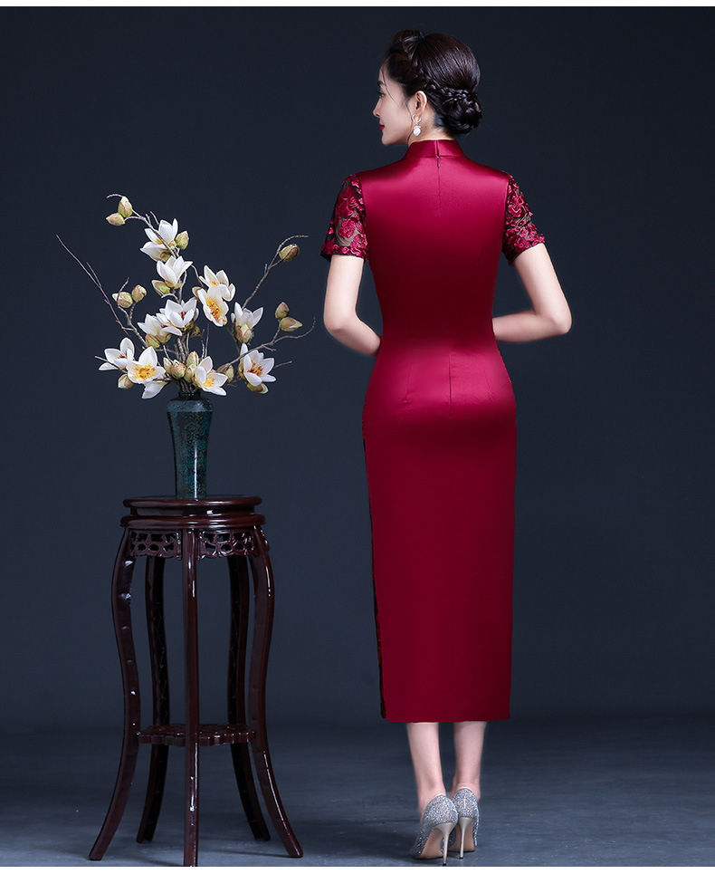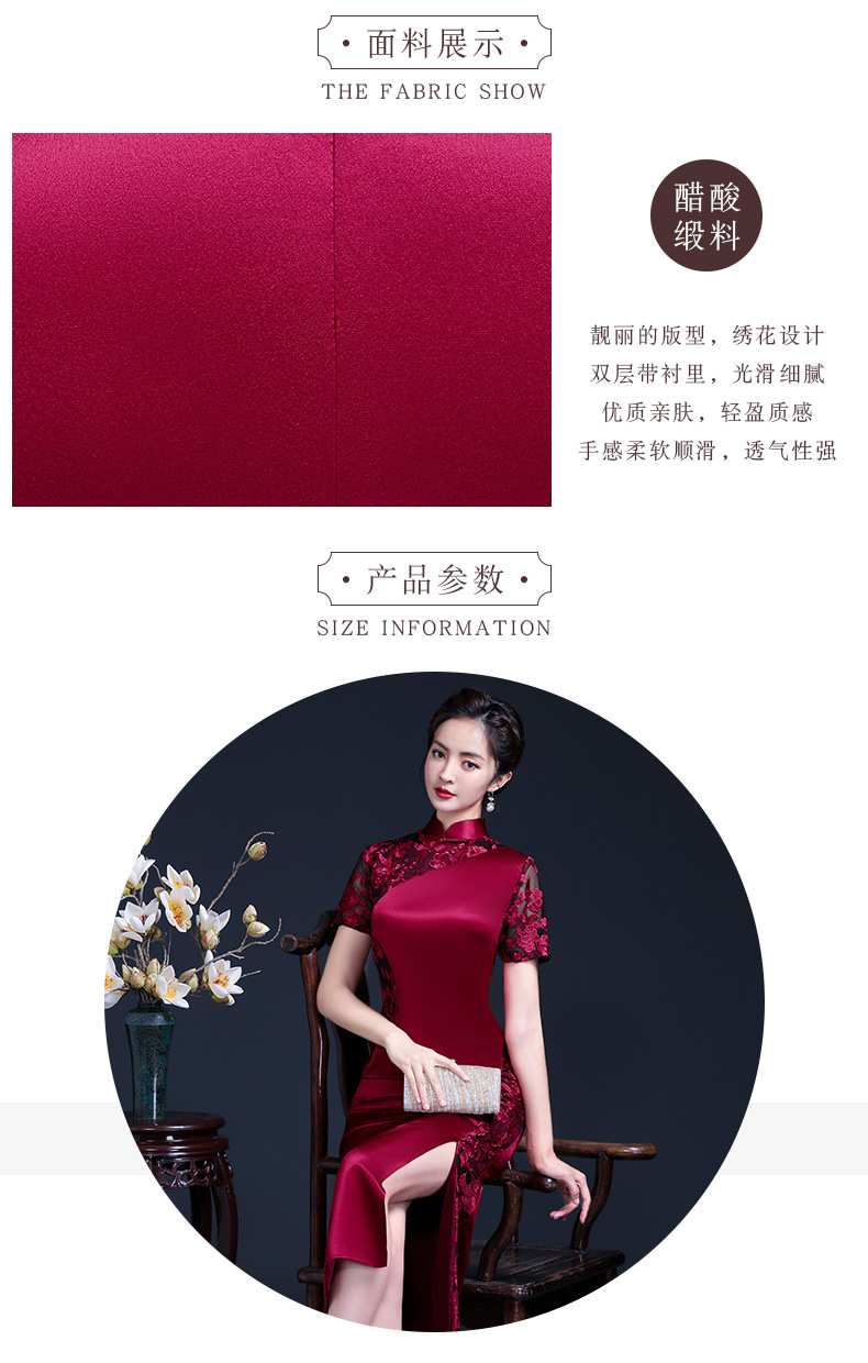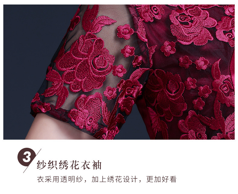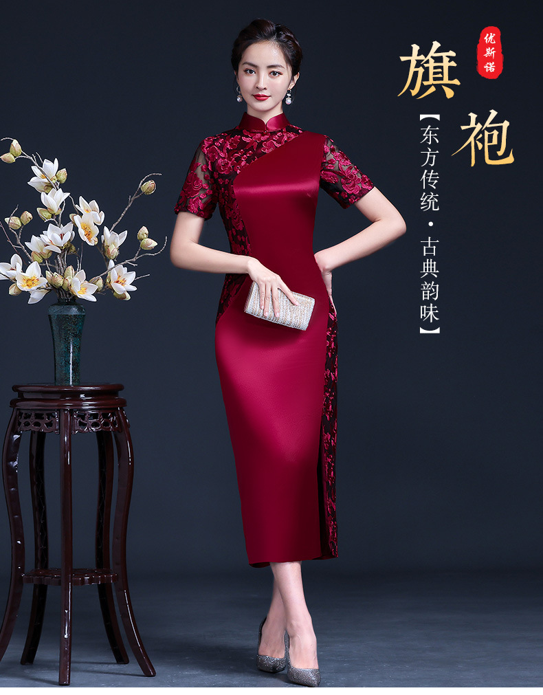 醋酸缎复古改良红色妈妈装婚宴中式礼服旗袍 LHS20020