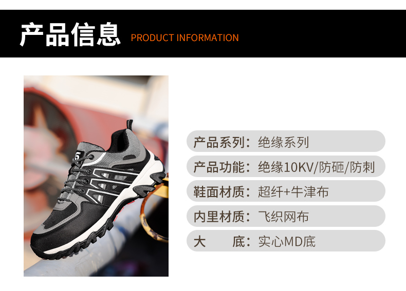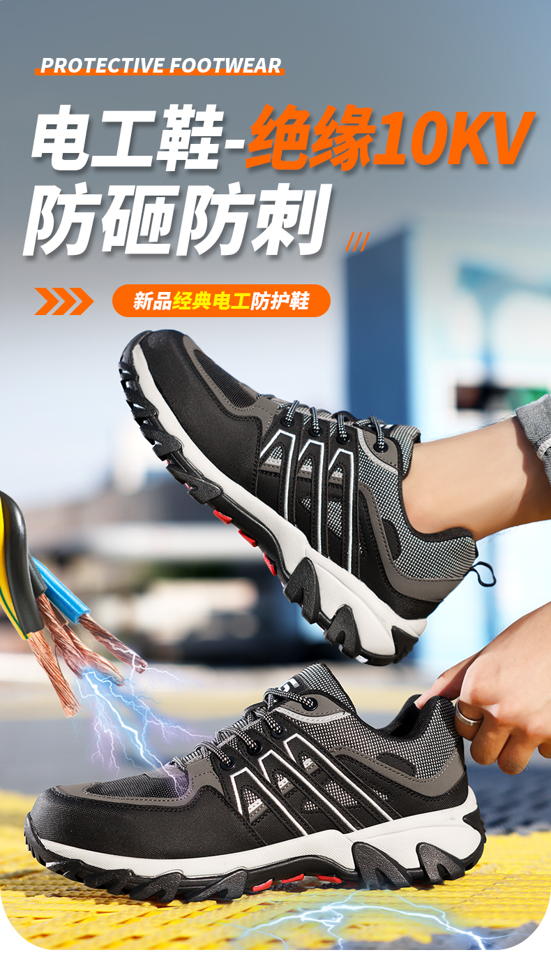 新款绝缘10KV劳保鞋透气防砸防刺实心MD底
