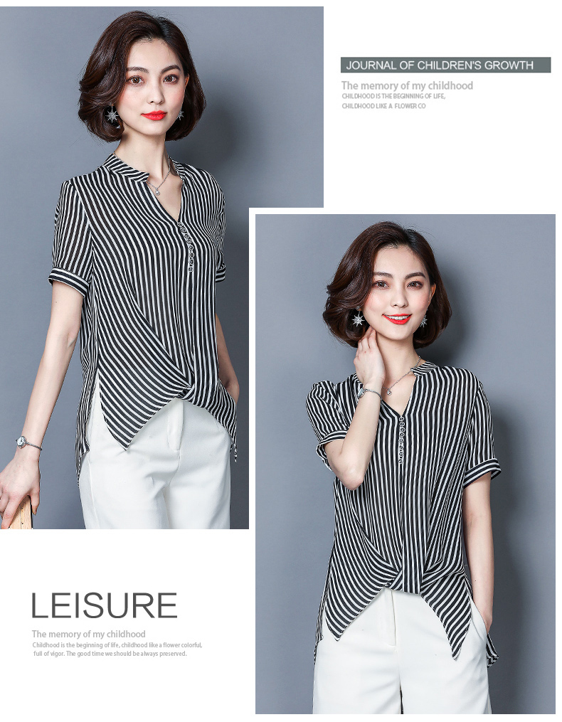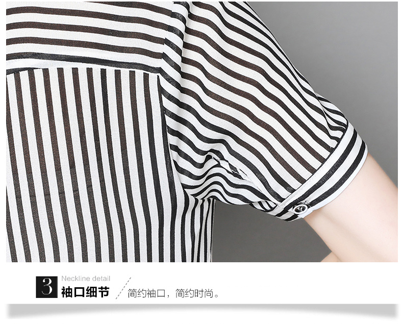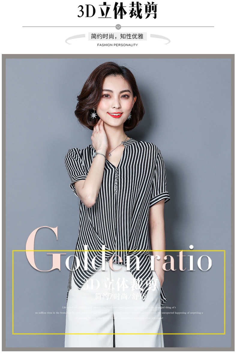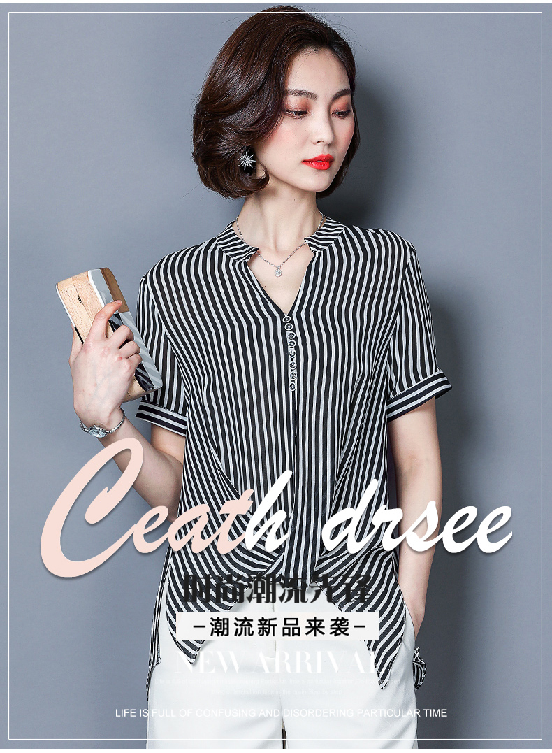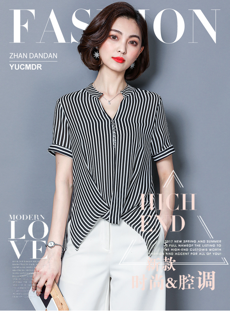 WZNH-CB1811时尚修身显瘦短袖个性甜美条纹衬衫
