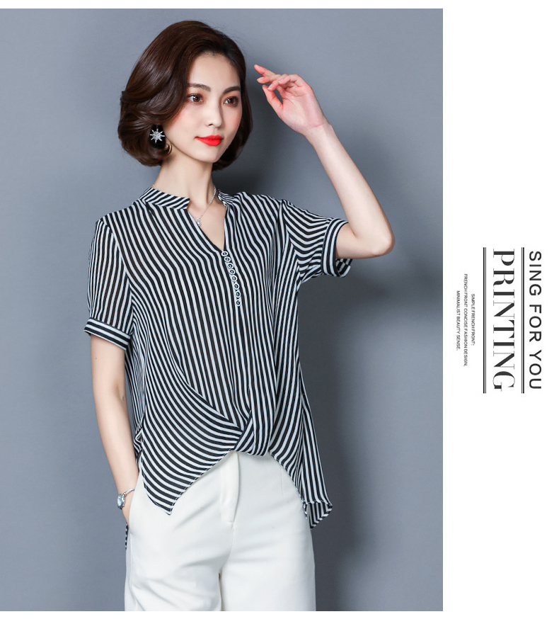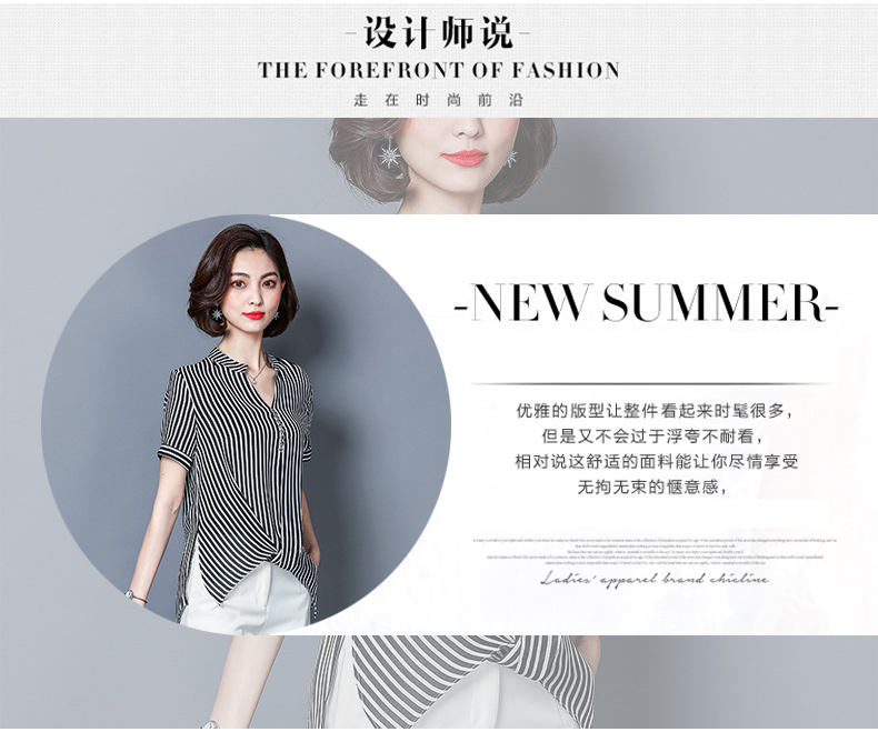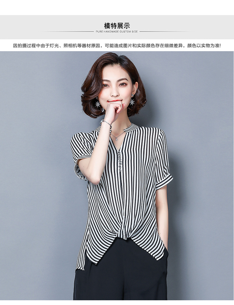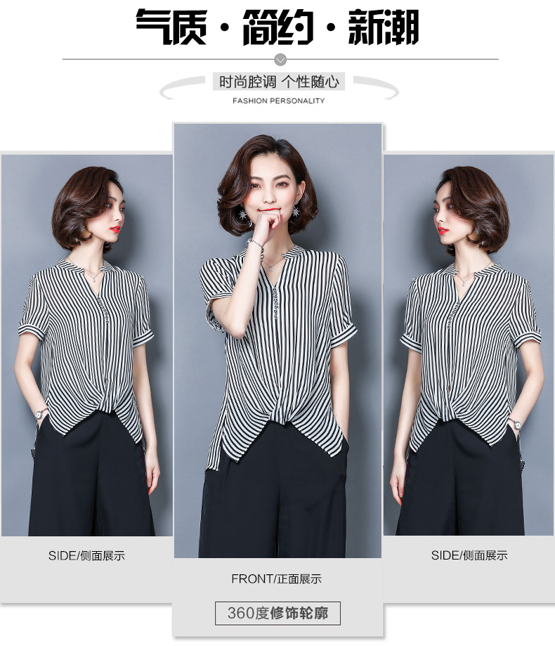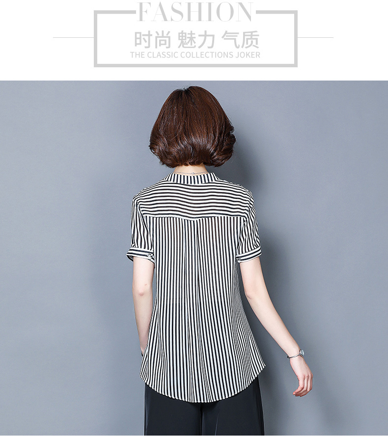 WZNH-CB1811时尚修身显瘦短袖个性甜美条纹衬衫