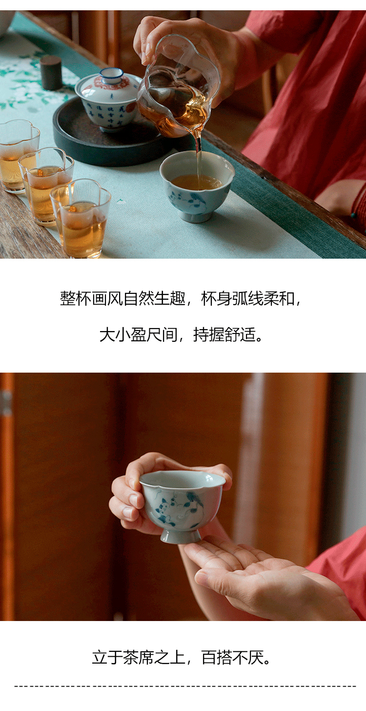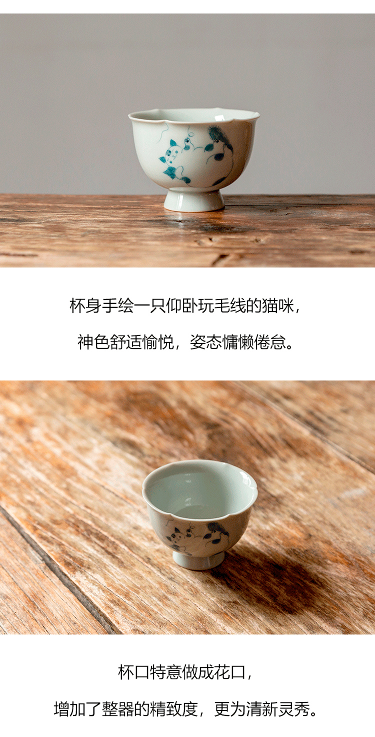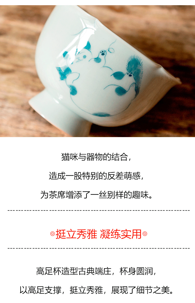 茶香记 手绘猫咪高足杯80ml陶瓷花口淘气猫可爱迷人茶杯品茗杯
