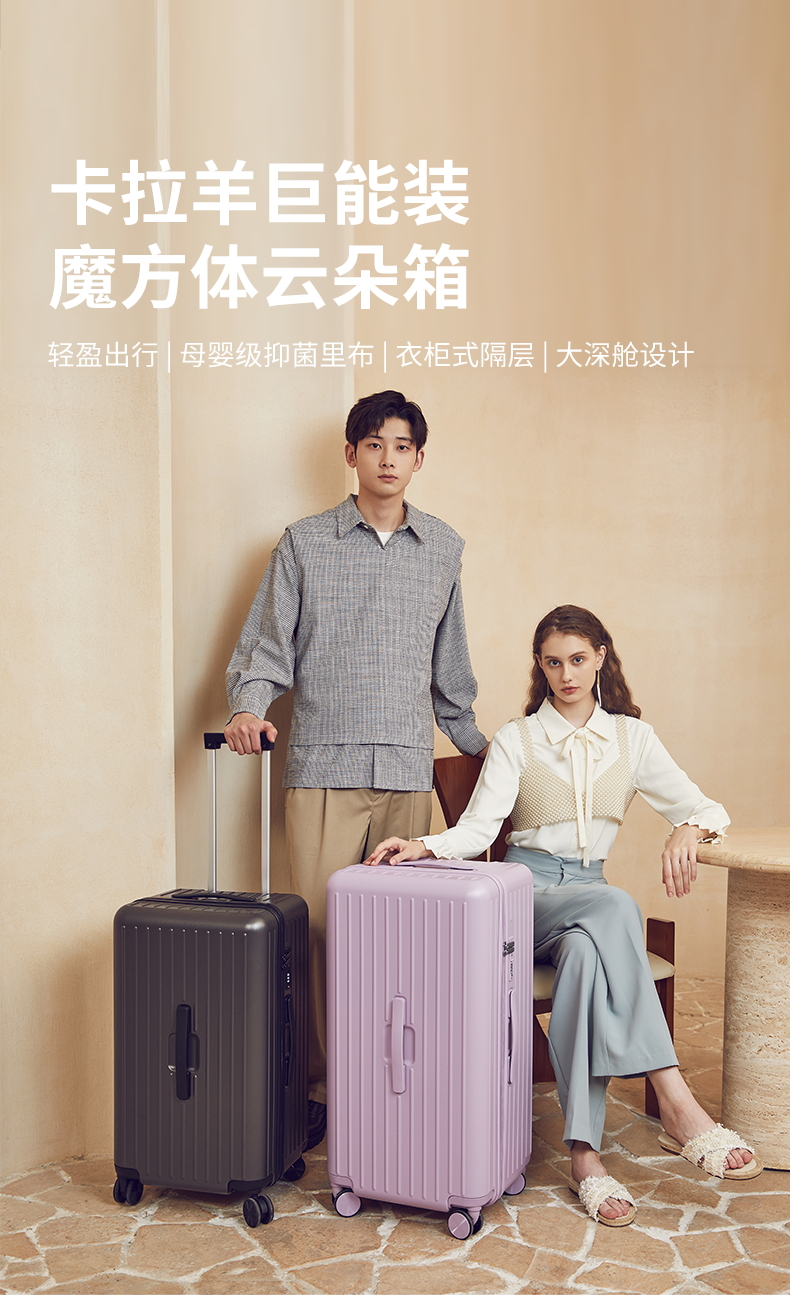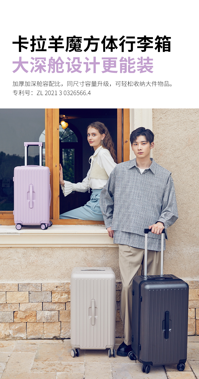 卡拉羊魔方体云朵箱纯PC防刮抗摔行李箱巨能装旅行箱CX8119