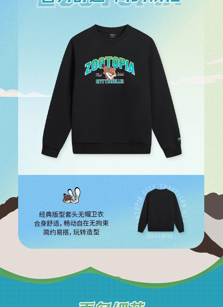 李宁|迪士尼疯狂动物城联名系列男子套头卫衣AWDVB25