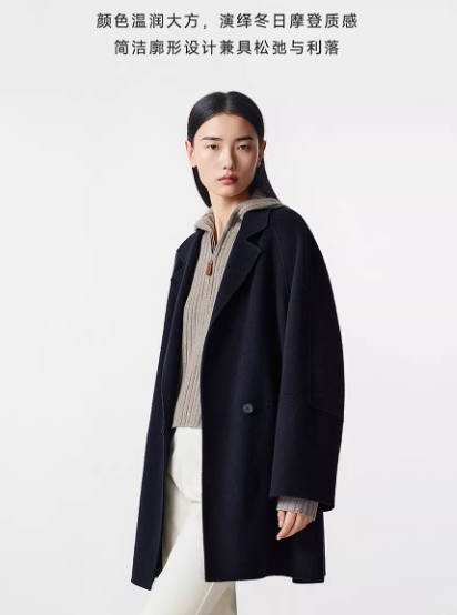 朗姿 气质羊毛羊绒双面呢中长款大衣毛呢外套LCGD98HMC001