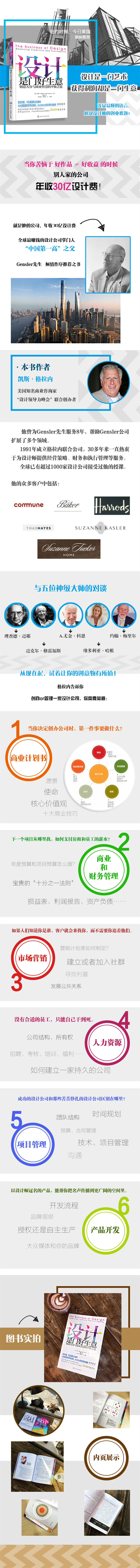 《设计是门好生意》是揭示设计业经营之道的基础指南,书中布满着价值连城的资讯,详尽介绍这门总是复杂精密、而且充满挑战的行业百态。凯斯提供了正直坦诚、审慎务实的成功之道,使这本书成为有经验的设计师和任何入门创业者皆应参考的必读之作。我已经指定Thom Filicia公司的每一名员工都要拜读!——室内设计师Thom Filicia