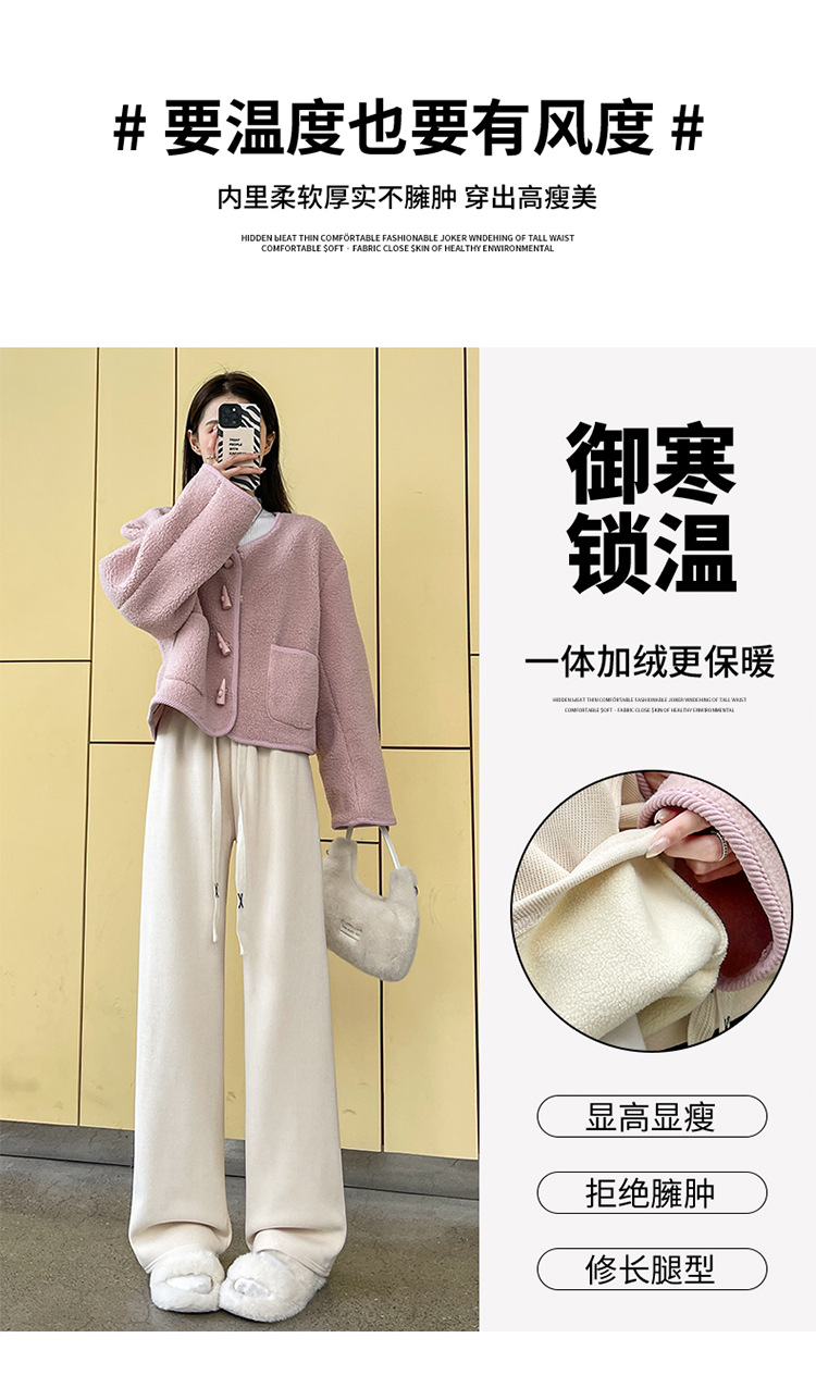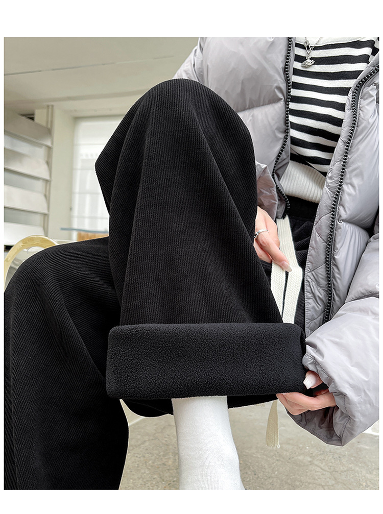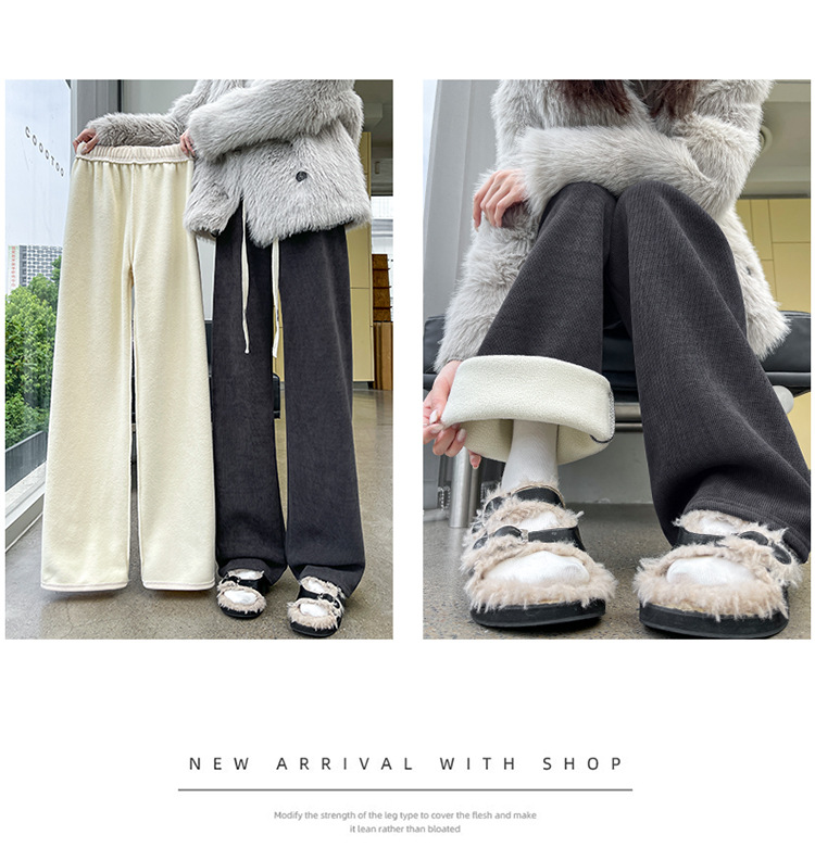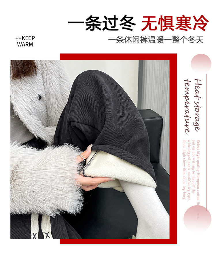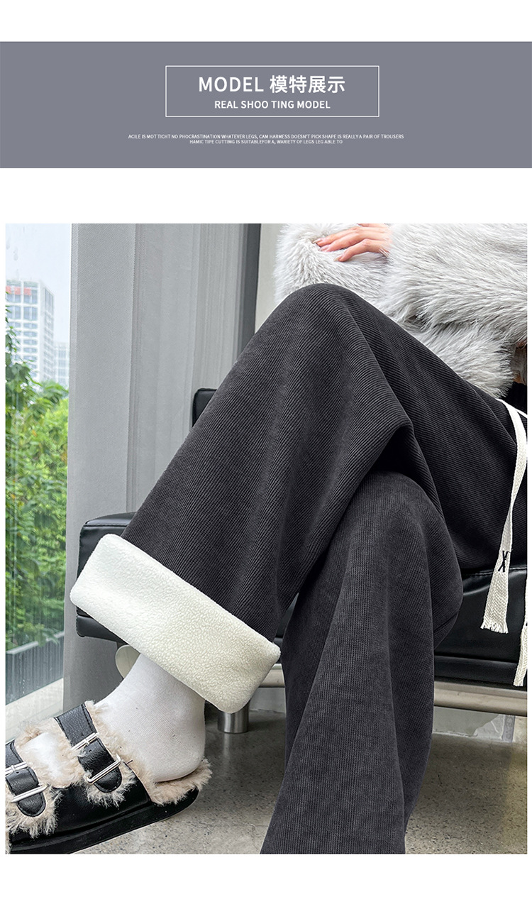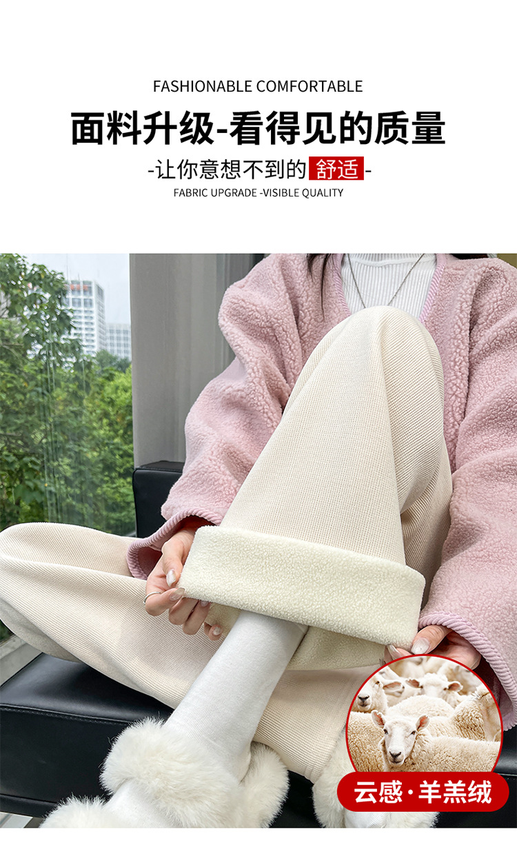 【甄选优质欧棉绒面料❗️蓄热锁温为御寒而生】羊羔绒阔腿裤女裤秋冬季加绒加厚棉裤2025新款灰色灯芯绒直筒裤子。ja