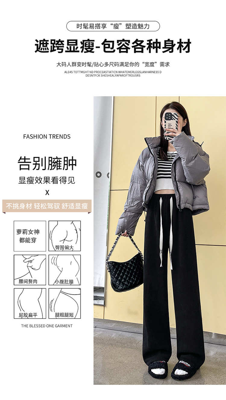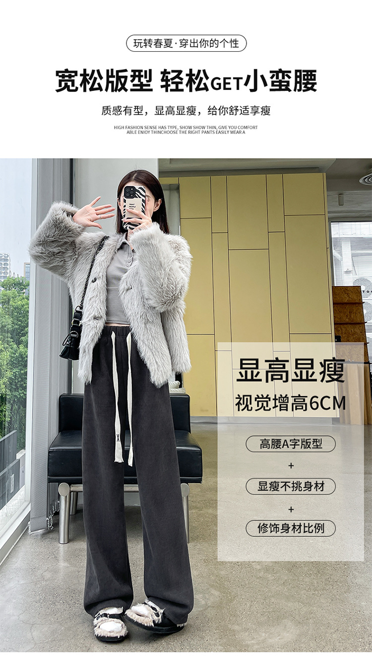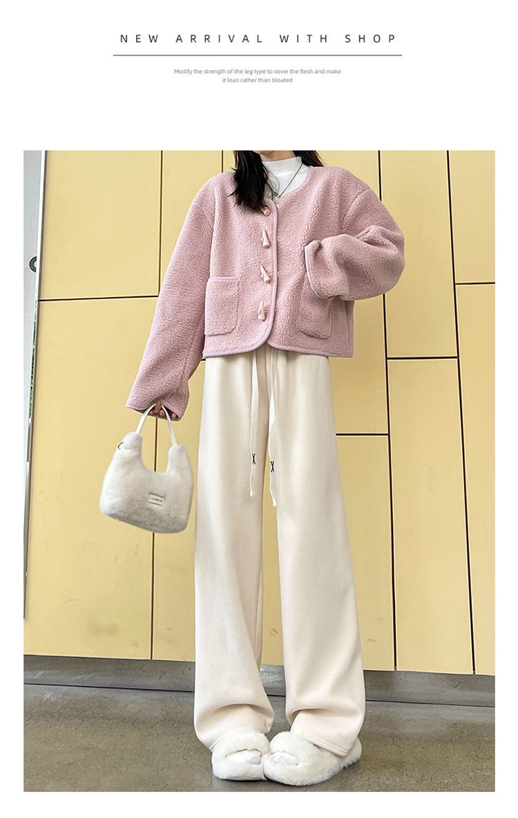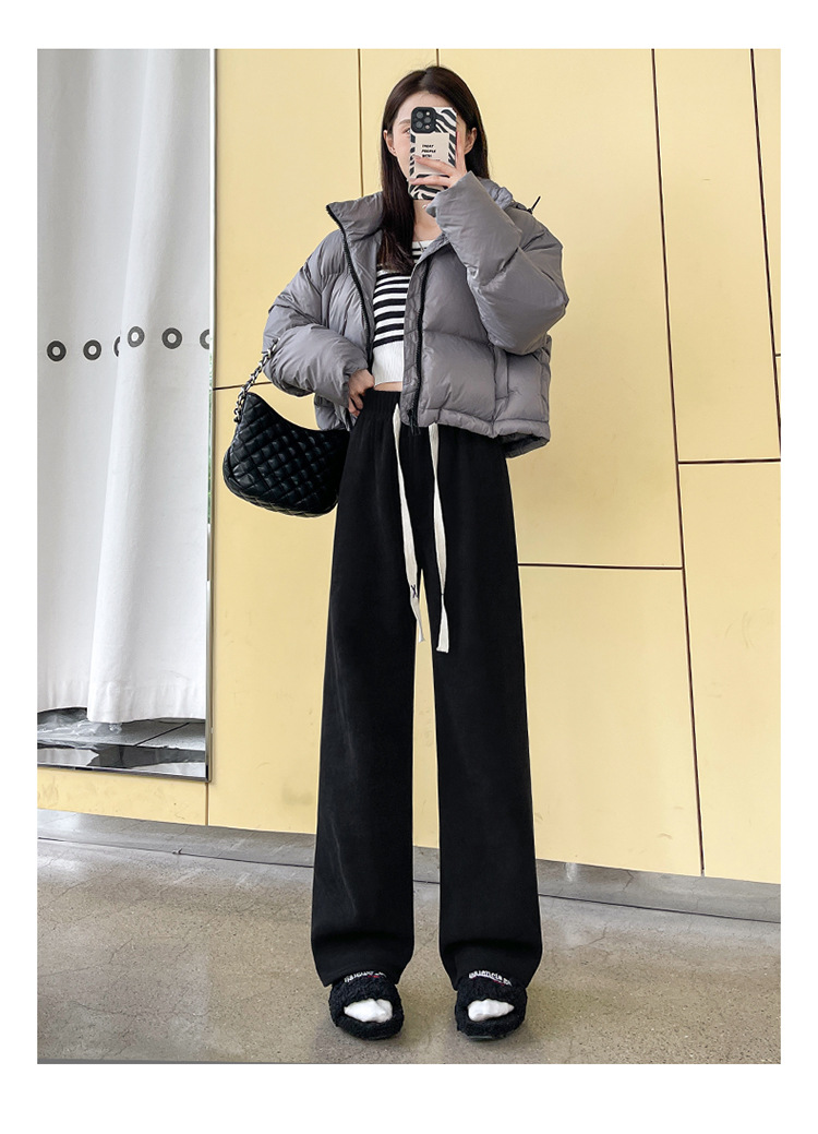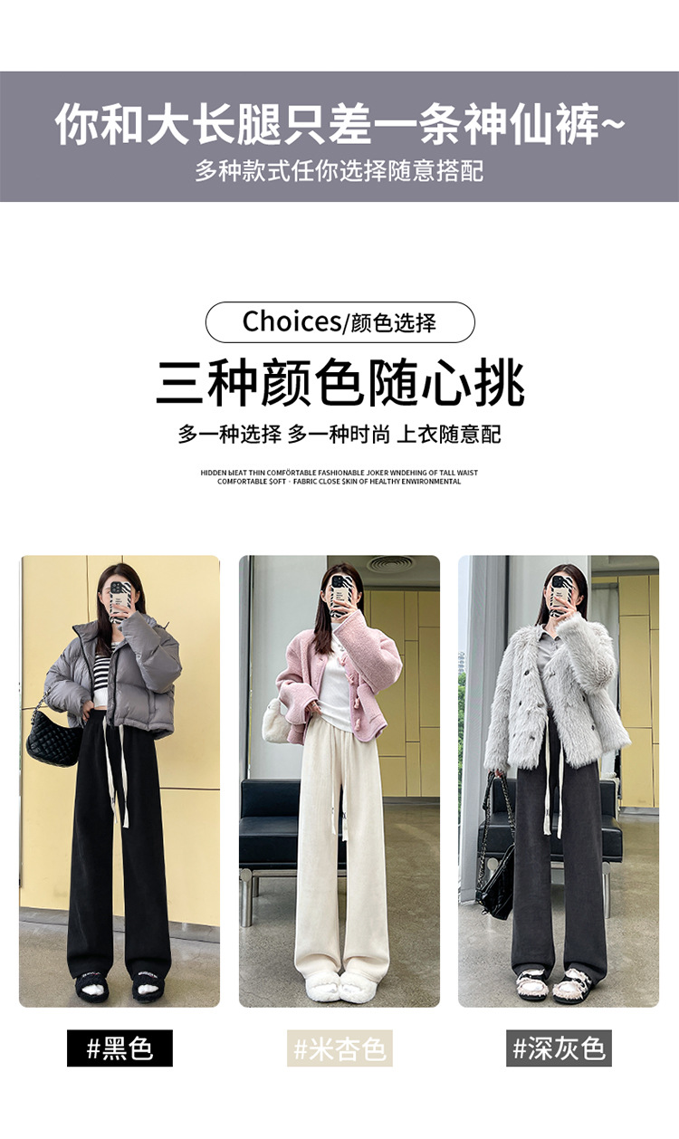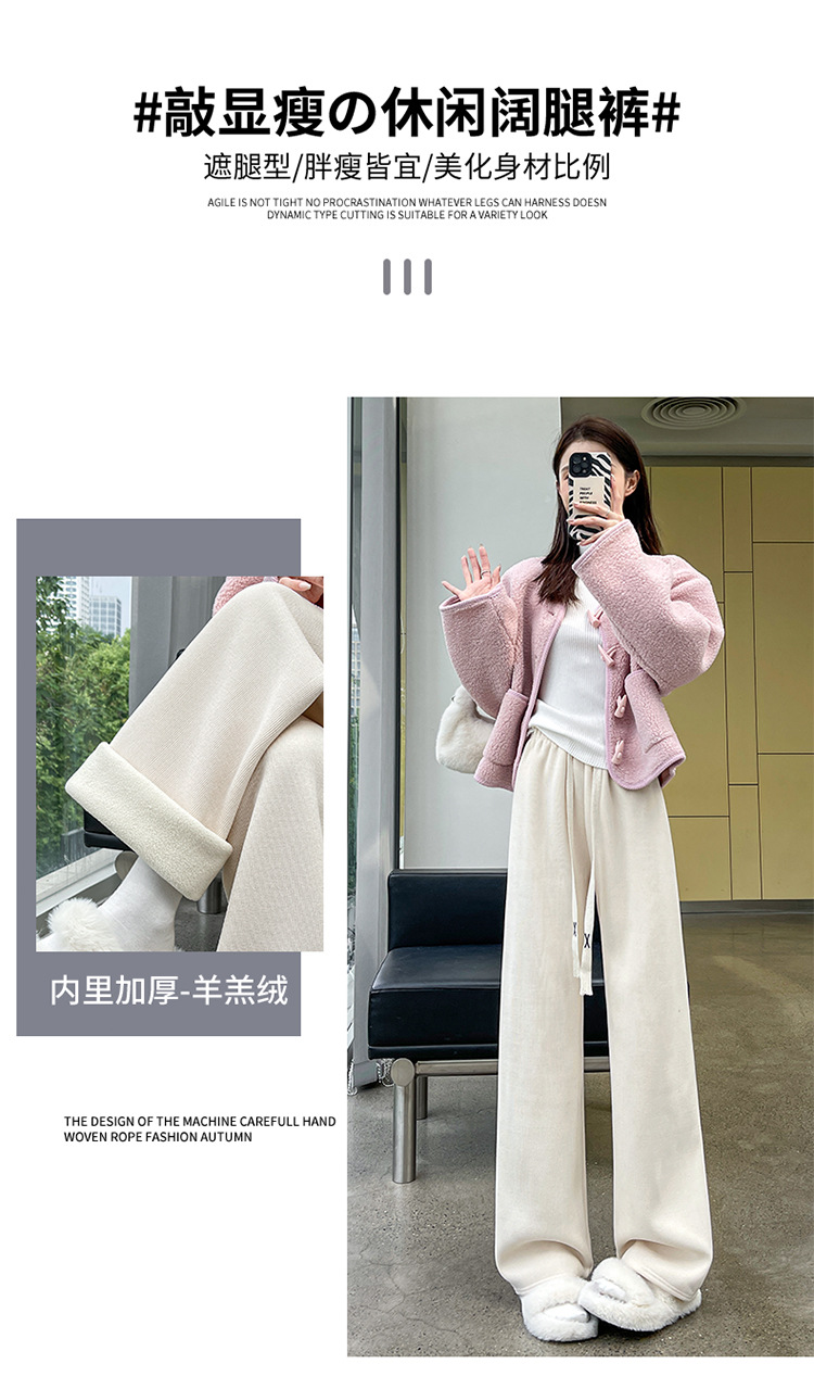 【甄选优质欧棉绒面料❗️蓄热锁温为御寒而生】羊羔绒阔腿裤女裤秋冬季加绒加厚棉裤2025新款灰色灯芯绒直筒裤子。ja