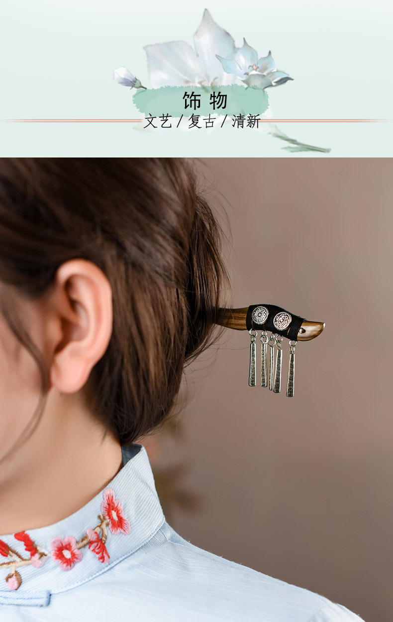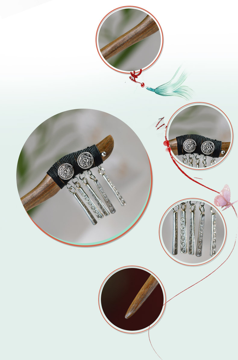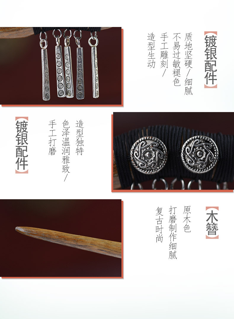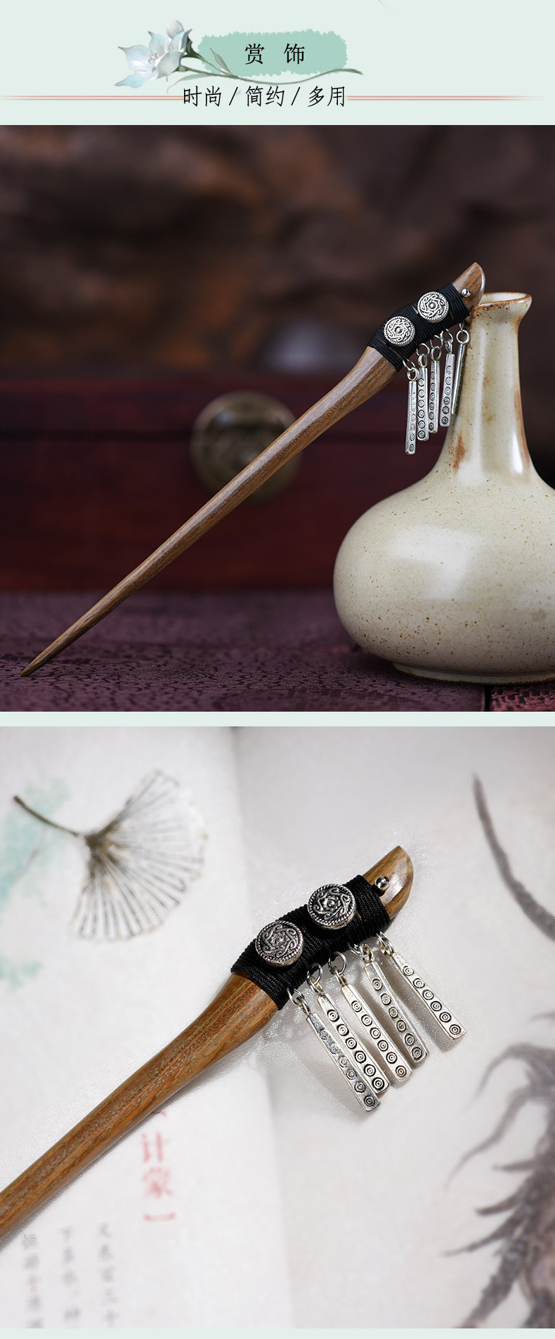 JGL绿檀木苗银发簪流苏吊坠簪子藏式苗银发钗古装汉服盘发发簪女