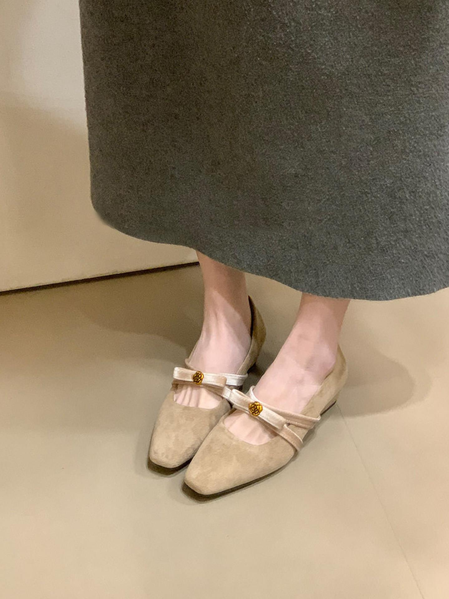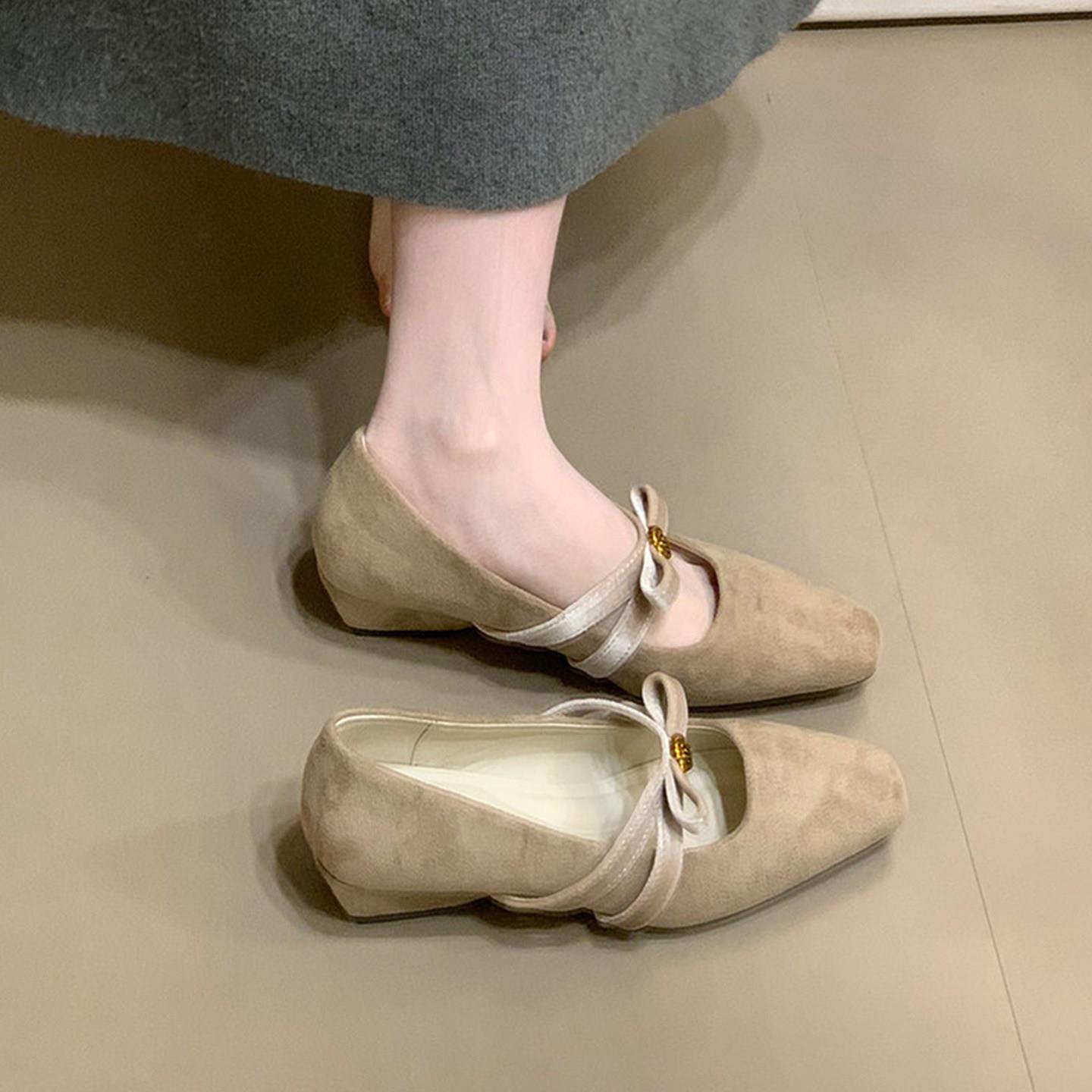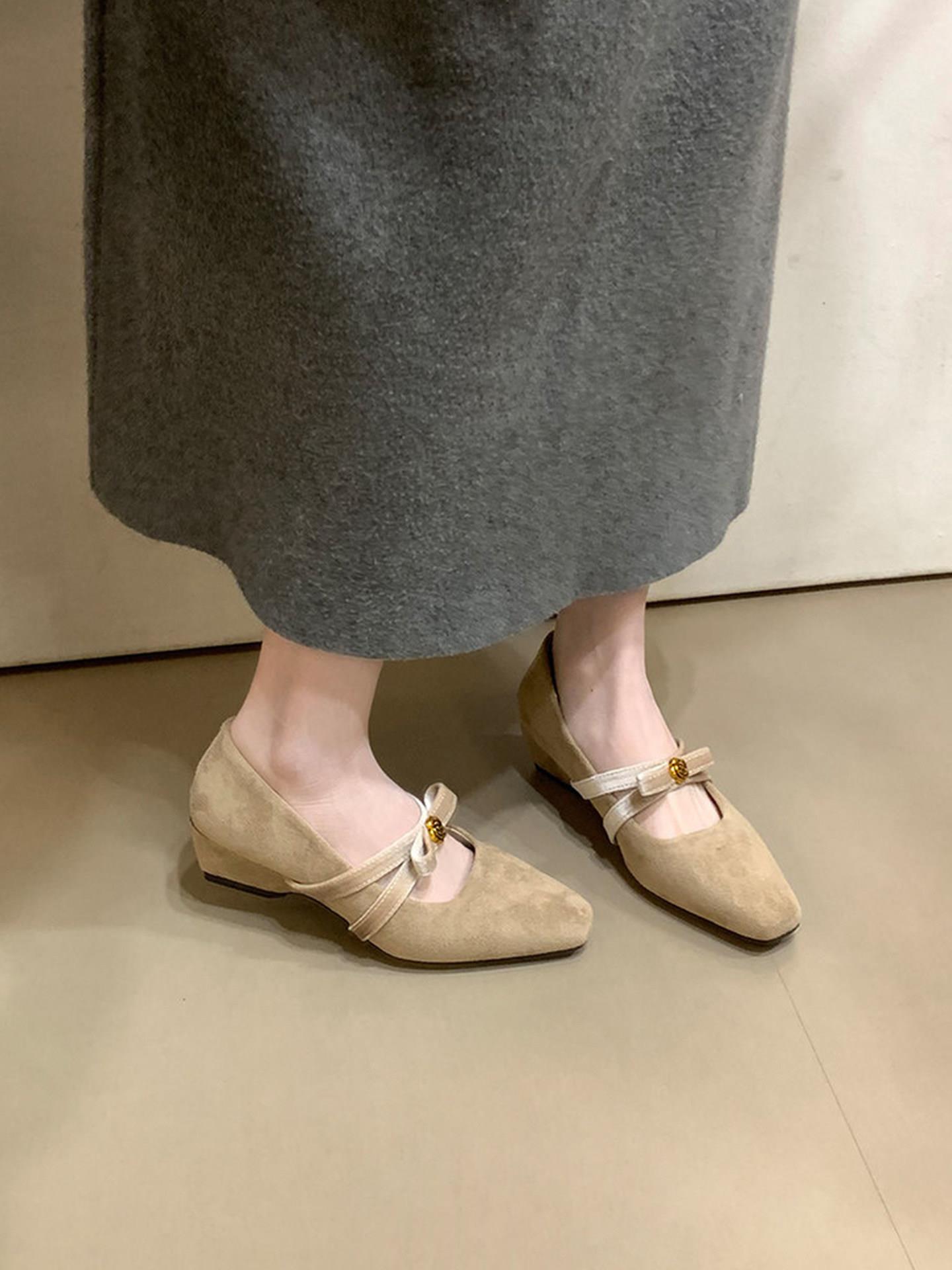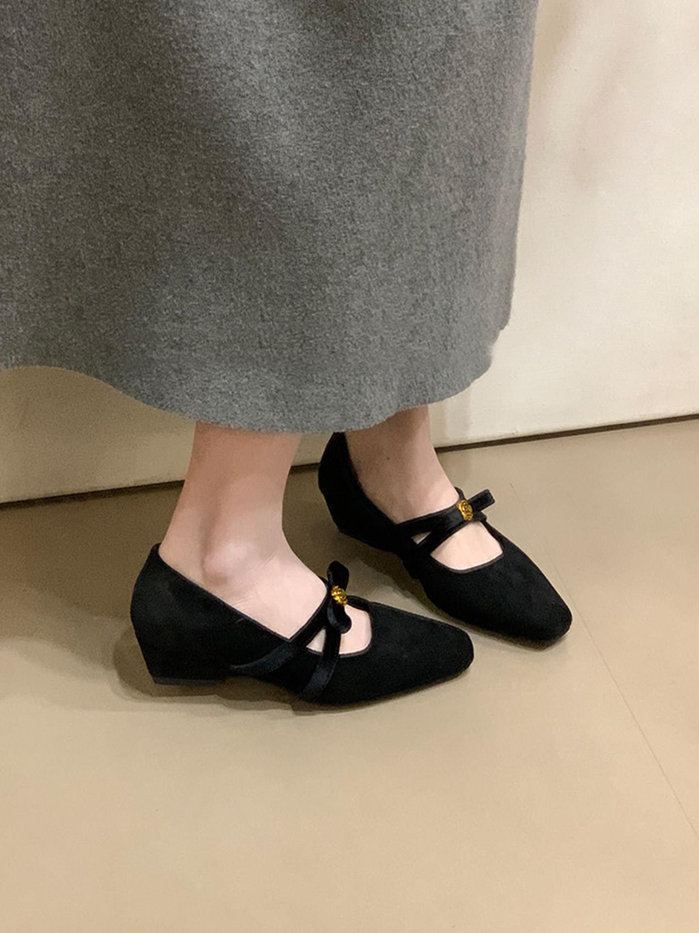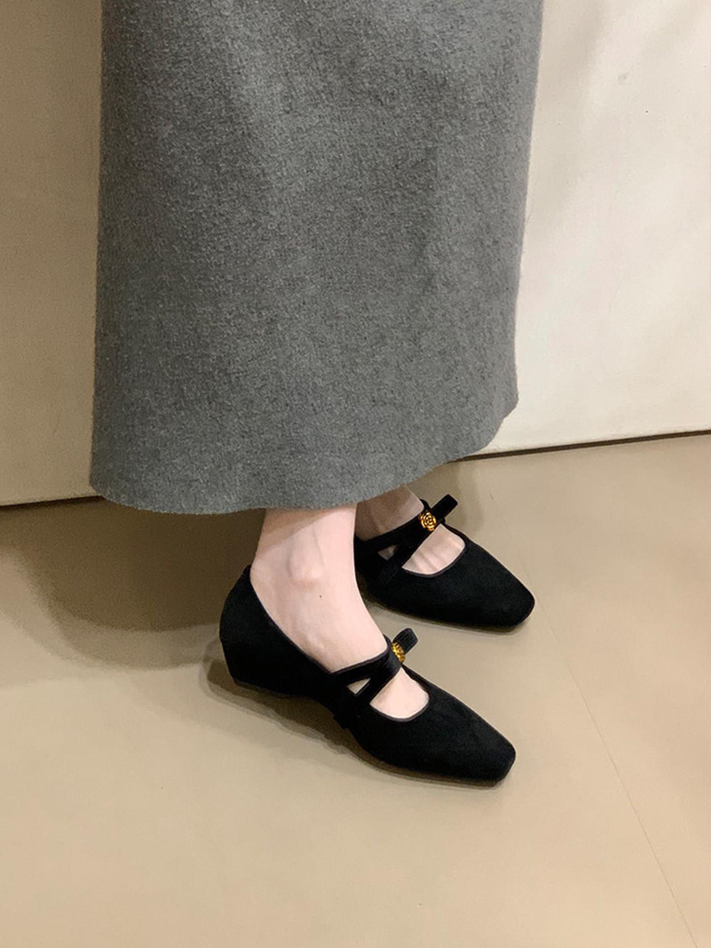 【秒杀】法式复古内增高绒面方头玛丽珍鞋女2026季新款一字带浅口单鞋低帮
