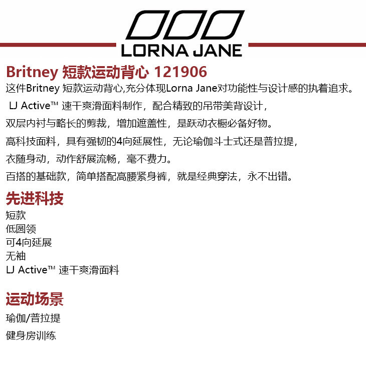 【清仓秒】澳洲 Lorna Jane Britney 短款运动背心 121906(无胸垫)(清仓产品,收货7天内支持调货、不退款)