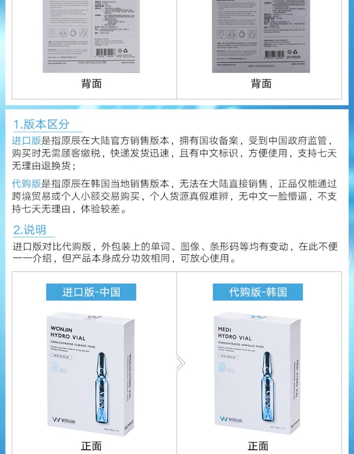 【精选热卖】韩国原辰WONJIN透明质酸补水保湿面膜30g*10片