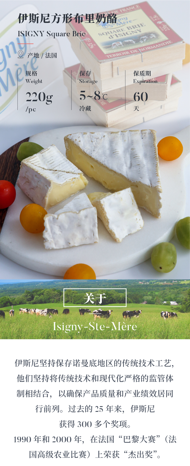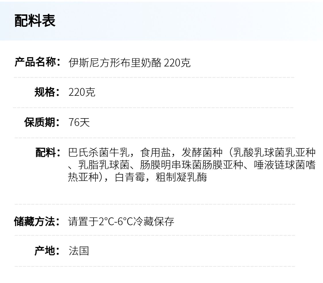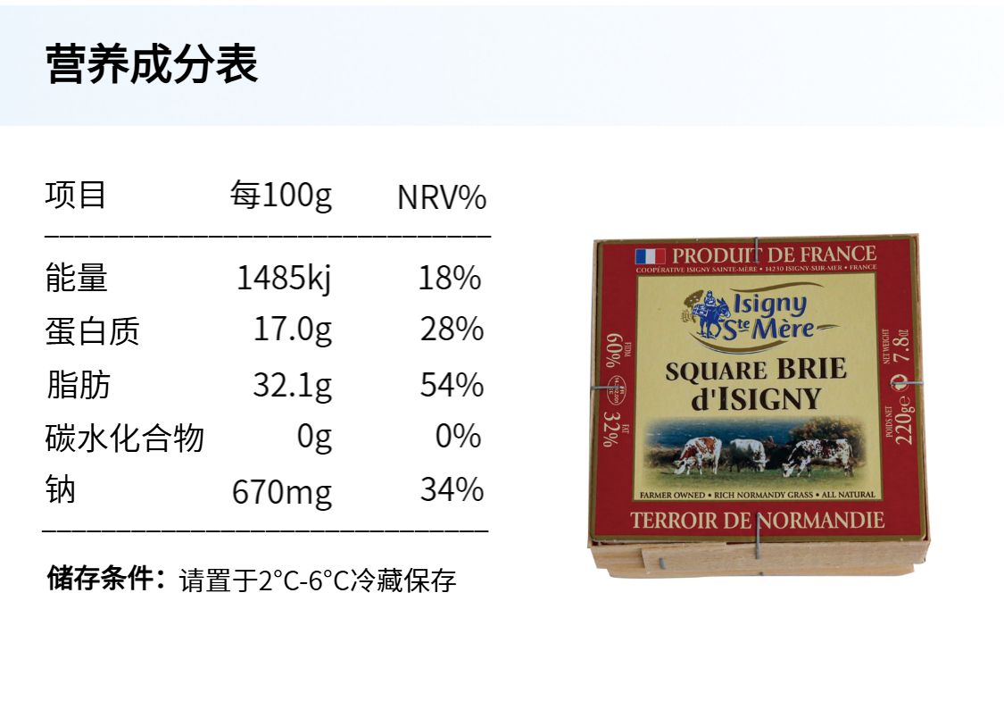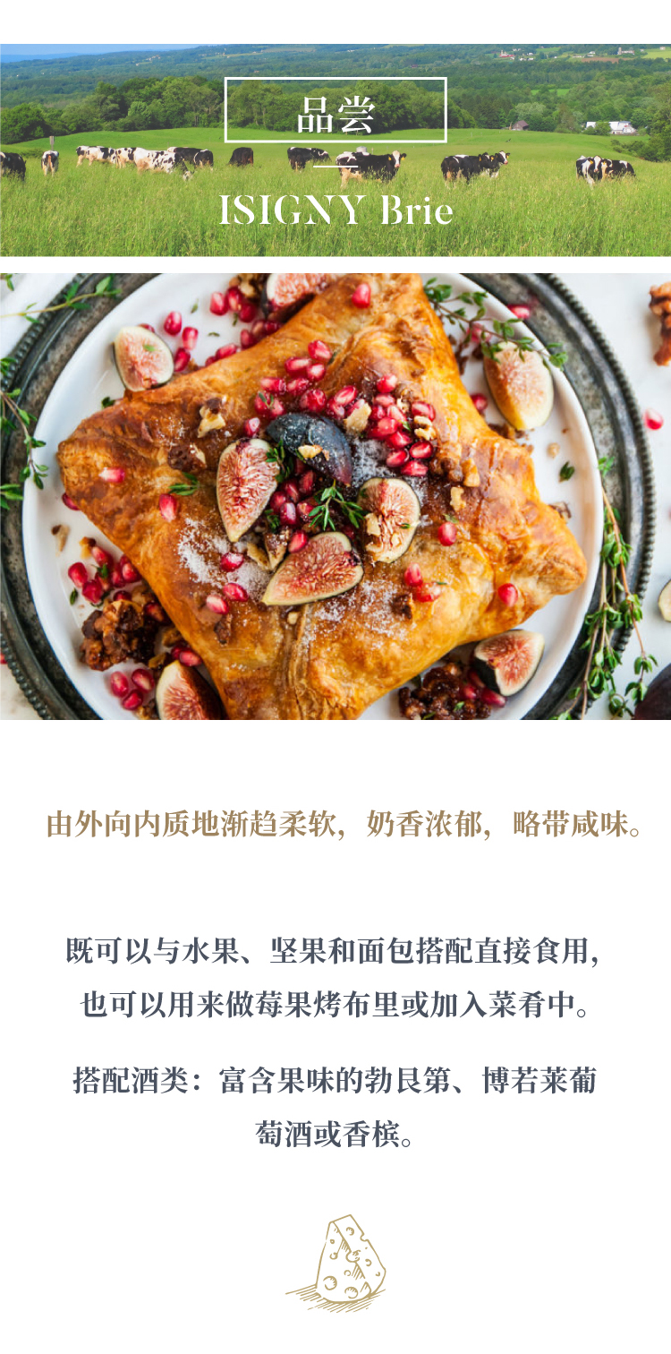 法国布里奶酪 220g 伊斯尼Brie 经典入门款奶酪 软质奶酪浓郁奶香