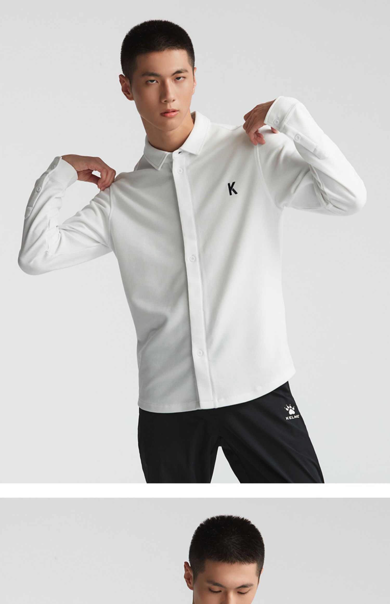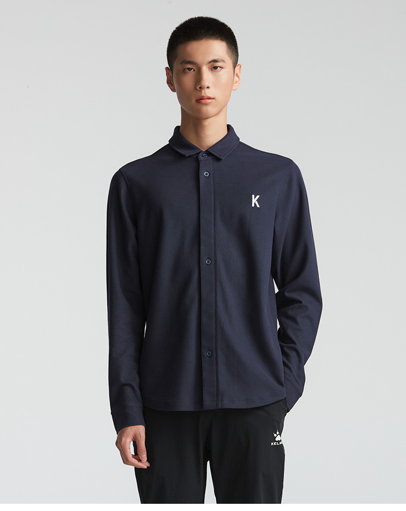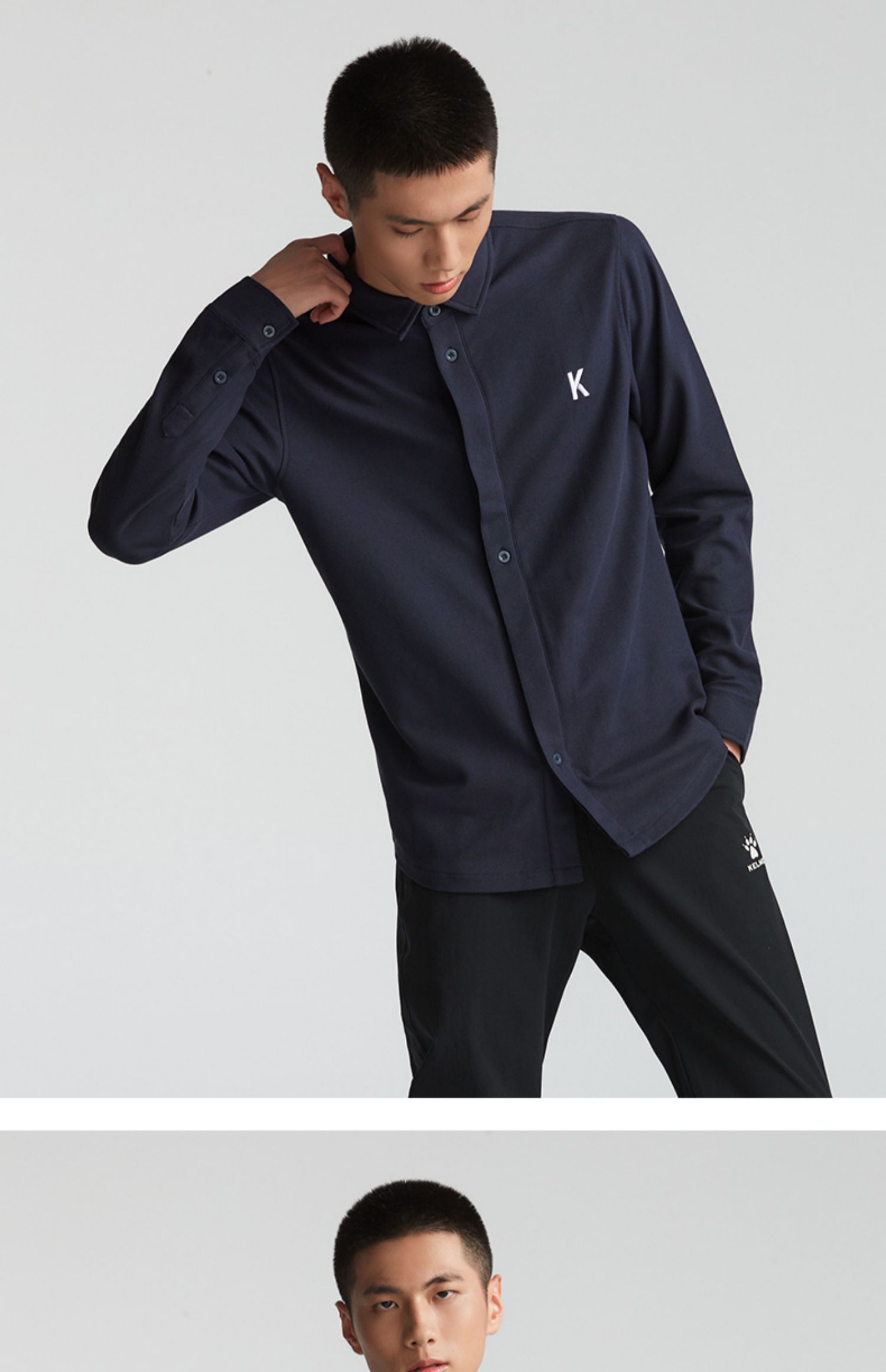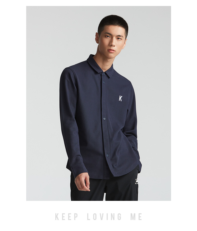 卡尔美运动休闲长袖T恤新款夏秋男士商务时尚棉纯色衬衫