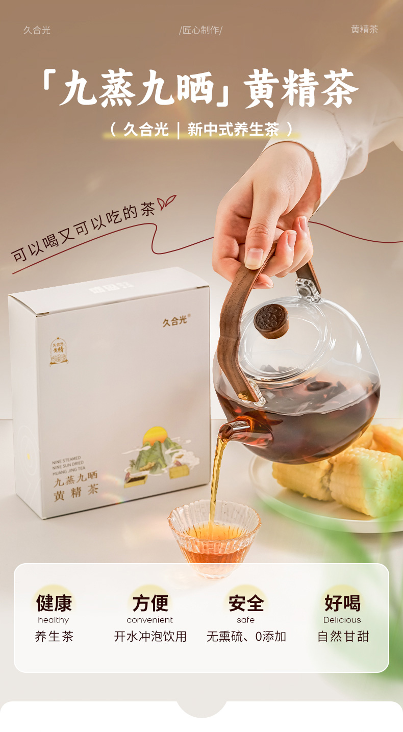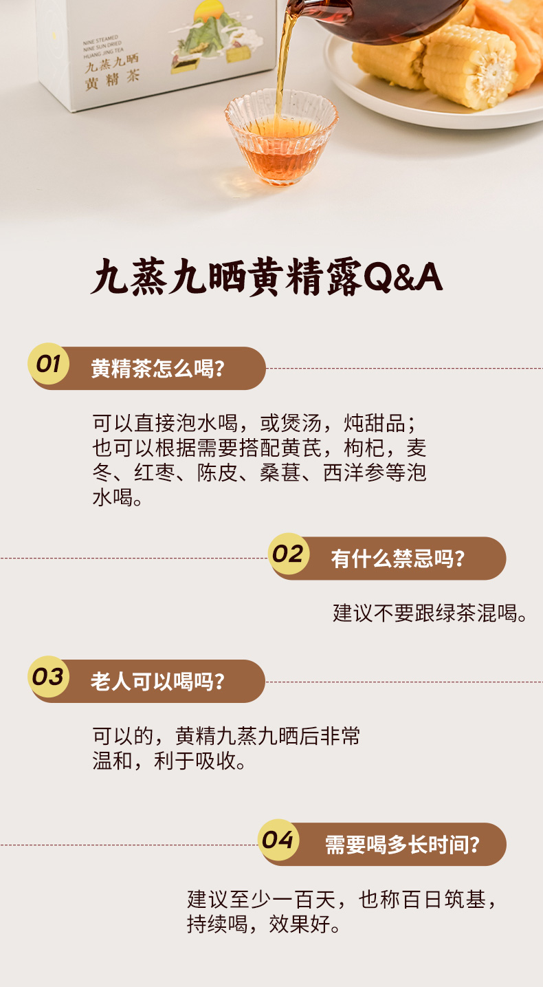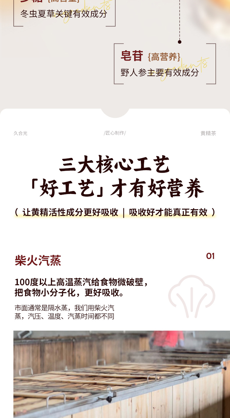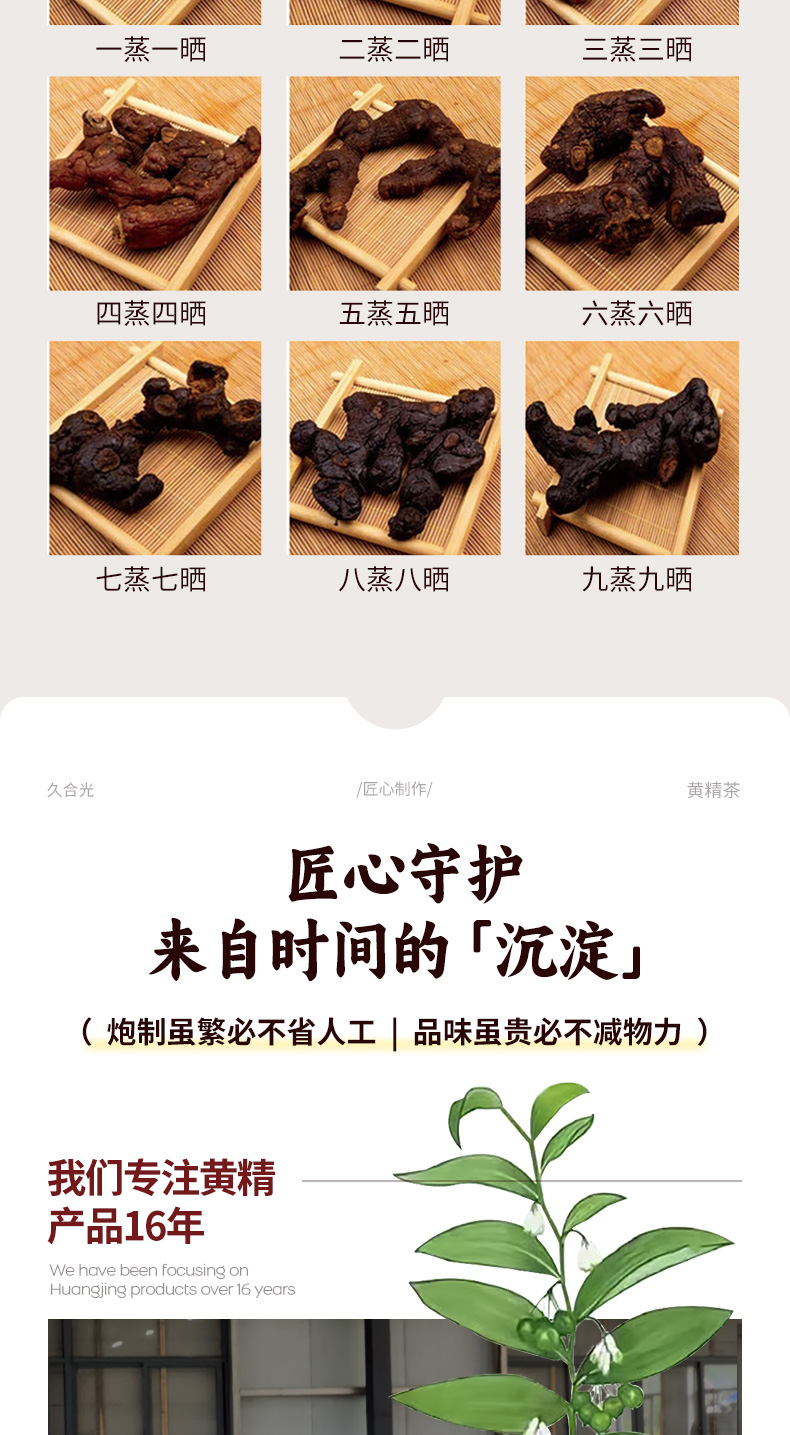 九蒸九晒黄精茶 恪守古法 柴火汽蒸 温而不燥