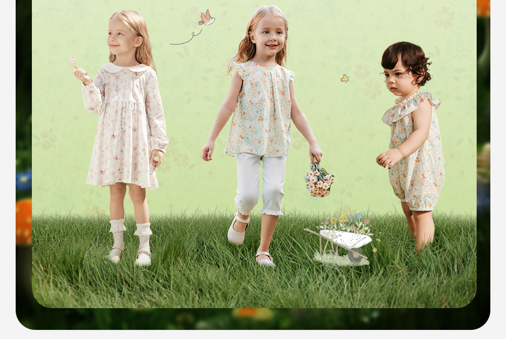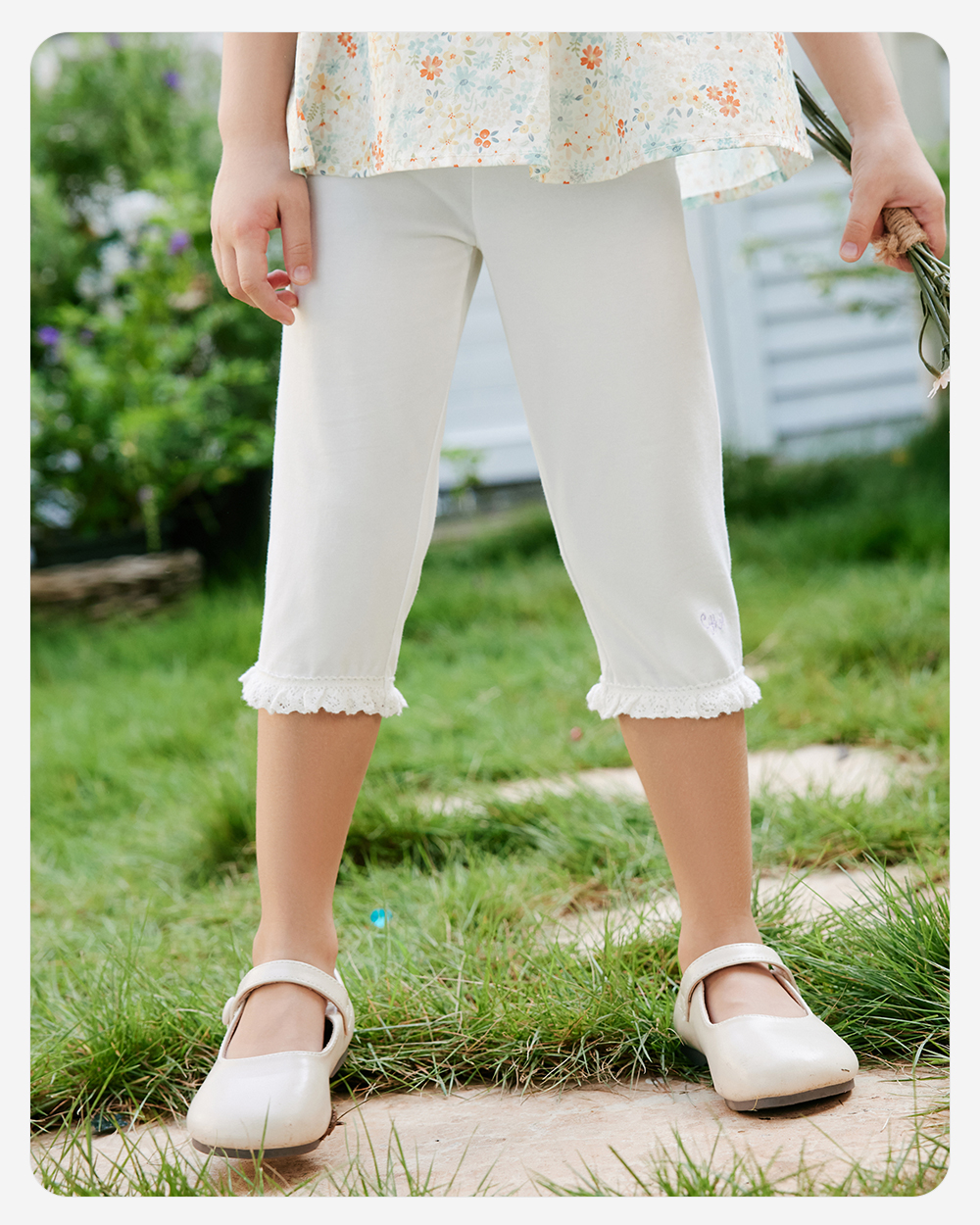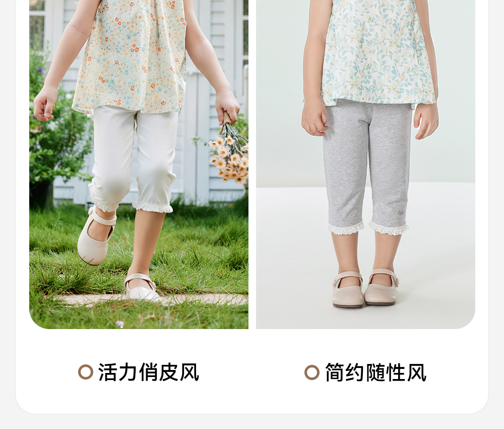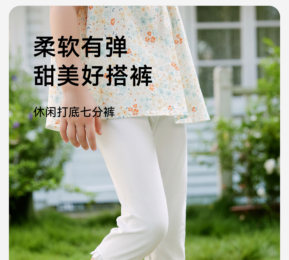 【森林密语系列】英氏儿童裤子夏季透气裤子休闲女童打底裤百搭柔软新款7分裤