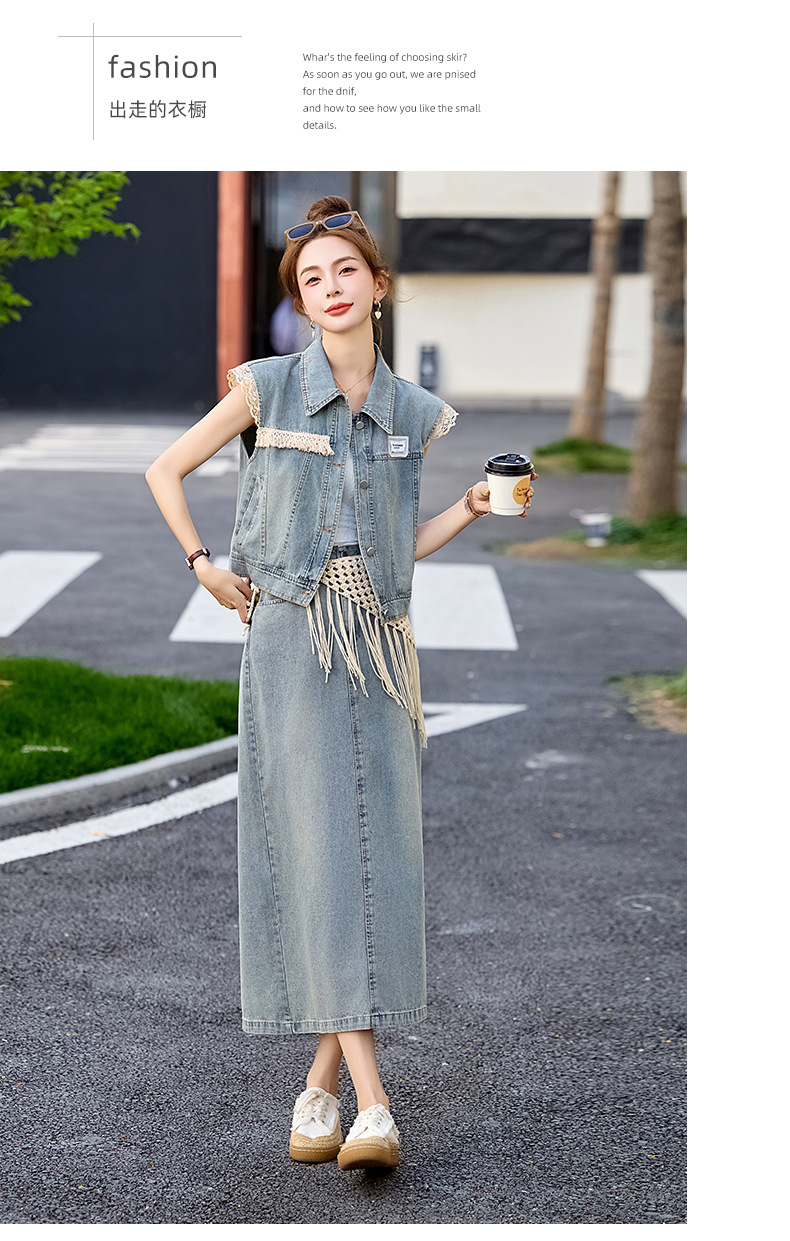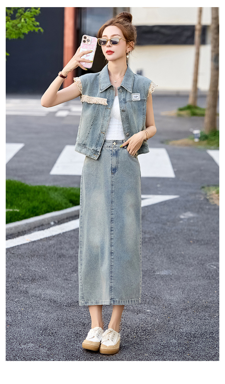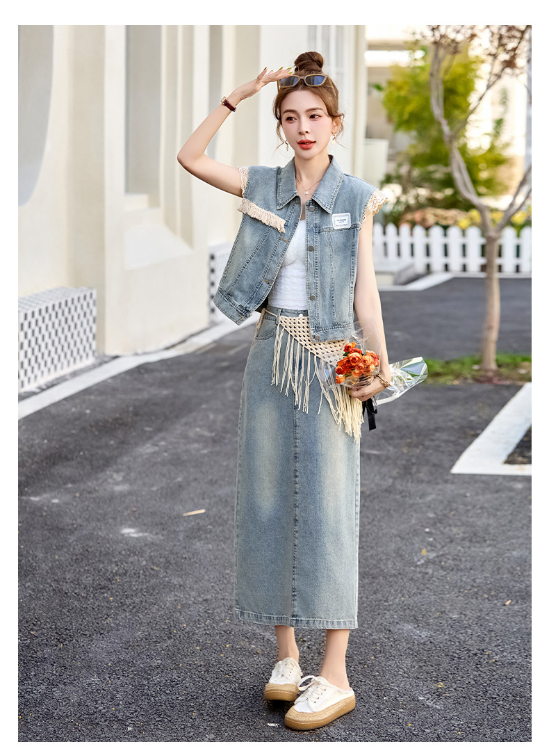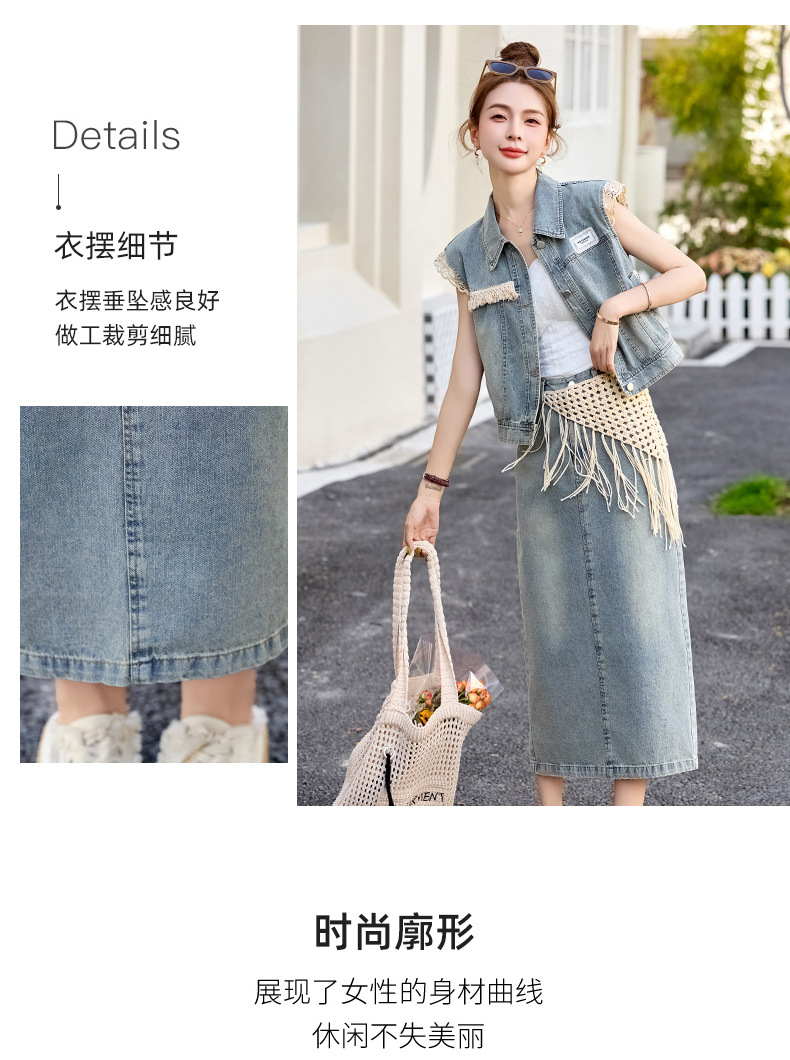 时尚牛仔半身裙套装,爆款减龄漂亮连衣裙两件套ZAI66632Q