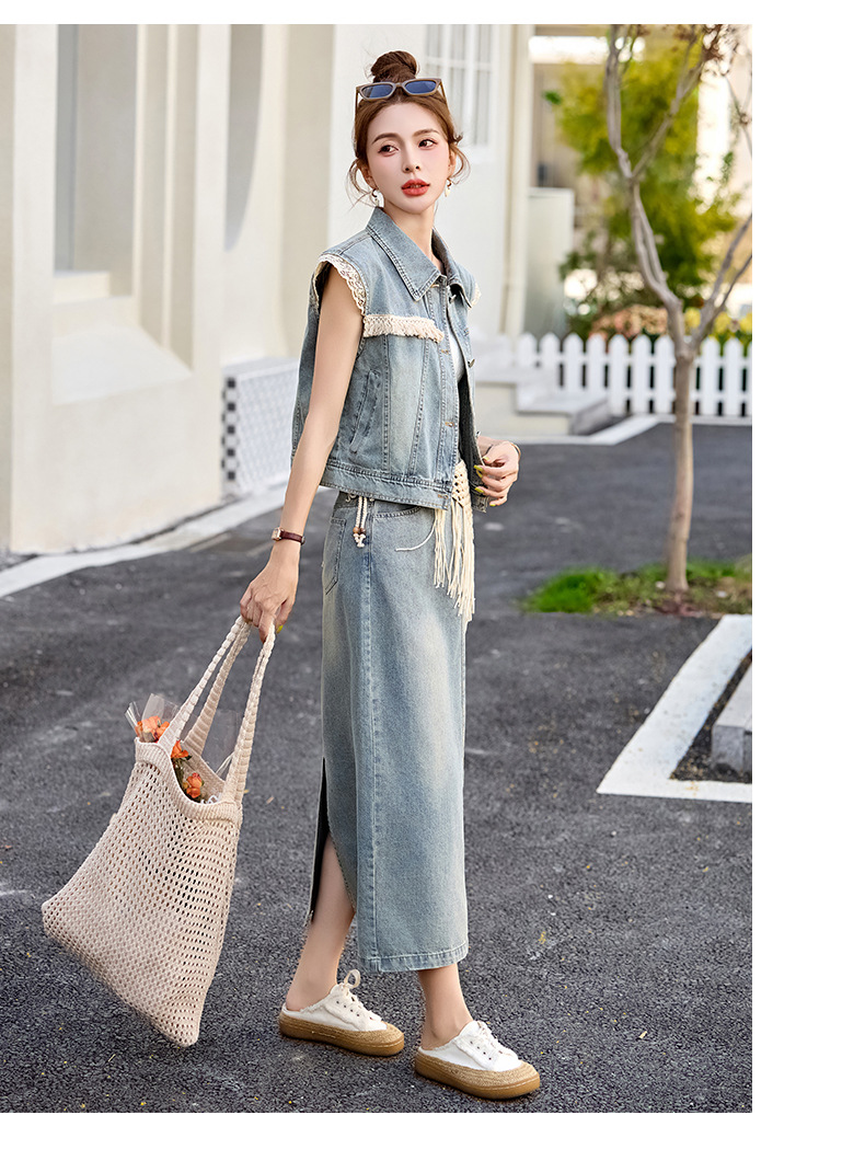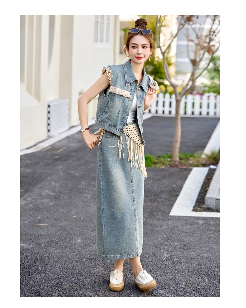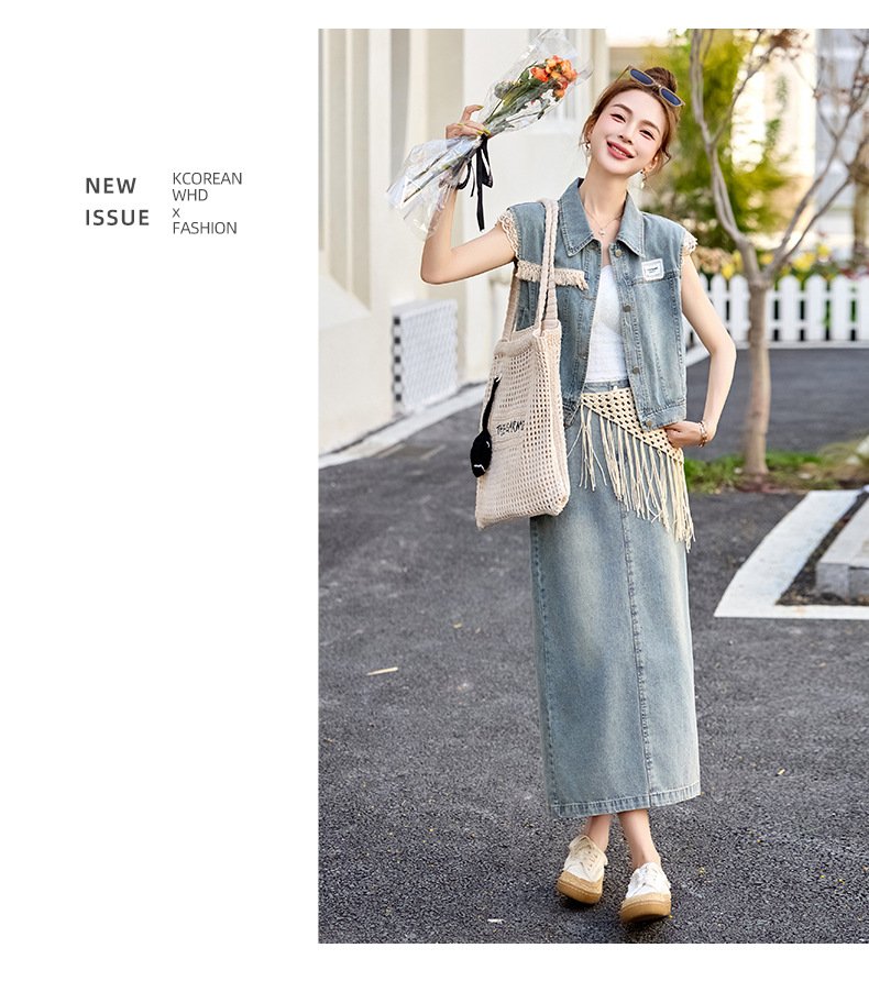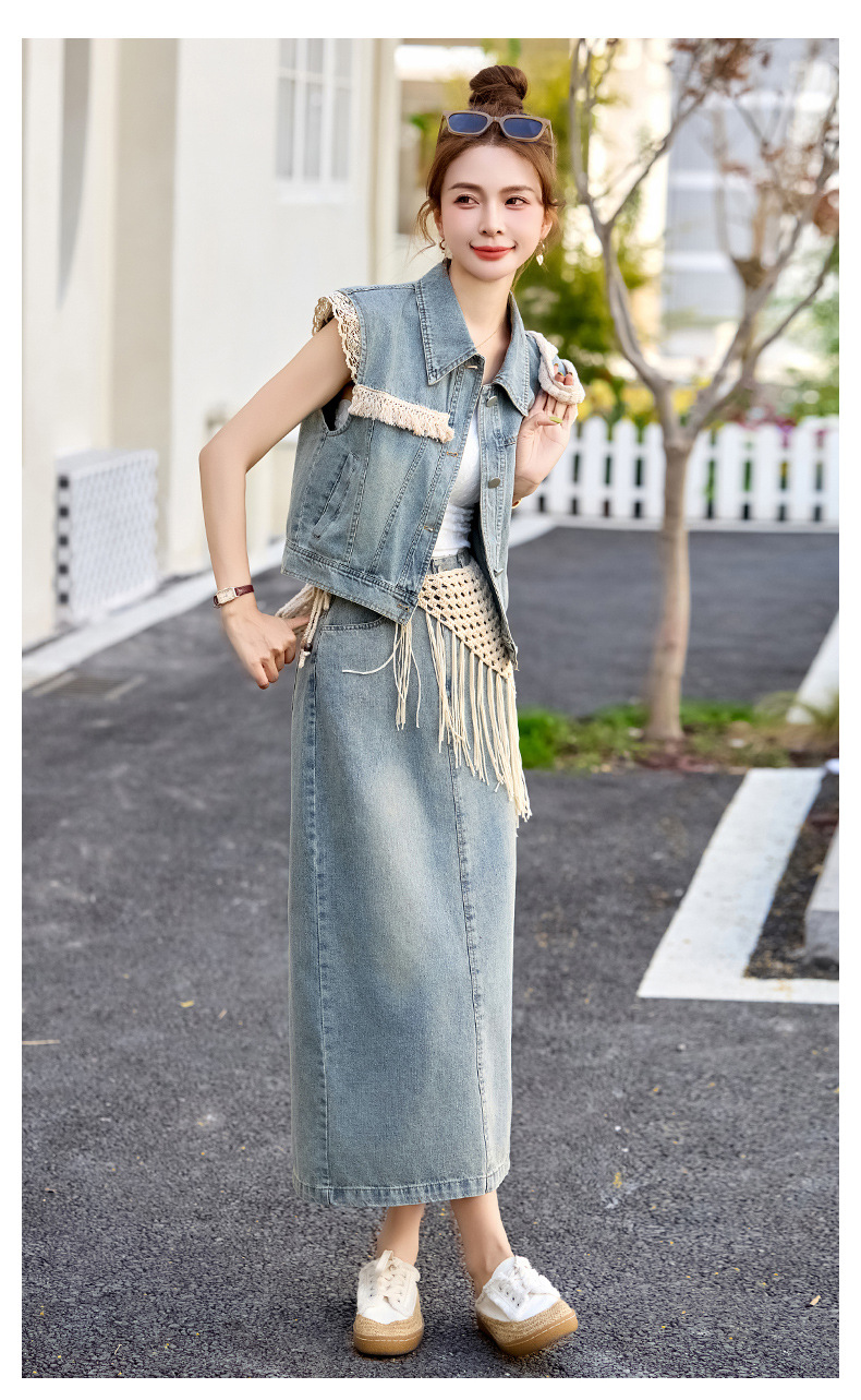 时尚牛仔半身裙套装,爆款减龄漂亮连衣裙两件套ZAI66632Q