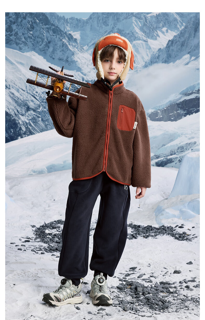 【MQD】男大童冬季学院风潮酷休闲保仿羊羔绒立领外套