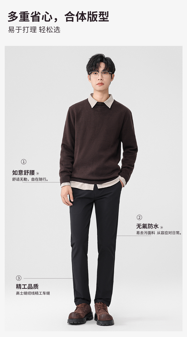罗蒙秋冬休闲裤户外暗纹肌理创新如意腰头设计百搭日常显腿长长裤子男