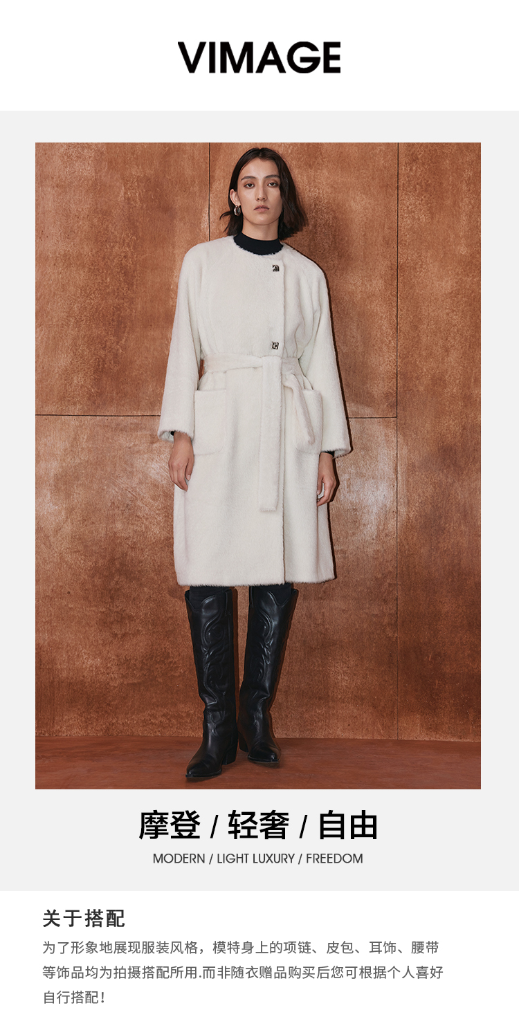 VIMAGE纬漫纪冬季新款毛呢大衣气质保暖羊毛大衣外套V2014618