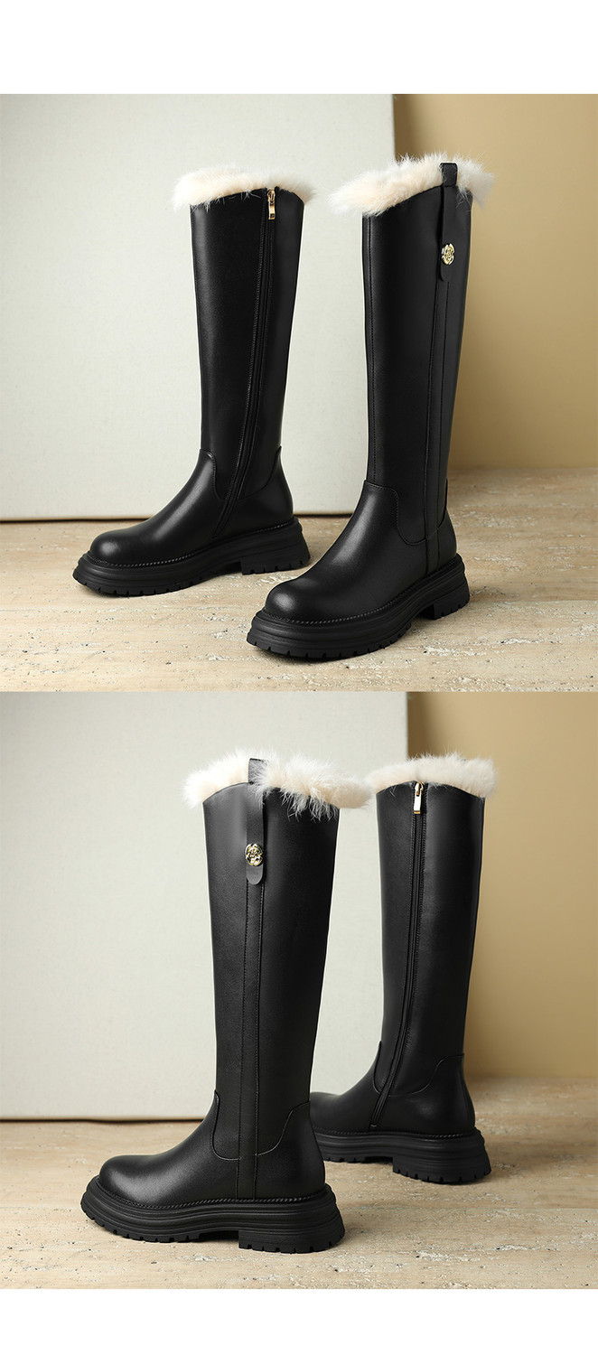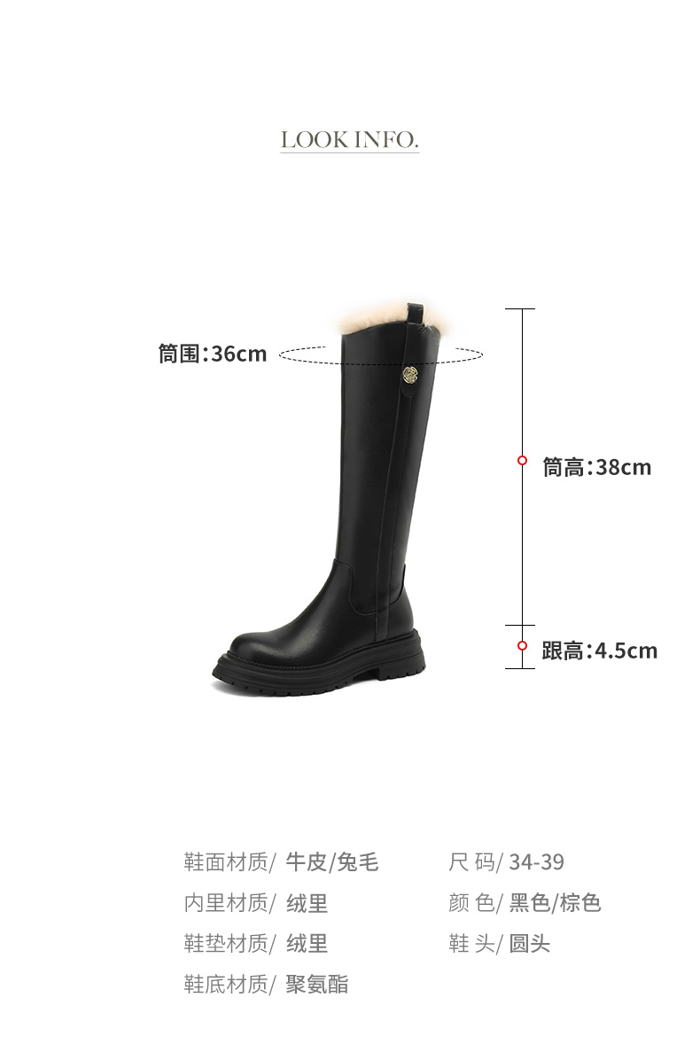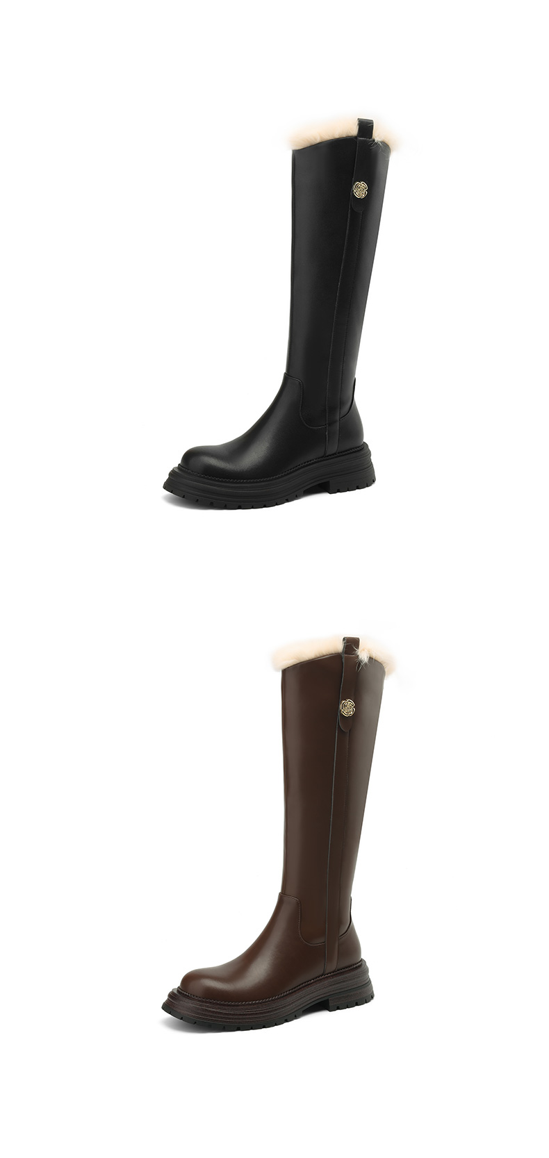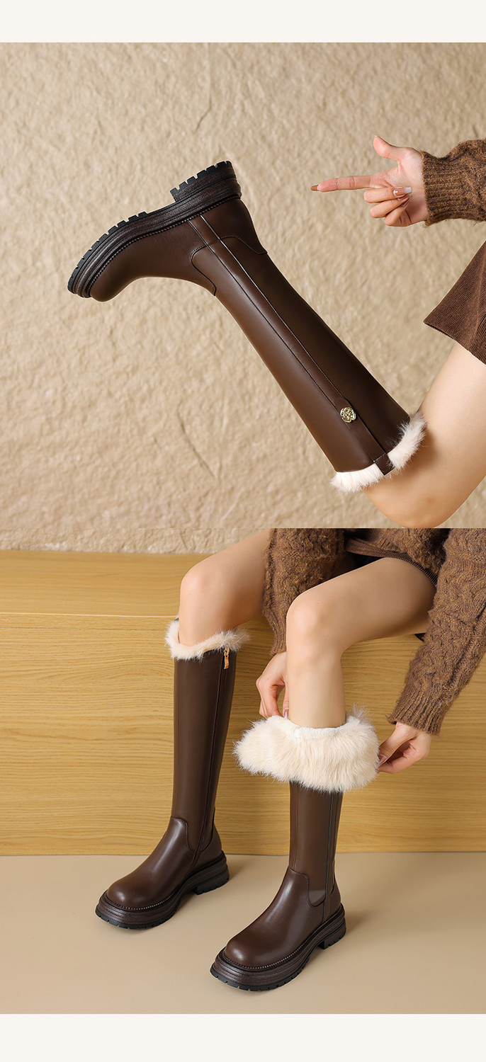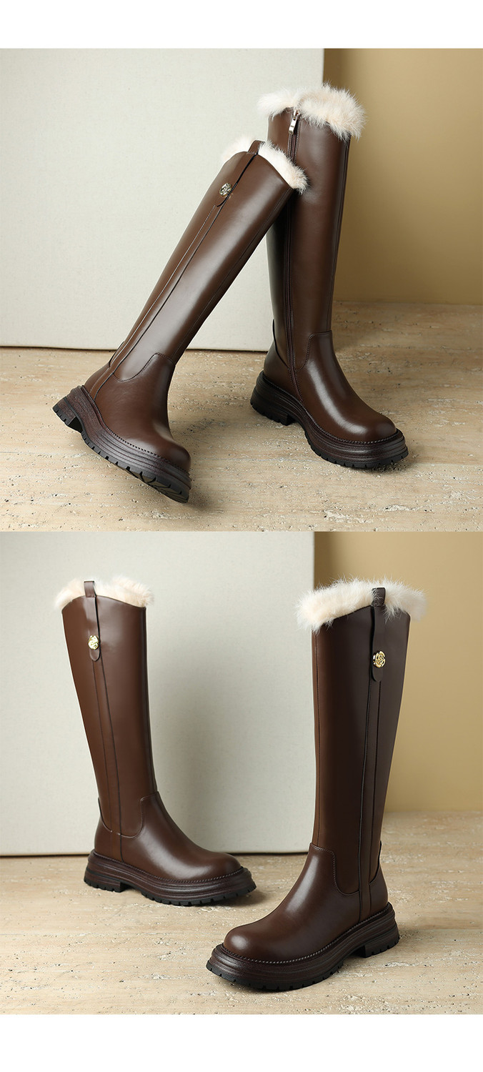 【预售5天】靴子女长靴厚底雪地靴女款冬季棕色保暖粗跟真皮长筒骑士靴YMT&A715