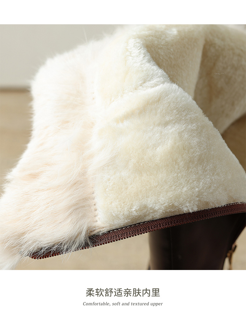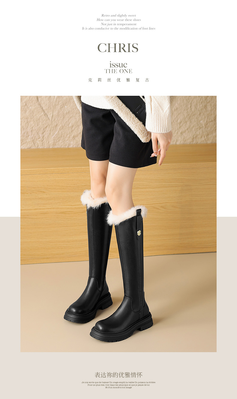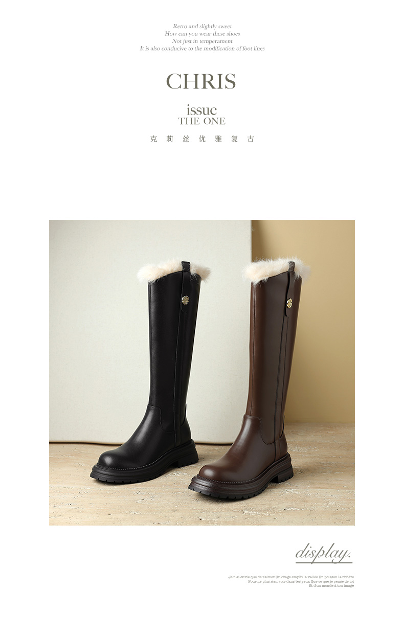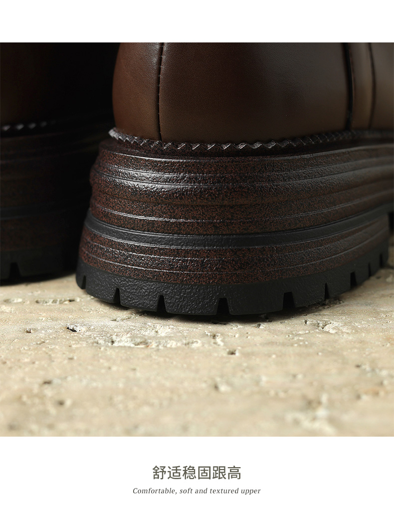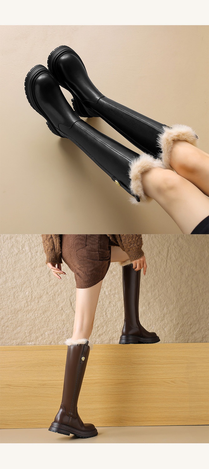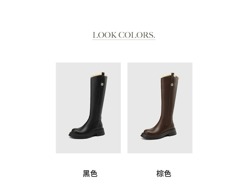 【预售5天】靴子女长靴厚底雪地靴女款冬季棕色保暖粗跟真皮长筒骑士靴YMT&A715