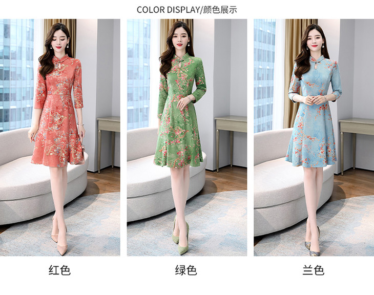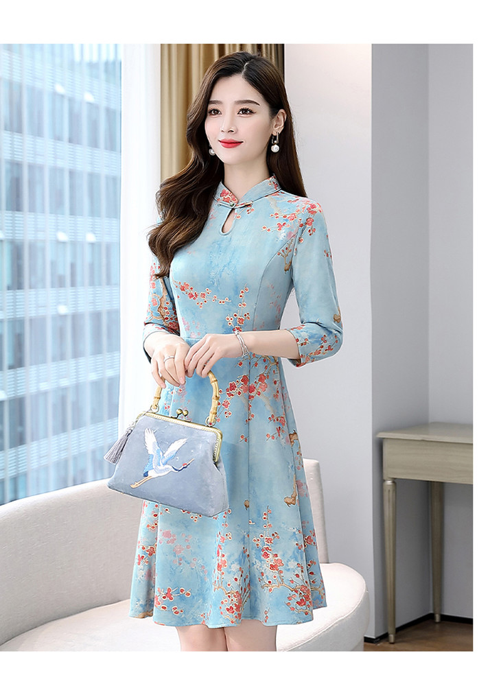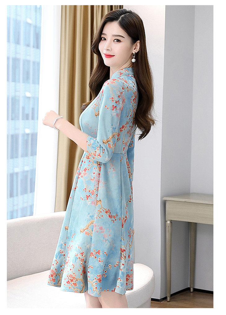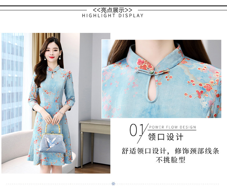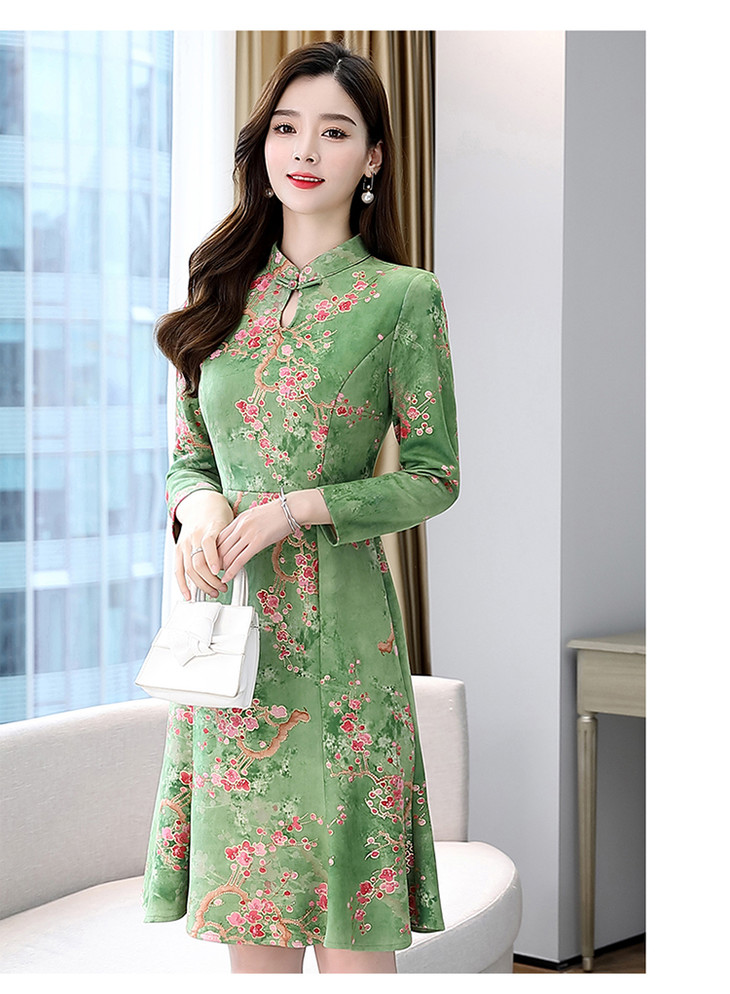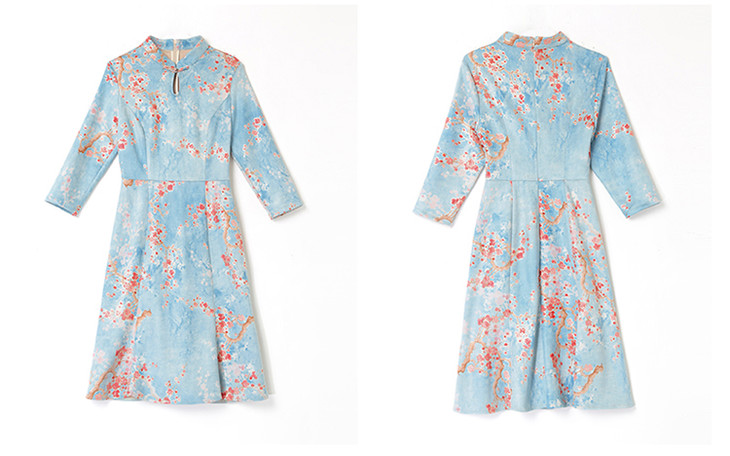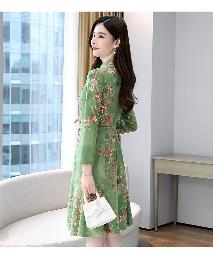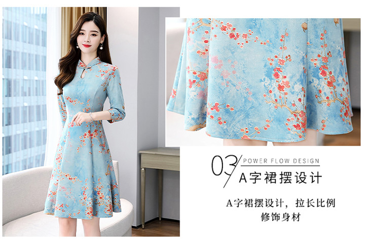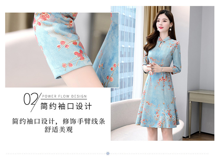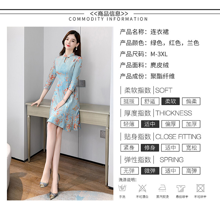 WZNH-MLJL6622修身百搭印花气质麂皮绒连衣裙