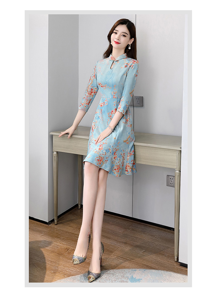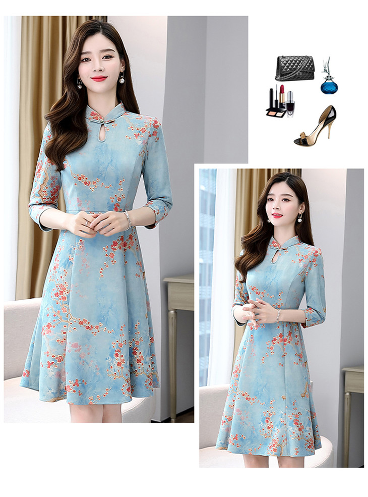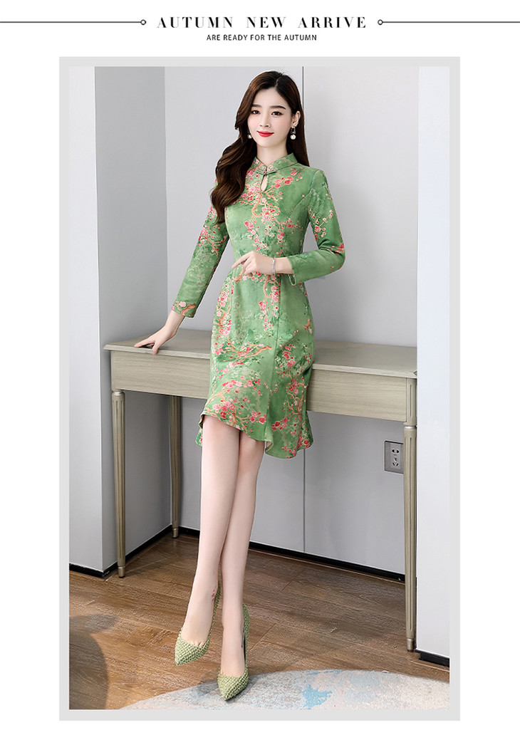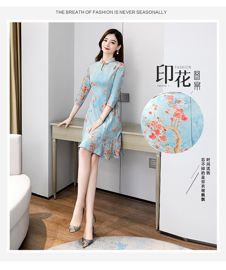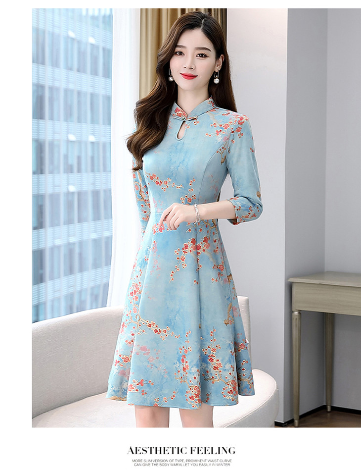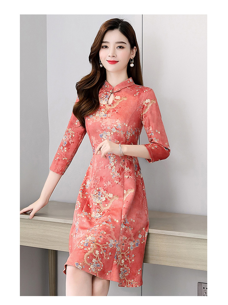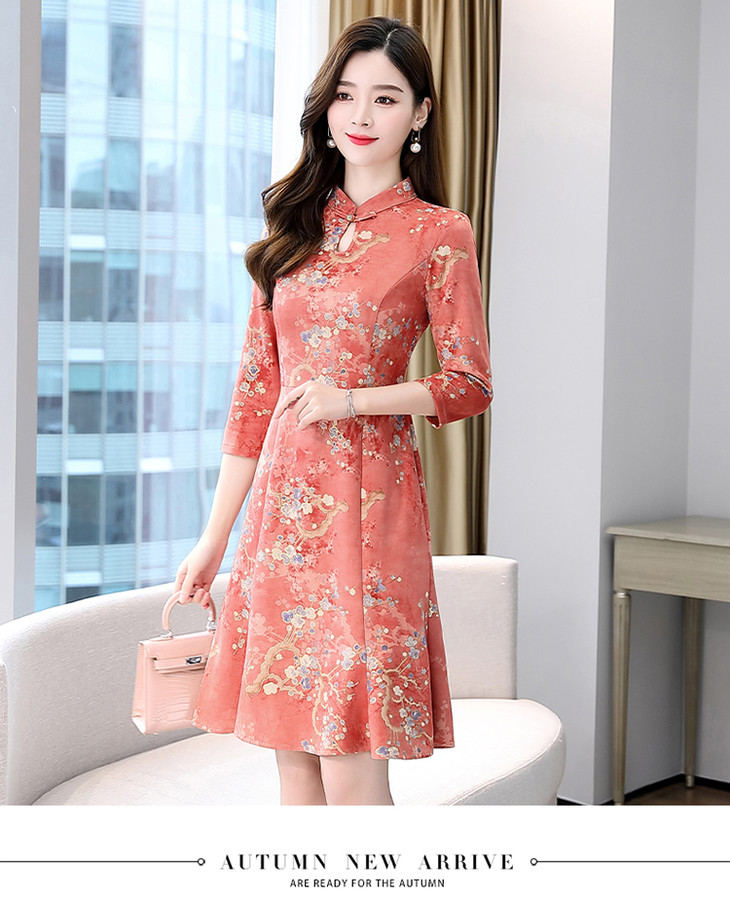 WZNH-MLJL6622修身百搭印花气质麂皮绒连衣裙