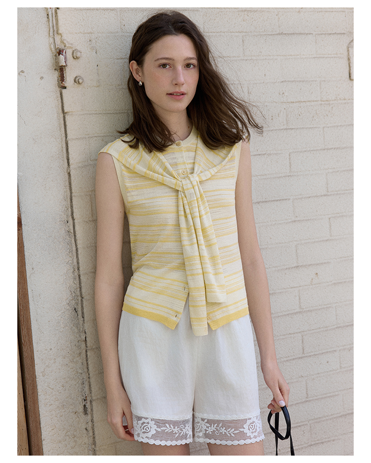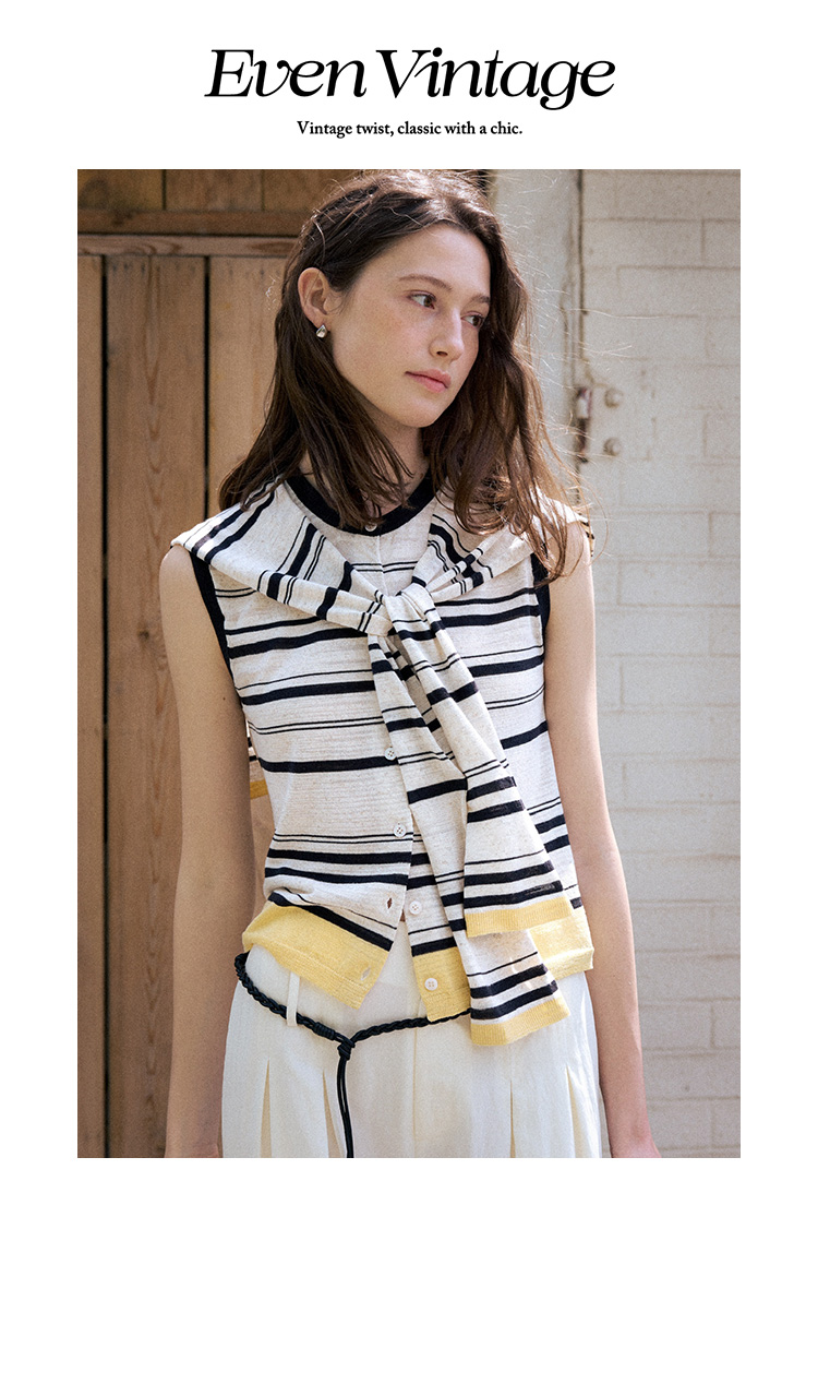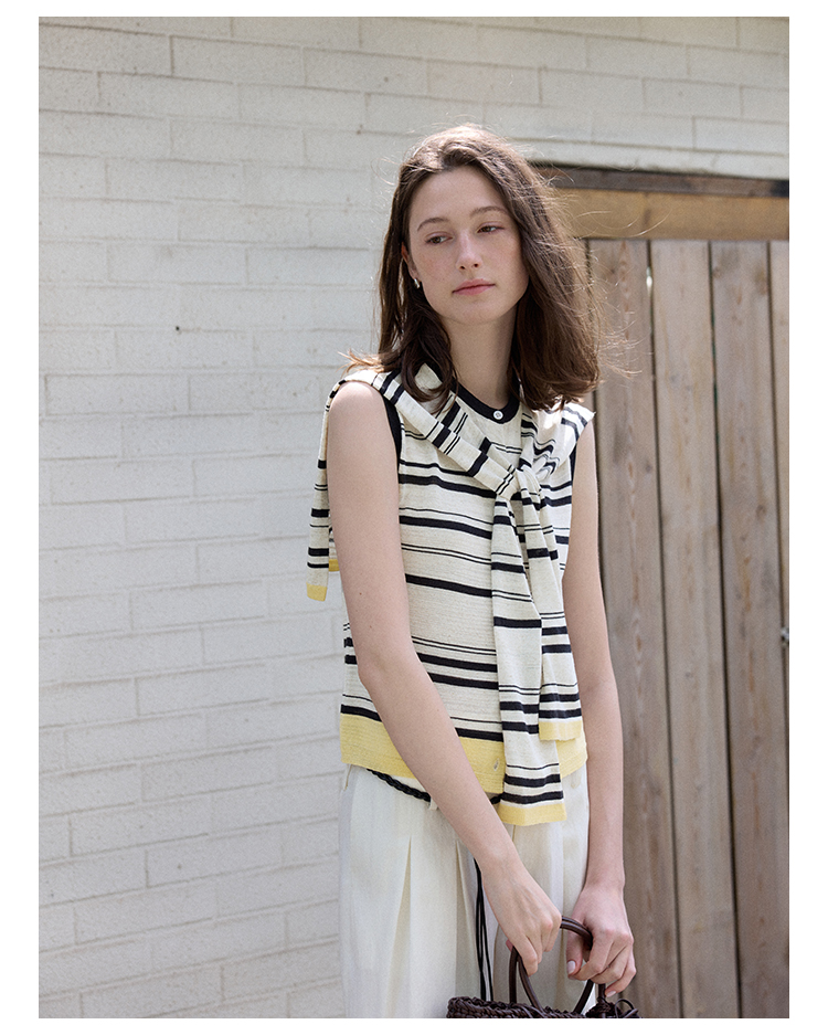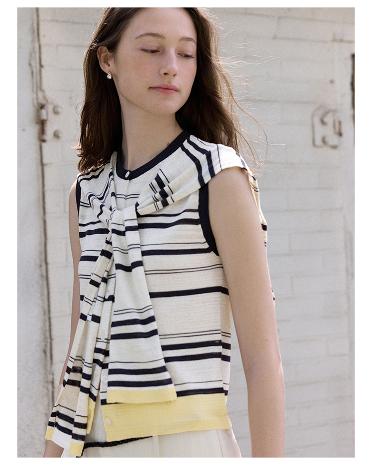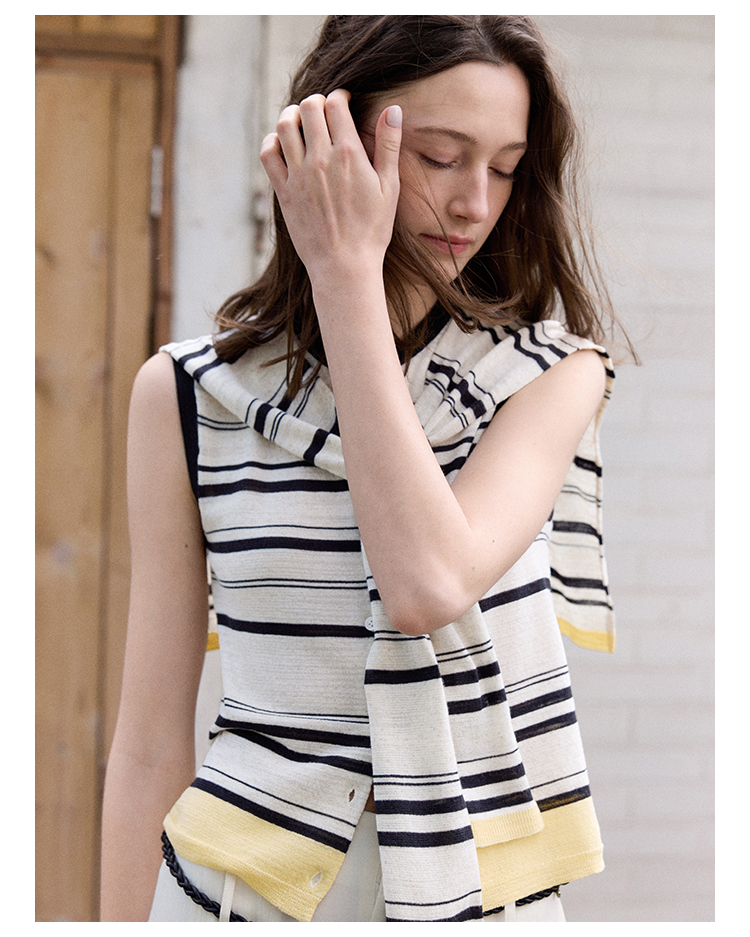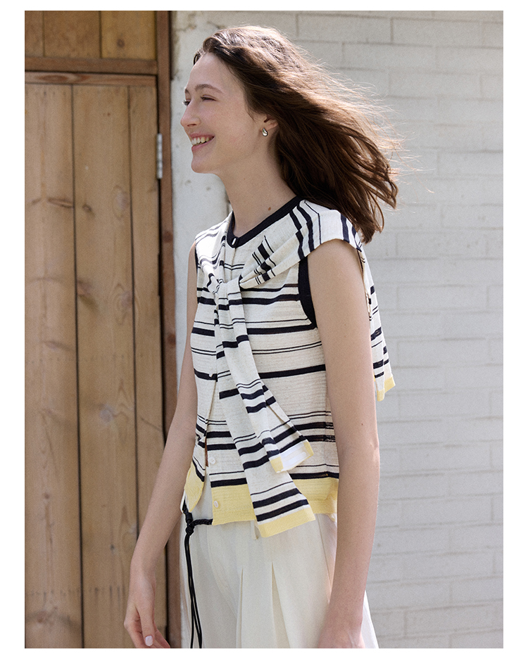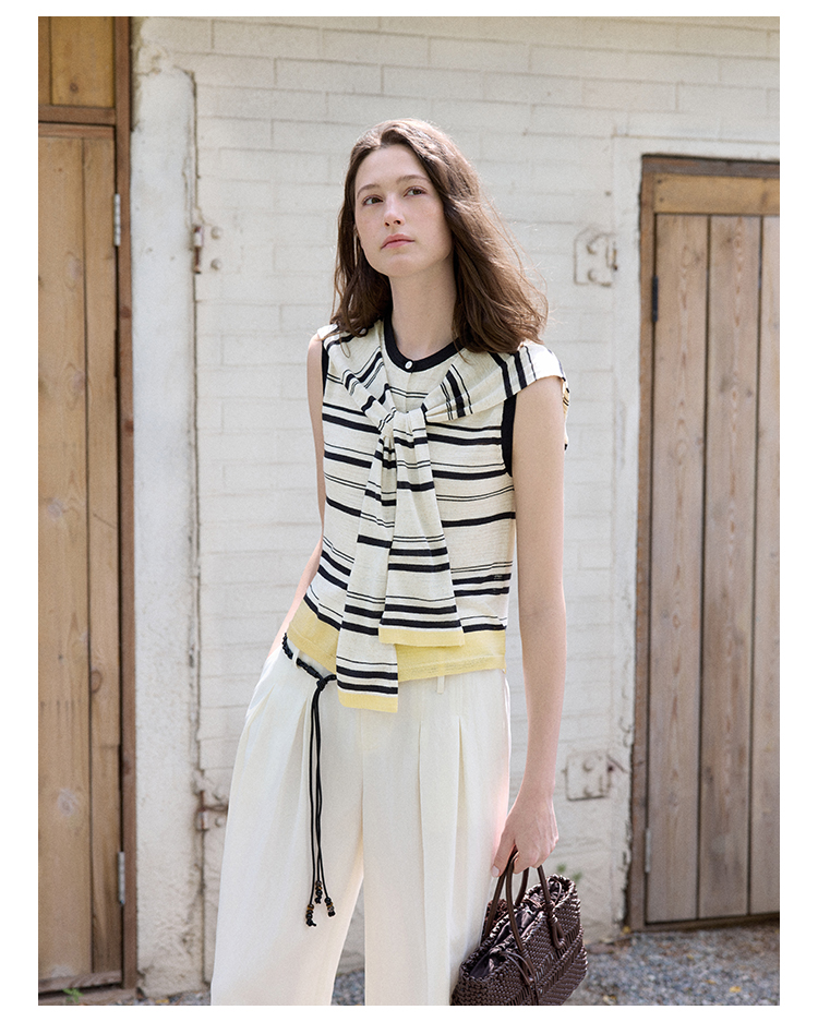 Even Vintage | 亚麻混纺 经典时尚撞色条纹设计无袖披肩背心夏新