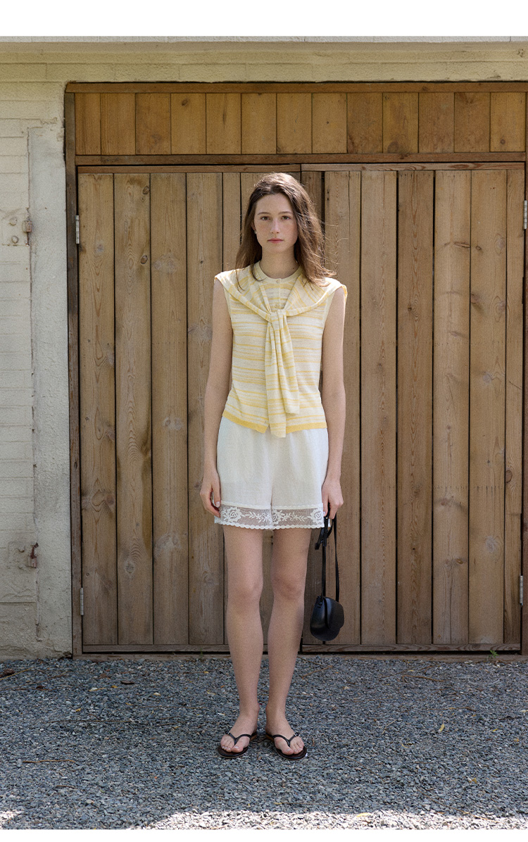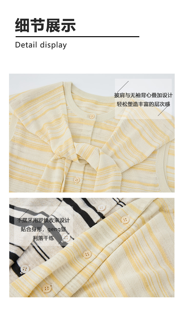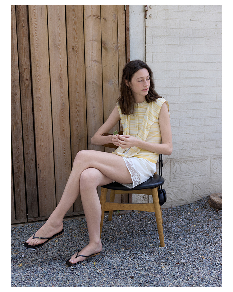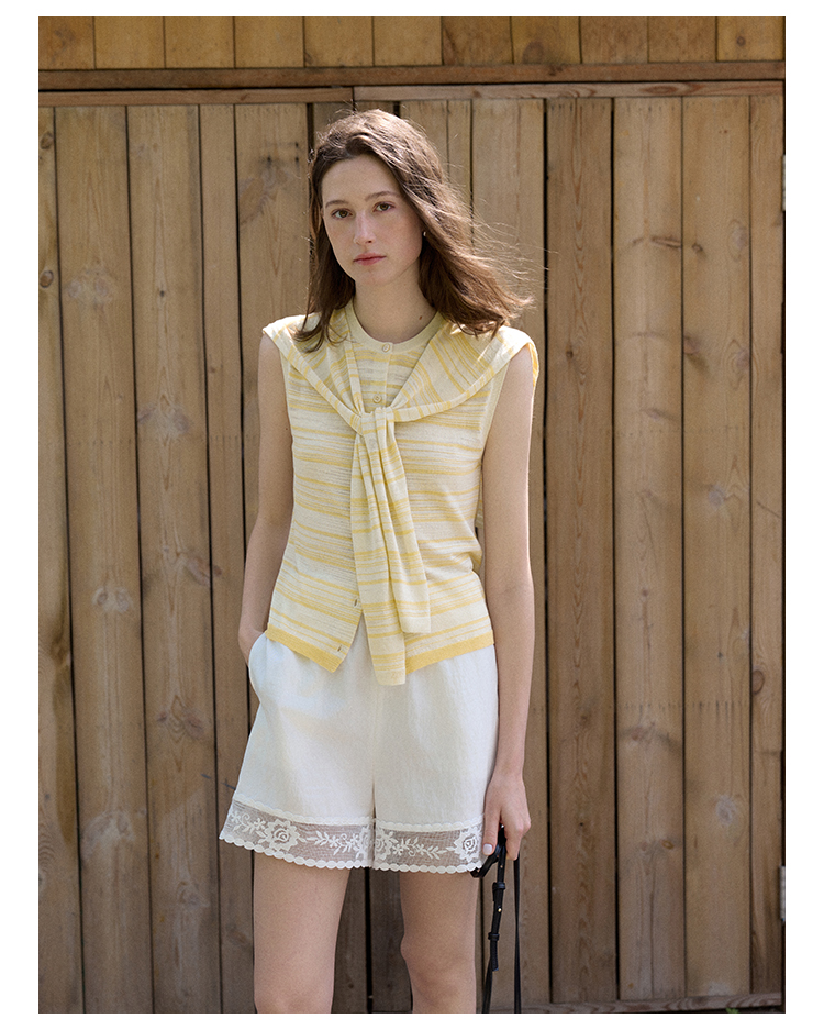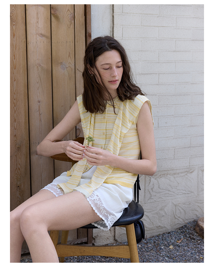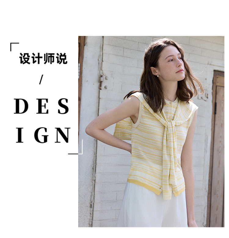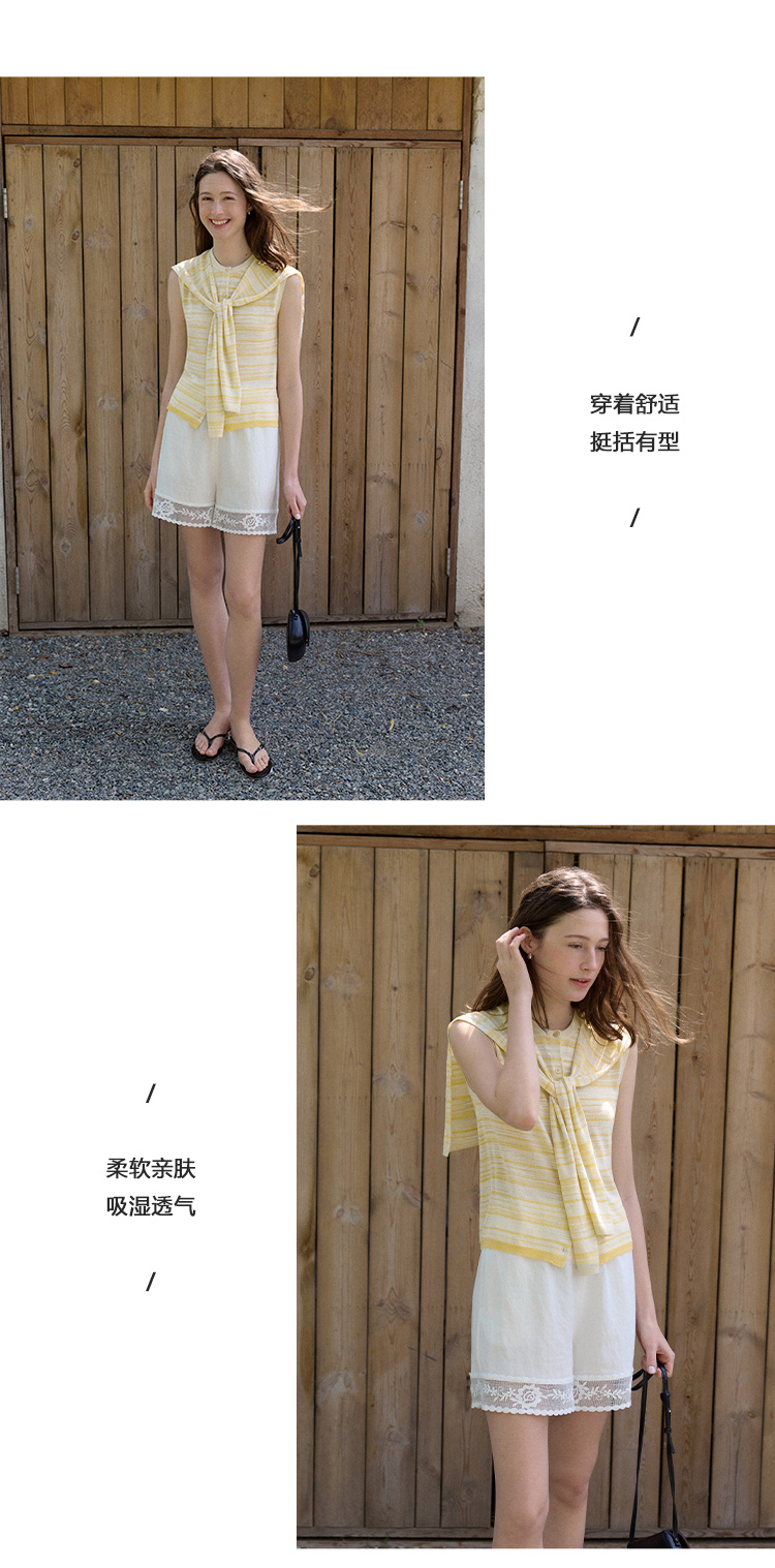 Even Vintage | 亚麻混纺 经典时尚撞色条纹设计无袖披肩背心夏新