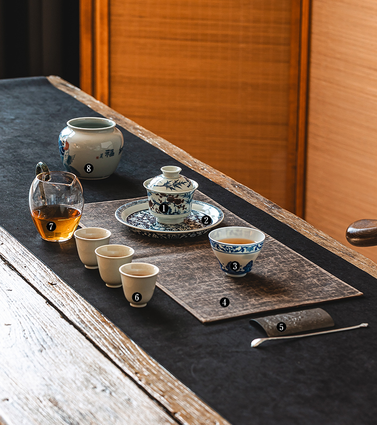茶香记松竹梅马蹄盖碗110ml景德镇青花釉里红手绘陶瓷泡茶器
