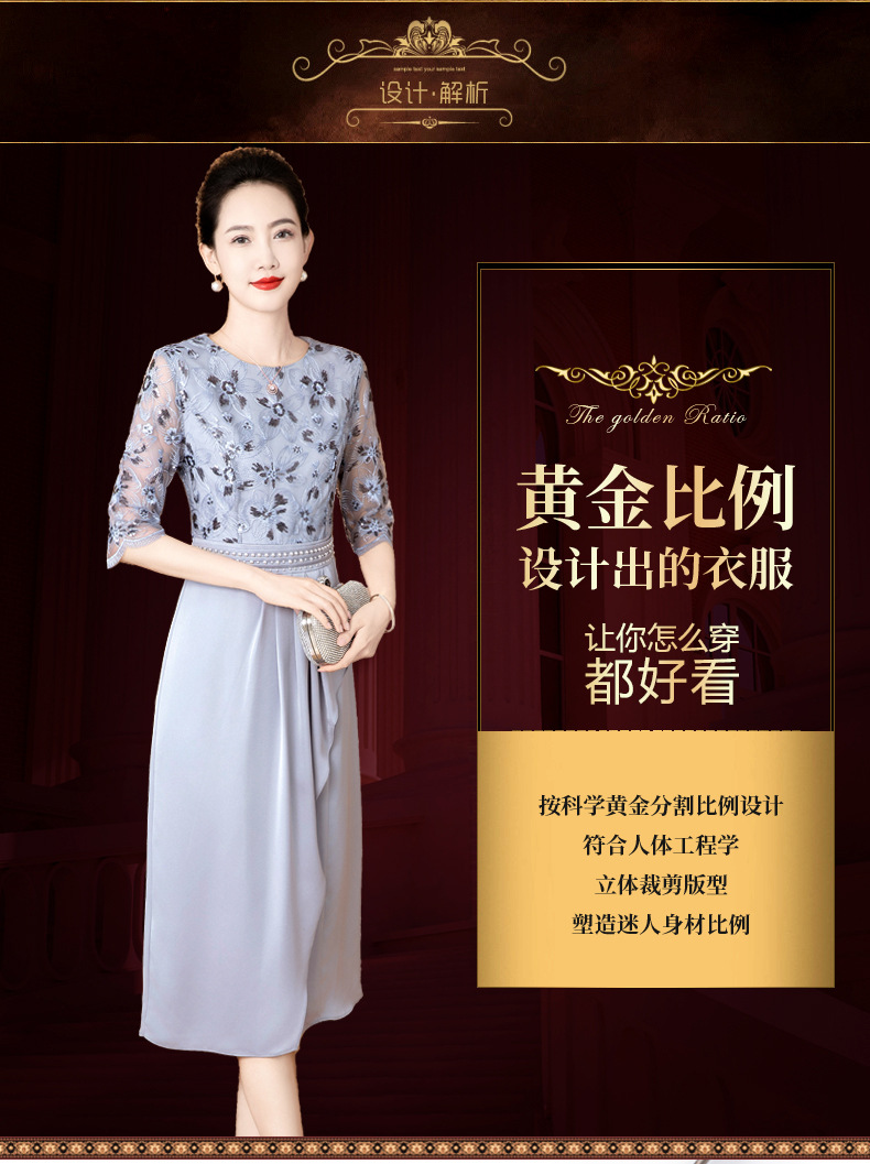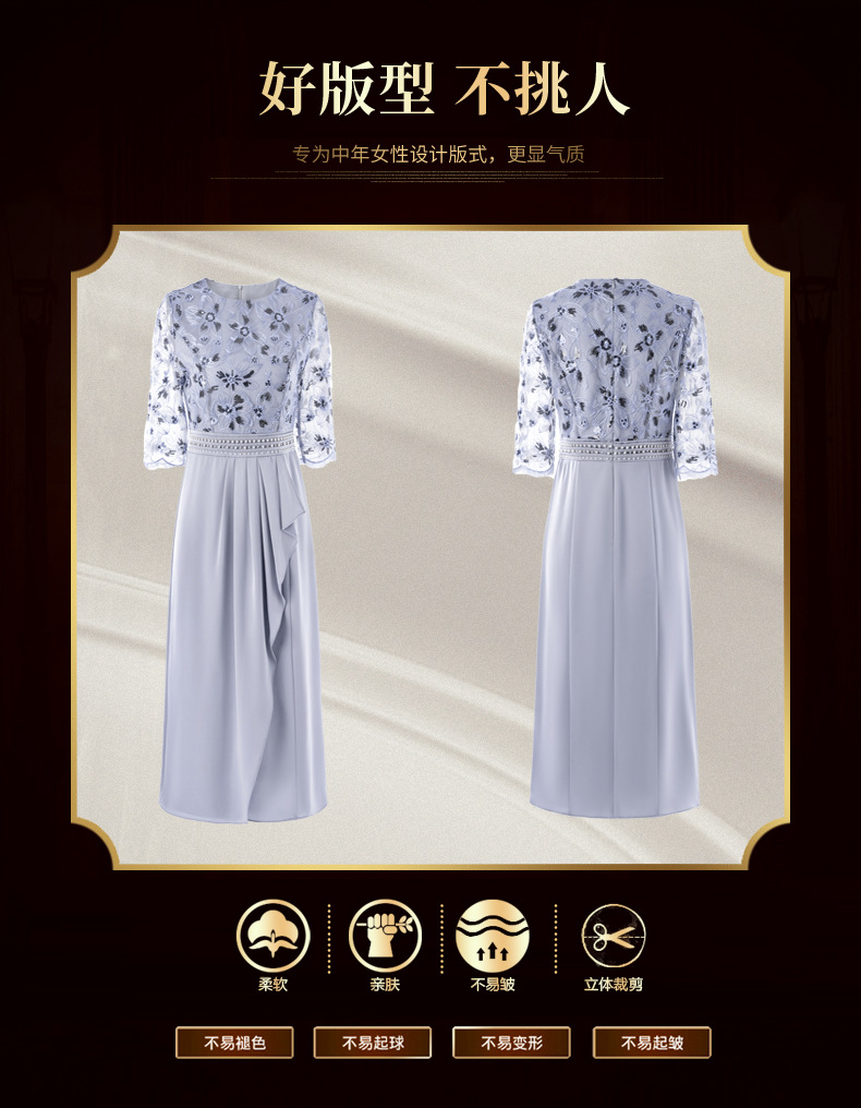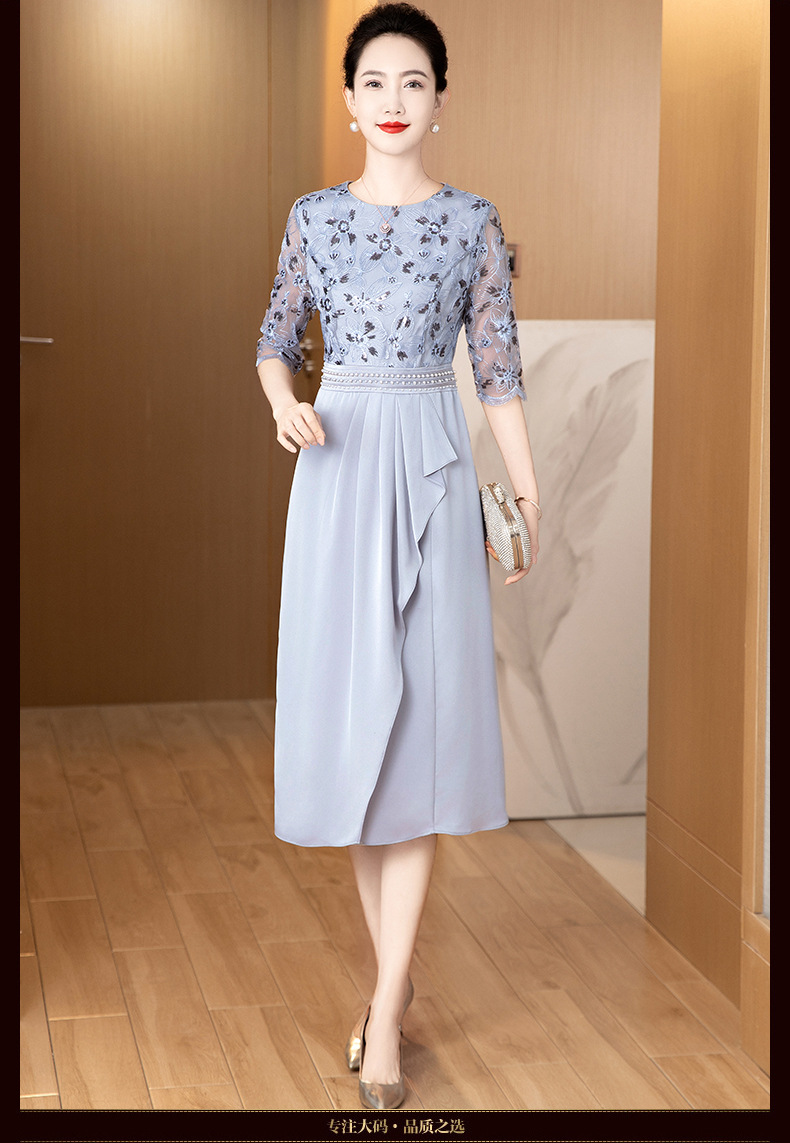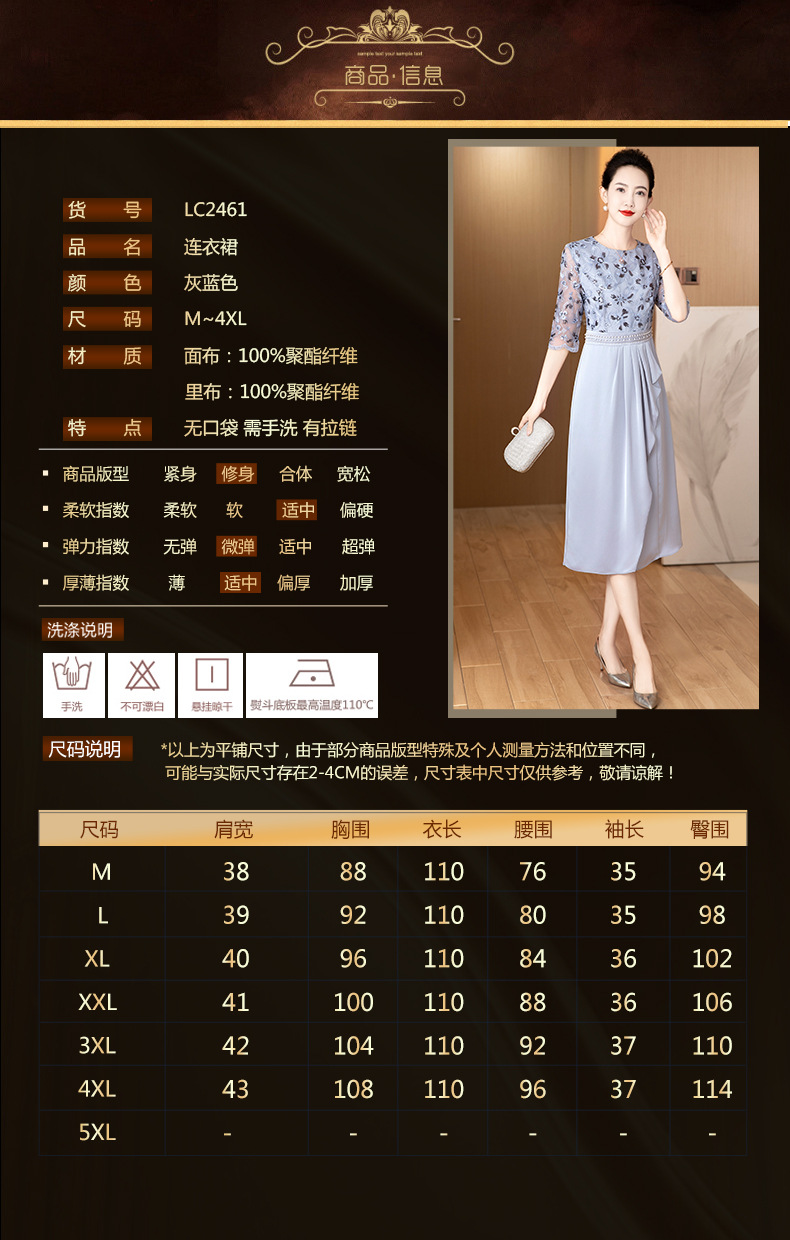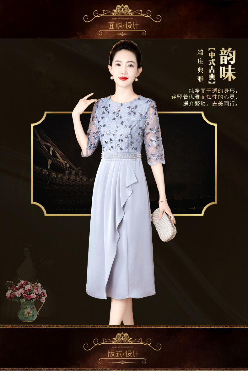 LC2461夏季收腰长款洋气时尚妈妈通勤连衣裙新款气质刺绣显瘦年轻妈妈装 商品图2