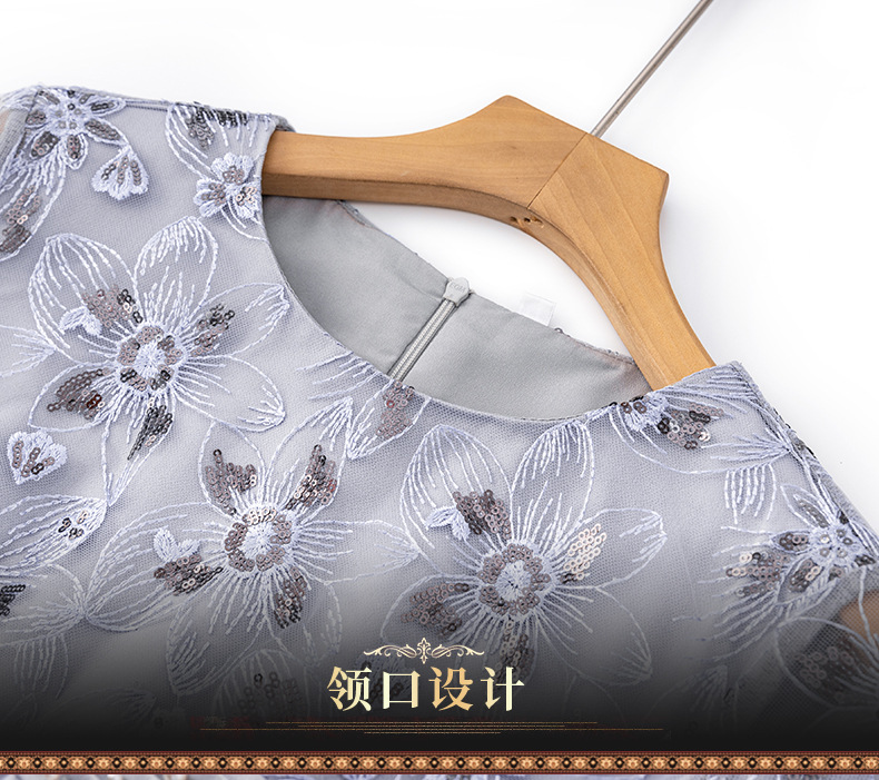 LC2461夏季收腰长款洋气时尚妈妈通勤连衣裙新款气质刺绣显瘦年轻妈妈装 商品图4