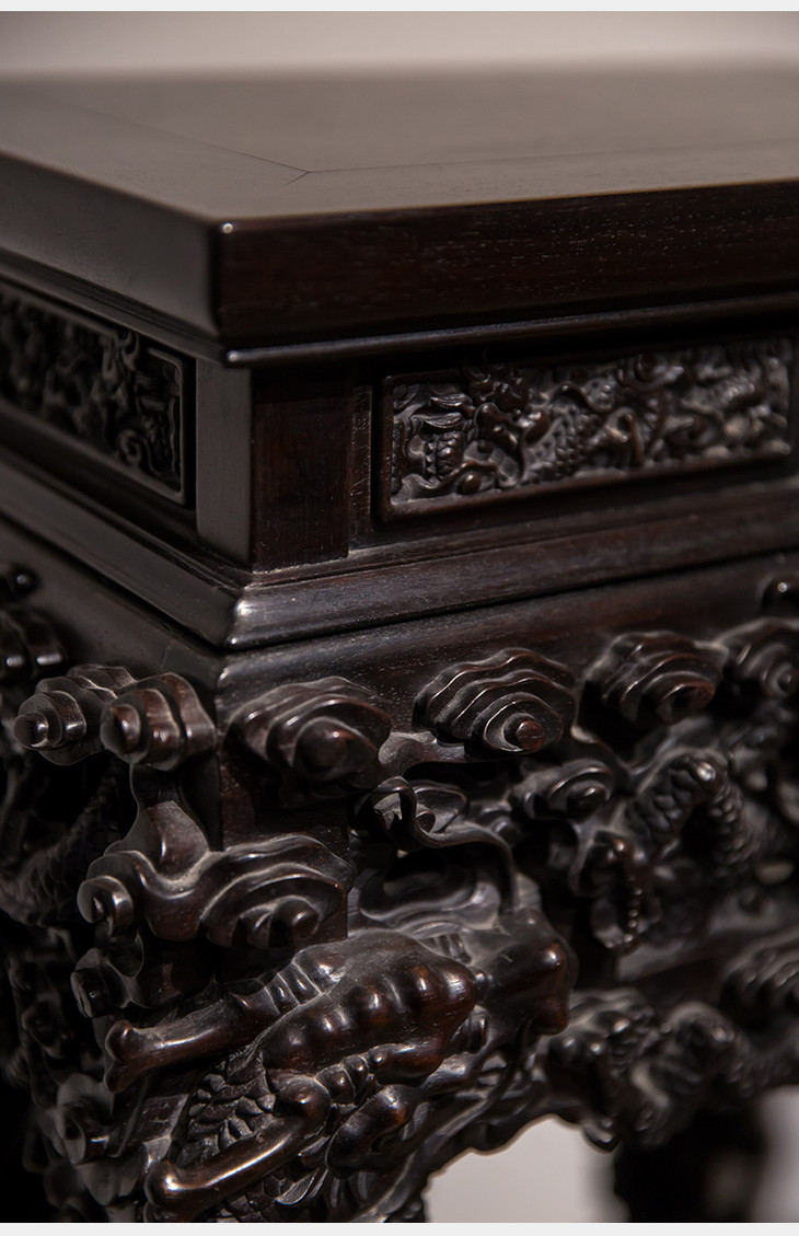 二十世纪 紫檀满雕云龙纹香几(成对)