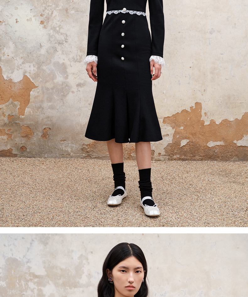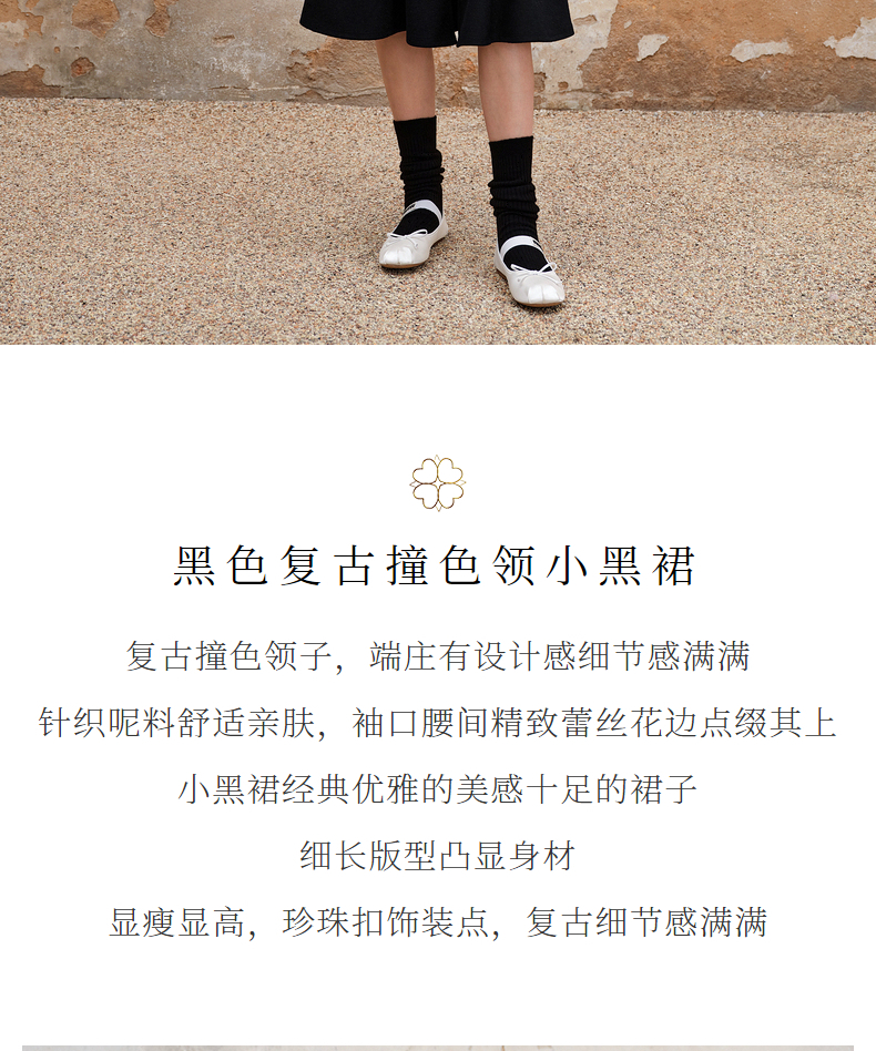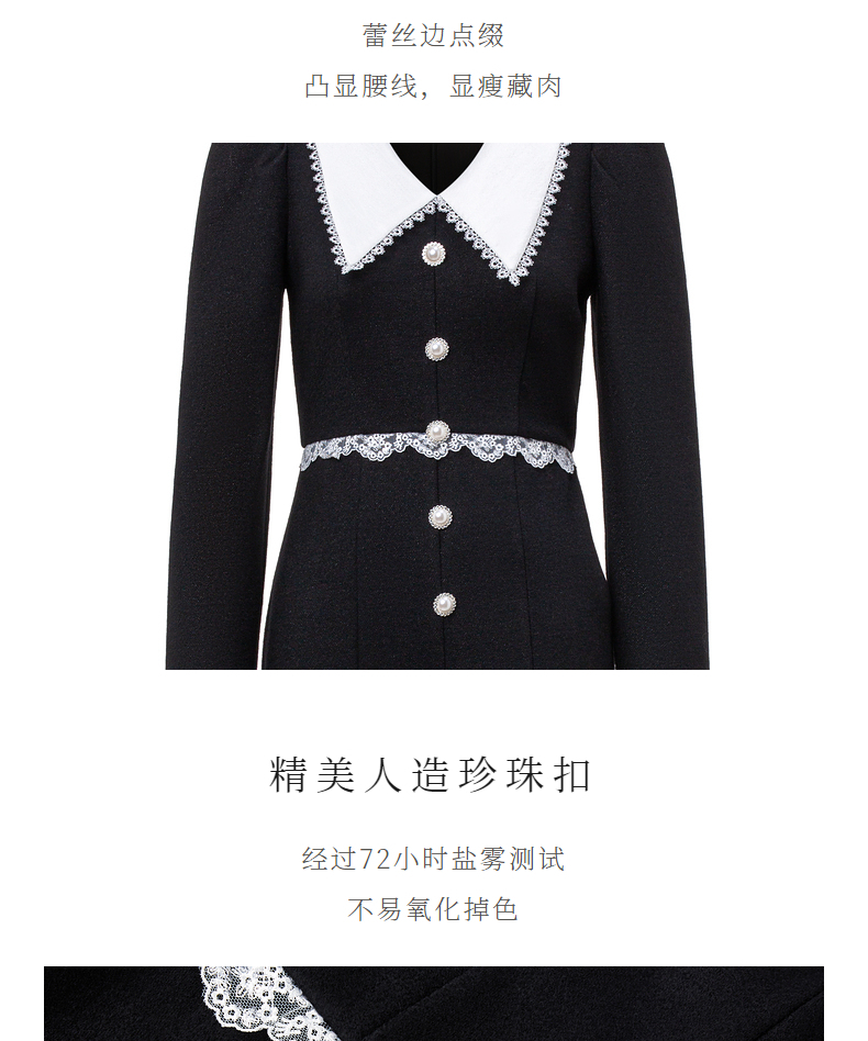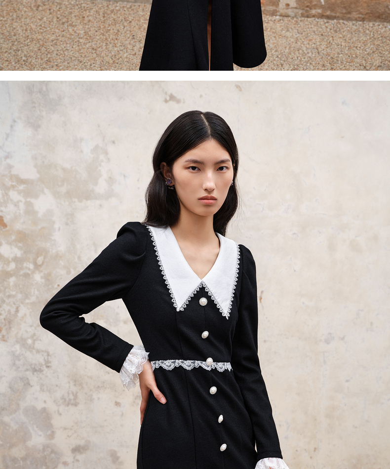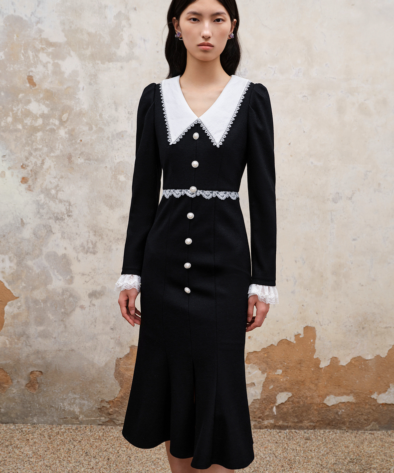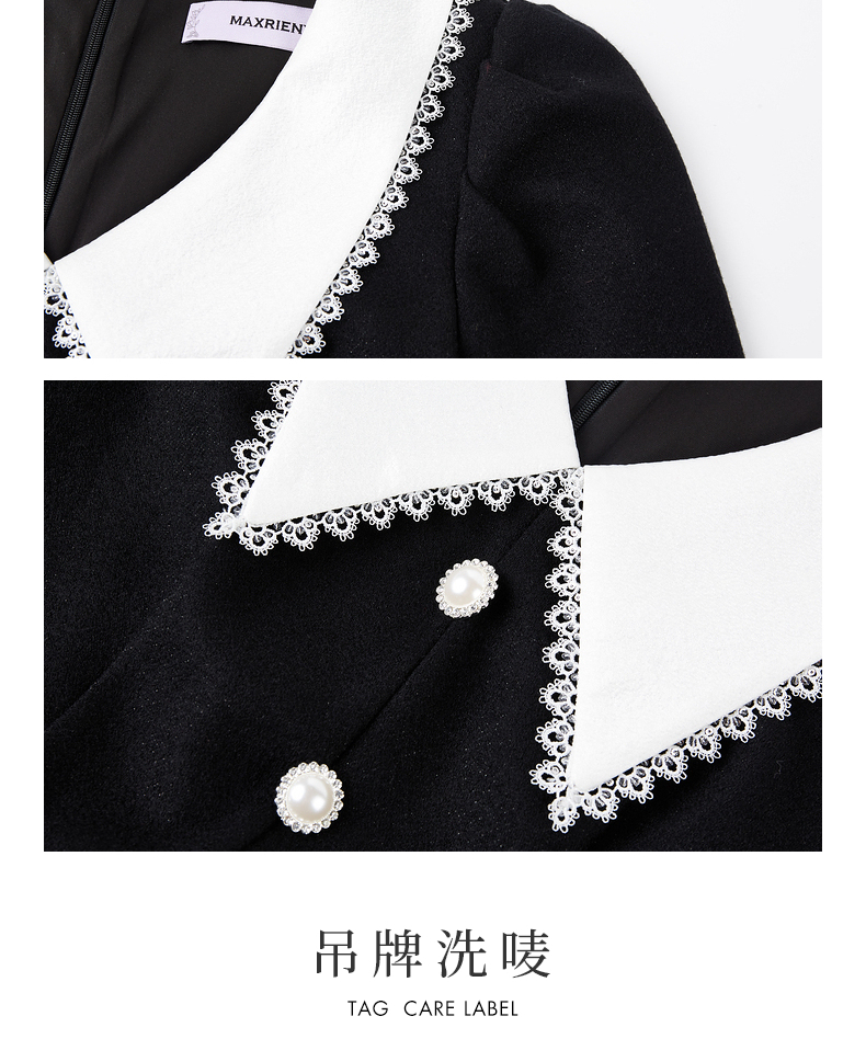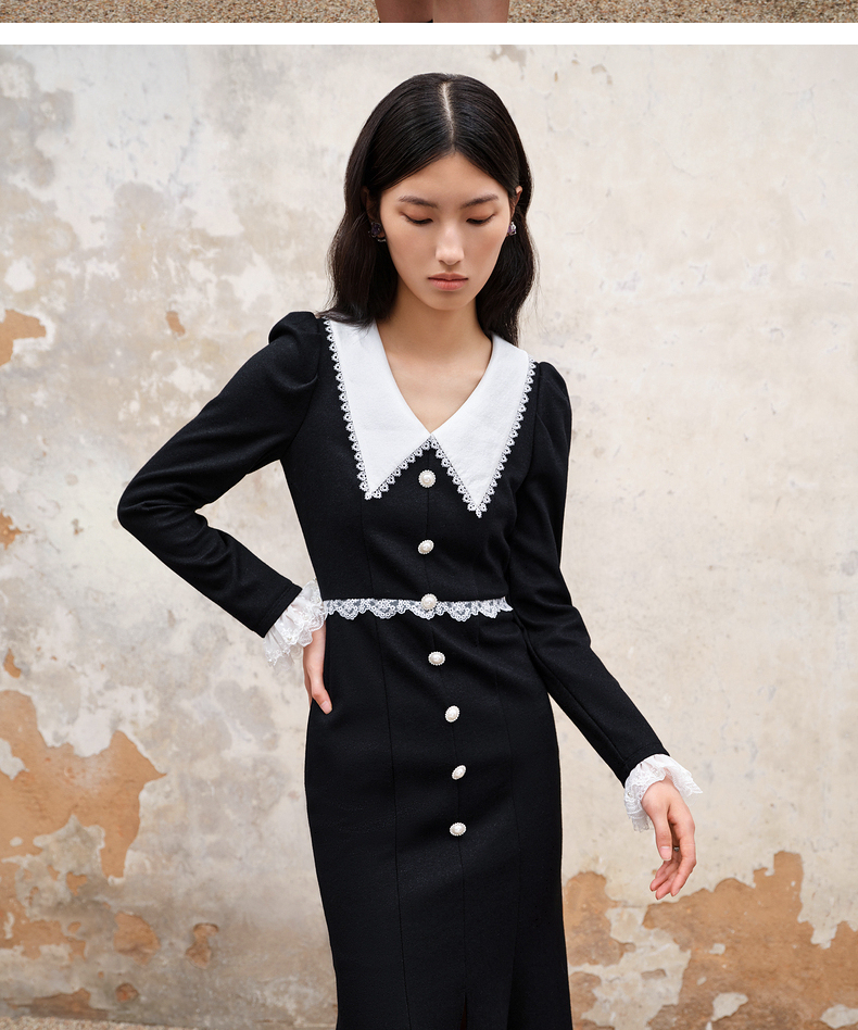 MAXRIENY法式浪漫复古翻领鱼尾连衣裙2023秋冬新款小黑裙修身裙子(货号:MS88DR511)