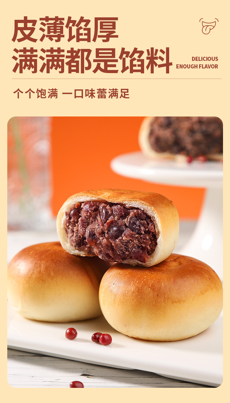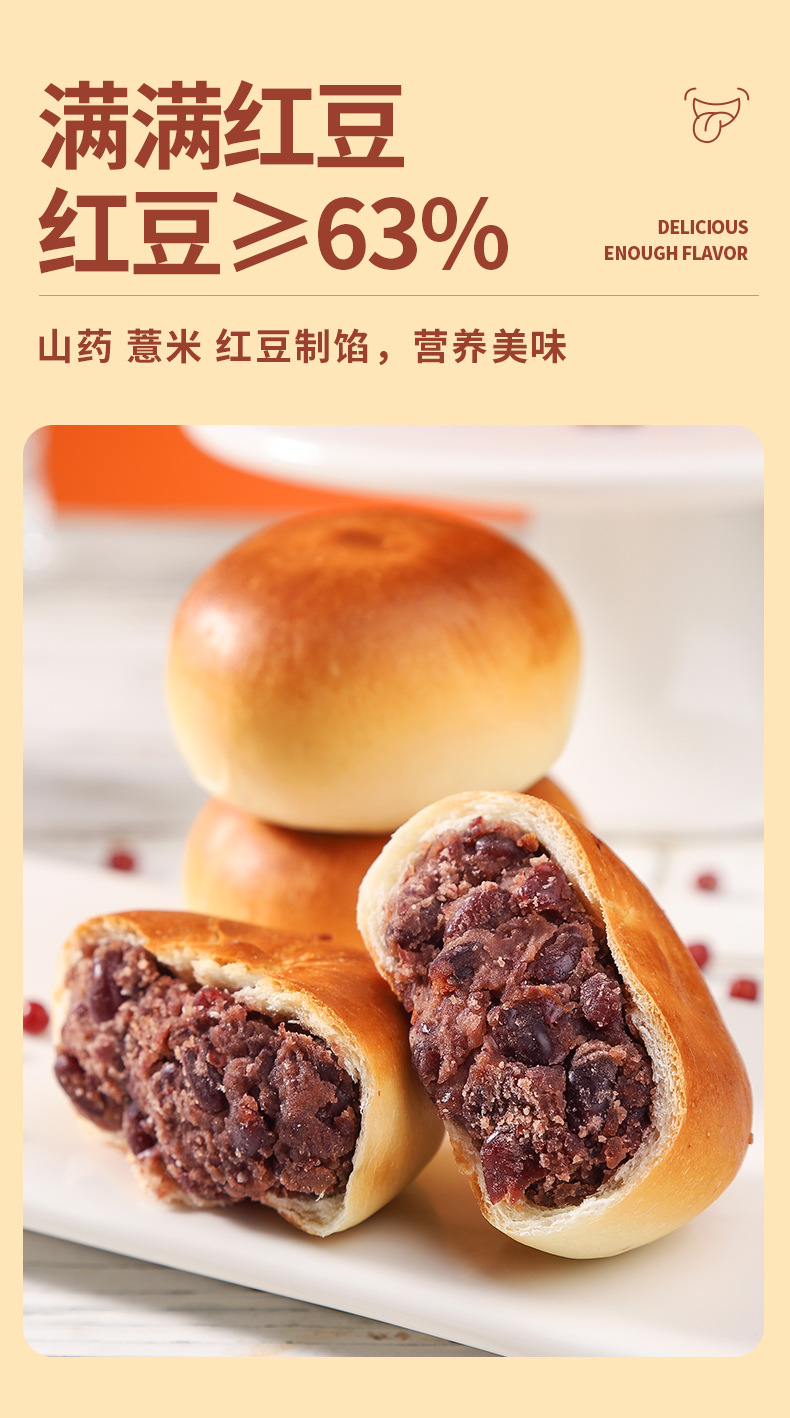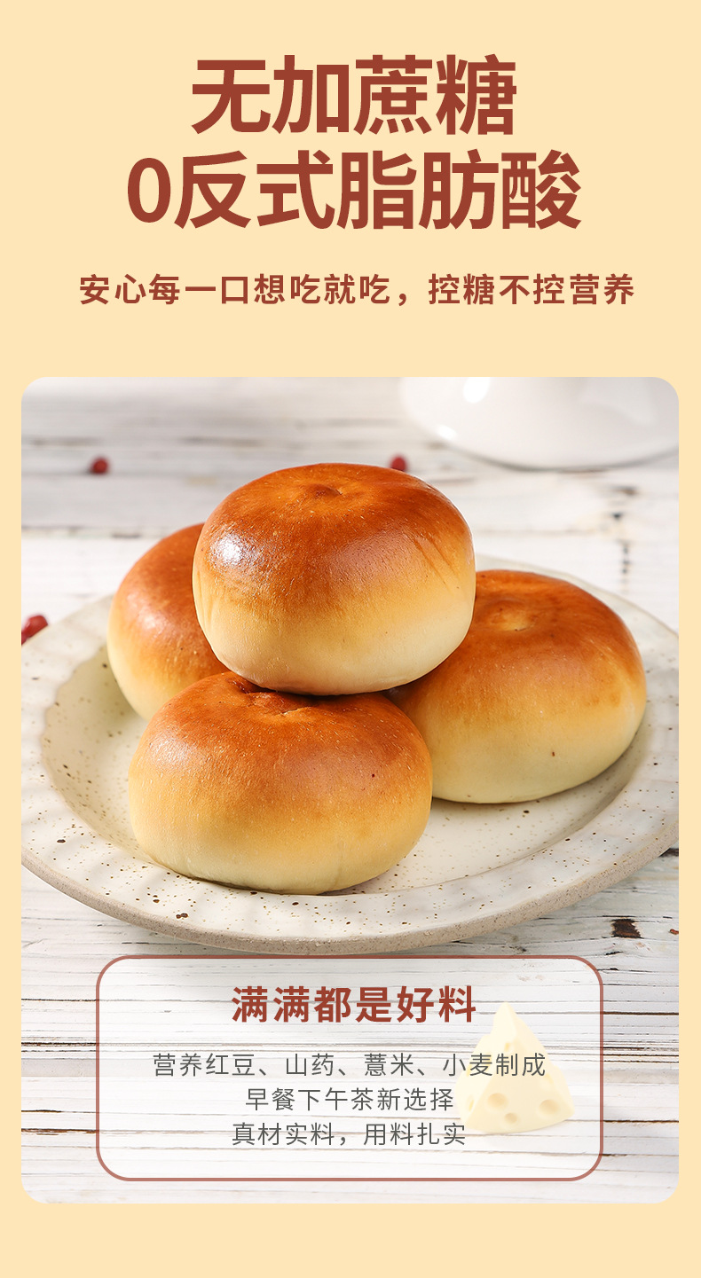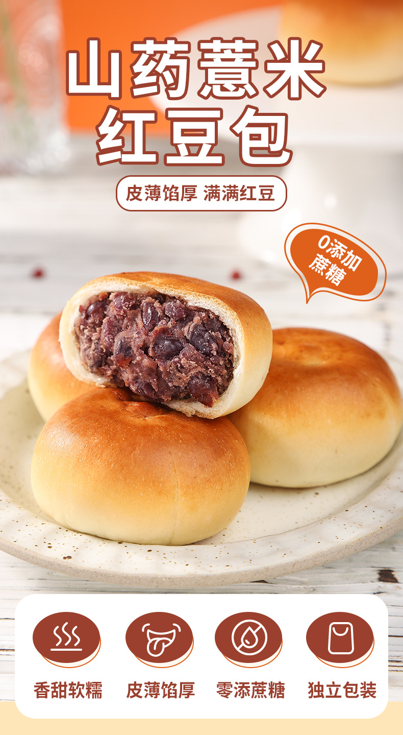 【薄皮软面包,口感松软】山药薏米红豆包薄皮面包无蔗糖即食营养早餐下午休闲饱腹零食茶点。xb