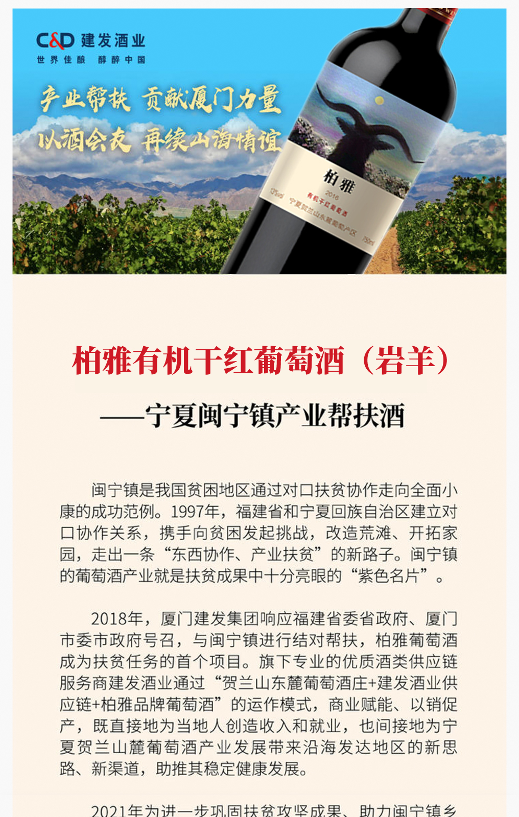 【贺兰山东麓产区】柏雅有机干红葡萄酒(岩羊)750ml*6