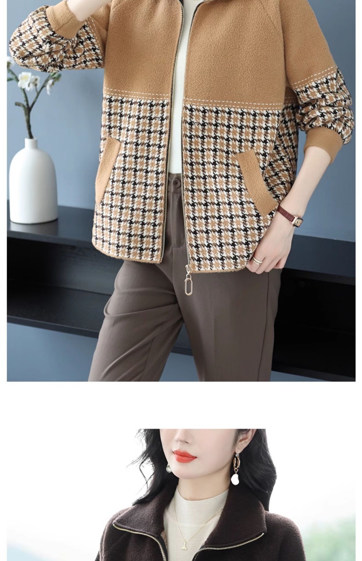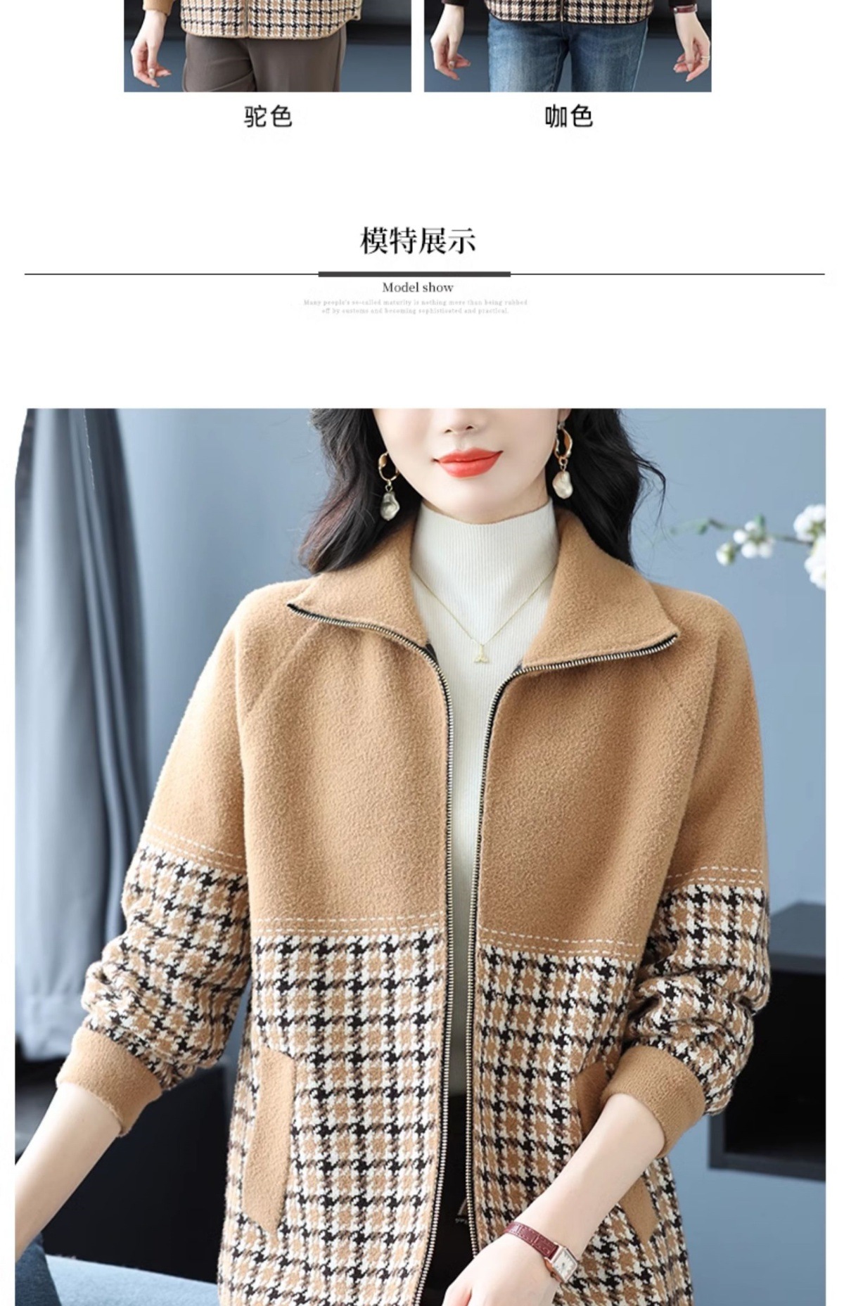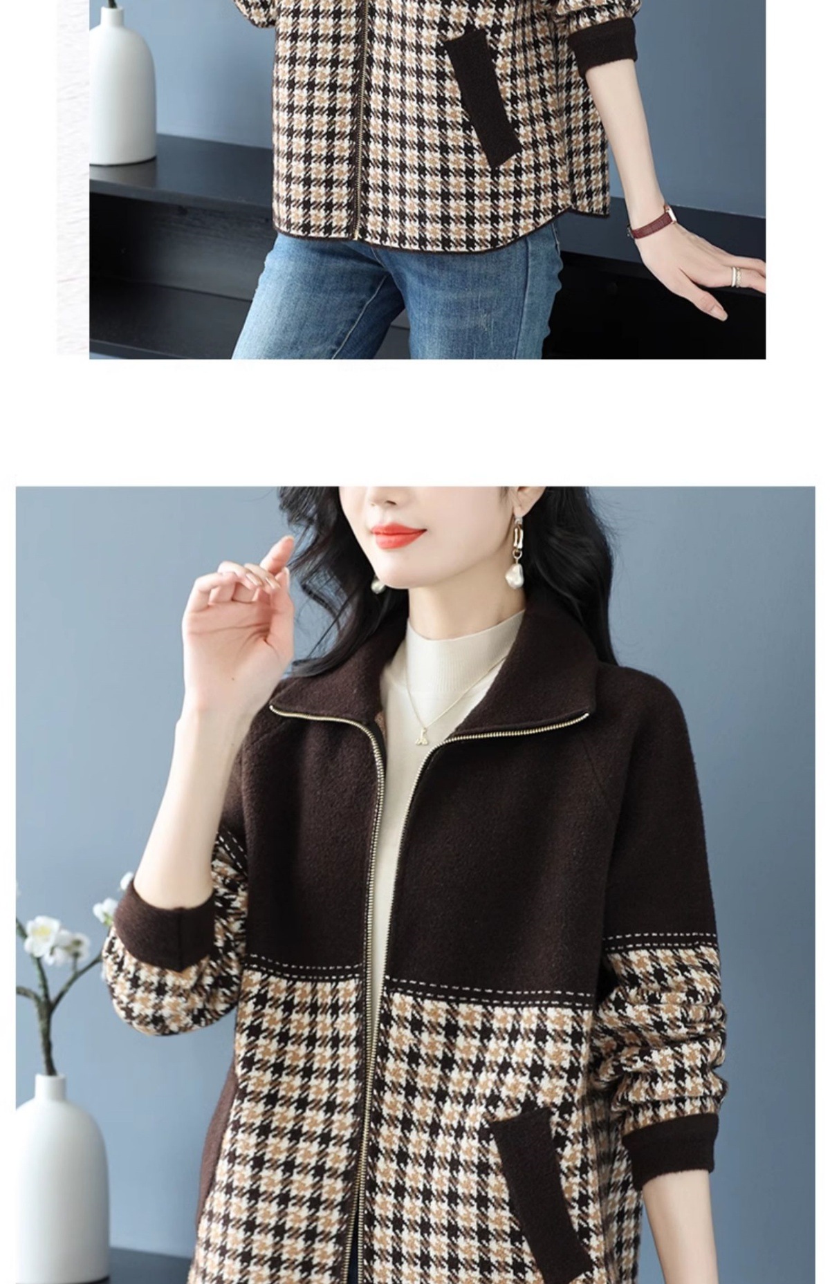 CC-10-5569大码翻领针织开衫短外套女春秋宽松显瘦毛衣拉链洋气小个子上衣女