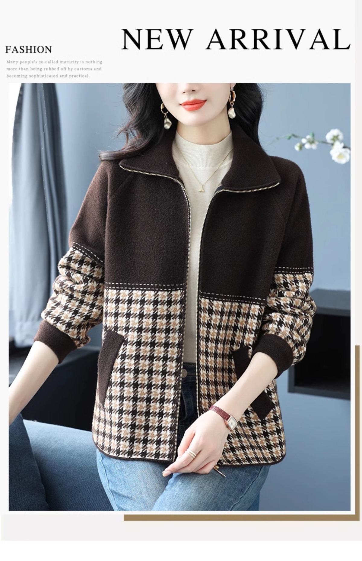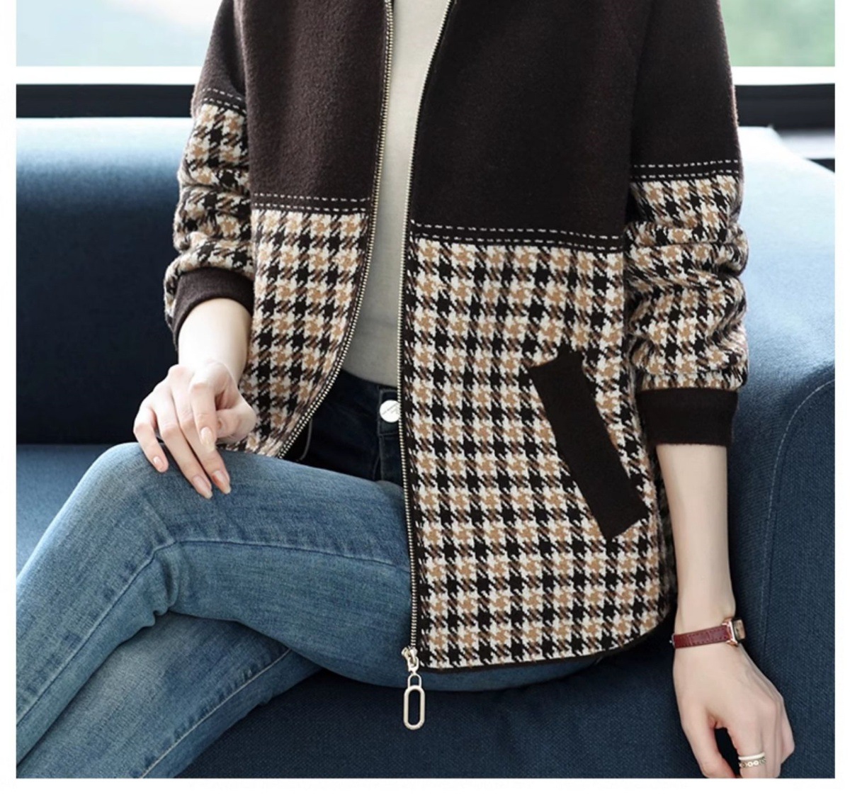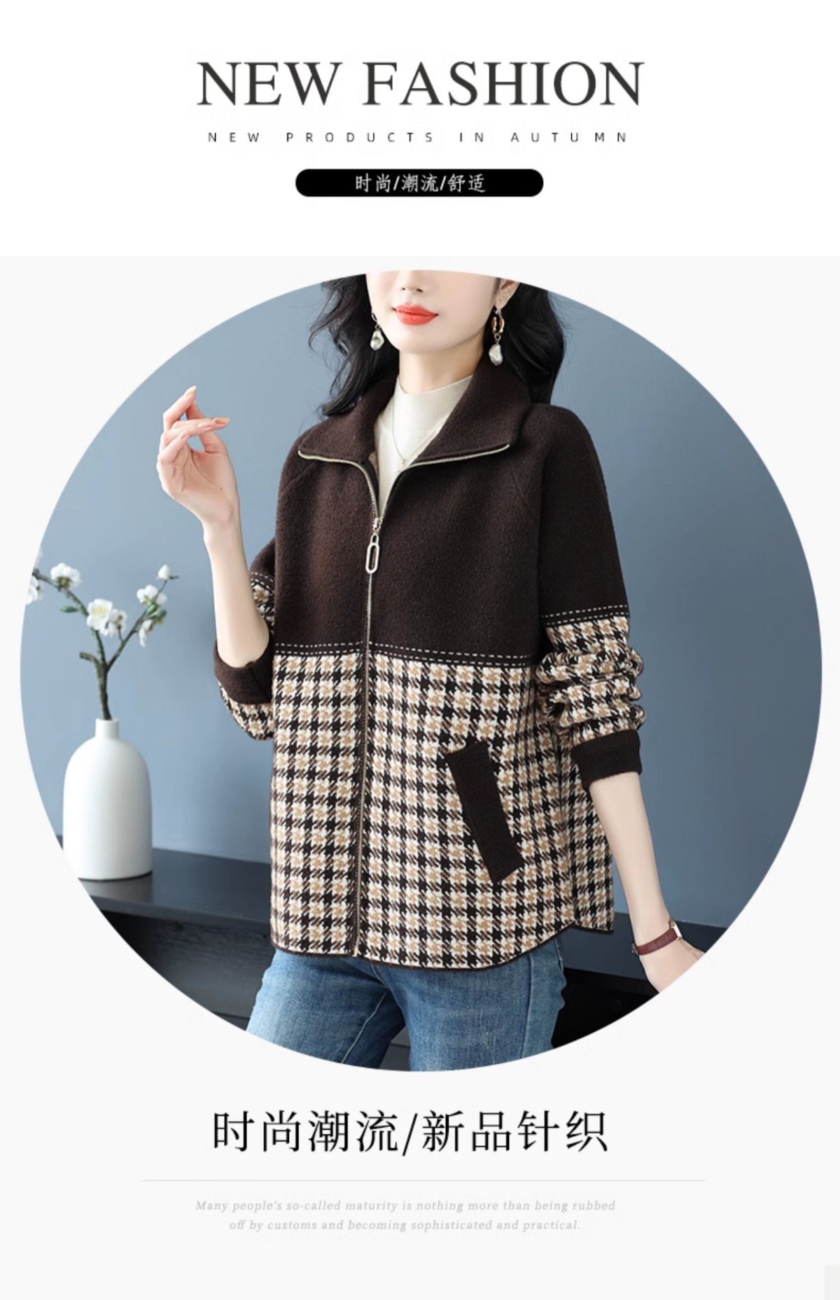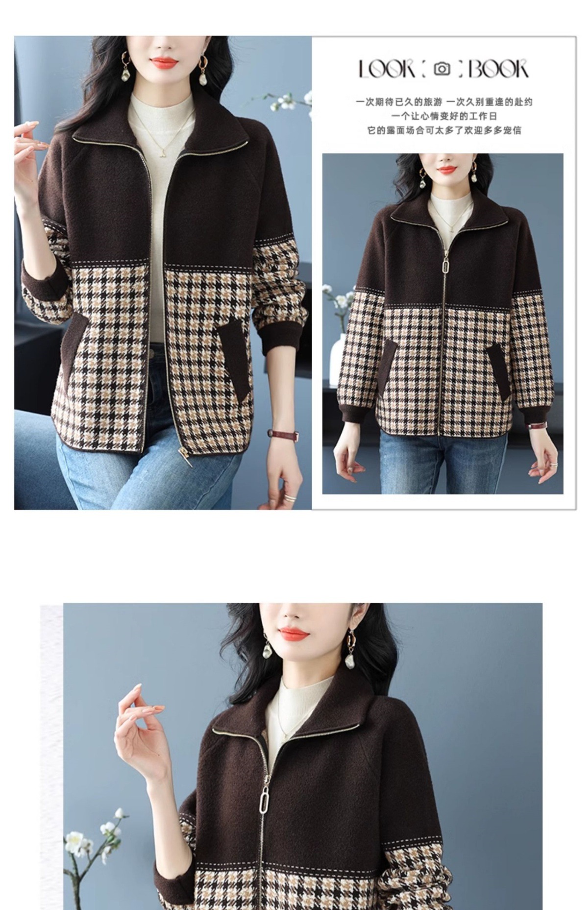 CC-10-5569大码翻领针织开衫短外套女春秋宽松显瘦毛衣拉链洋气小个子上衣女