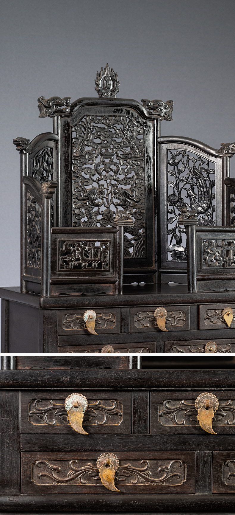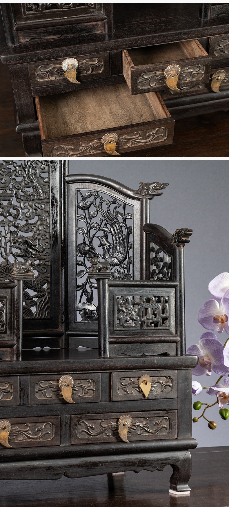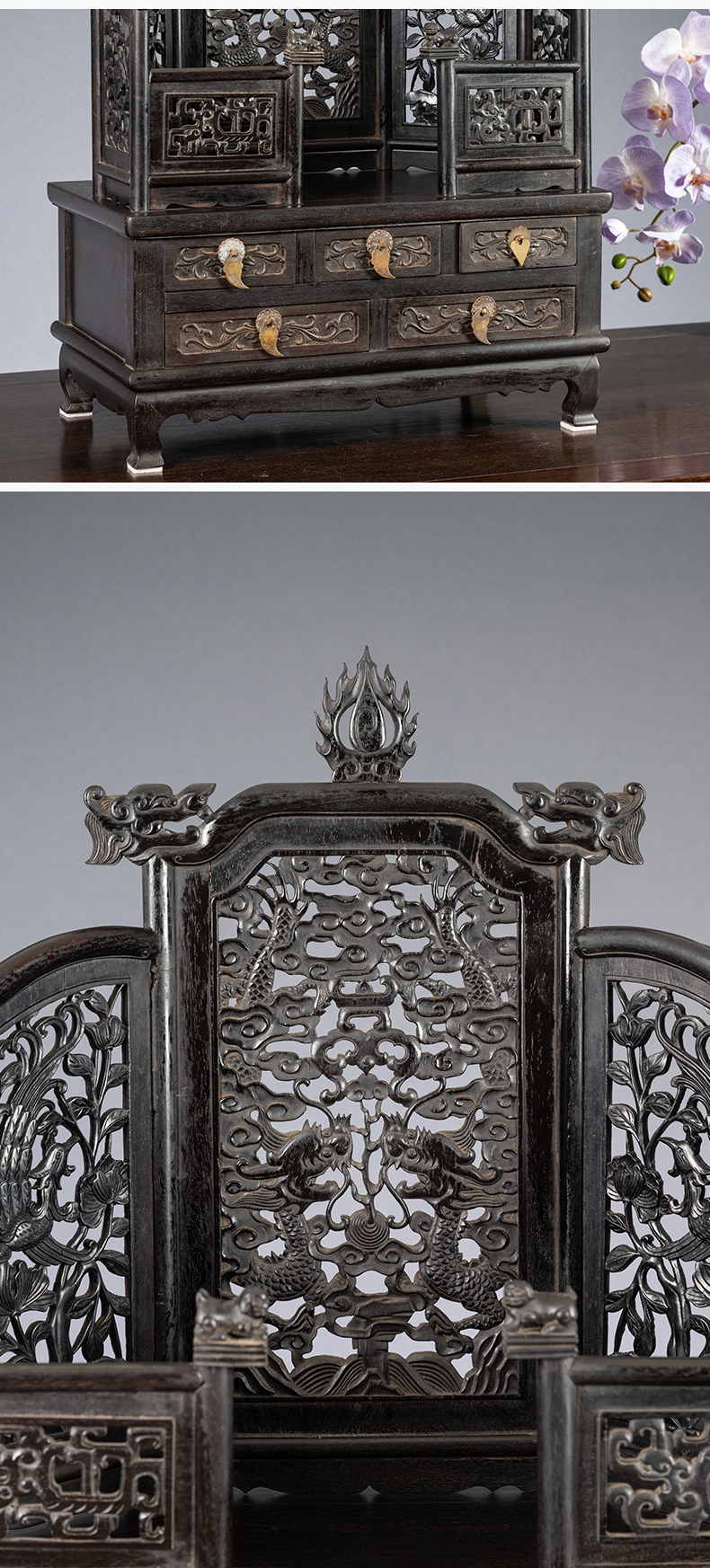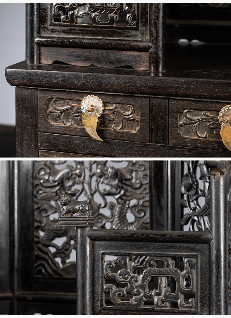 清 黄花梨镶竹丝编四抹门亮格柜摆件