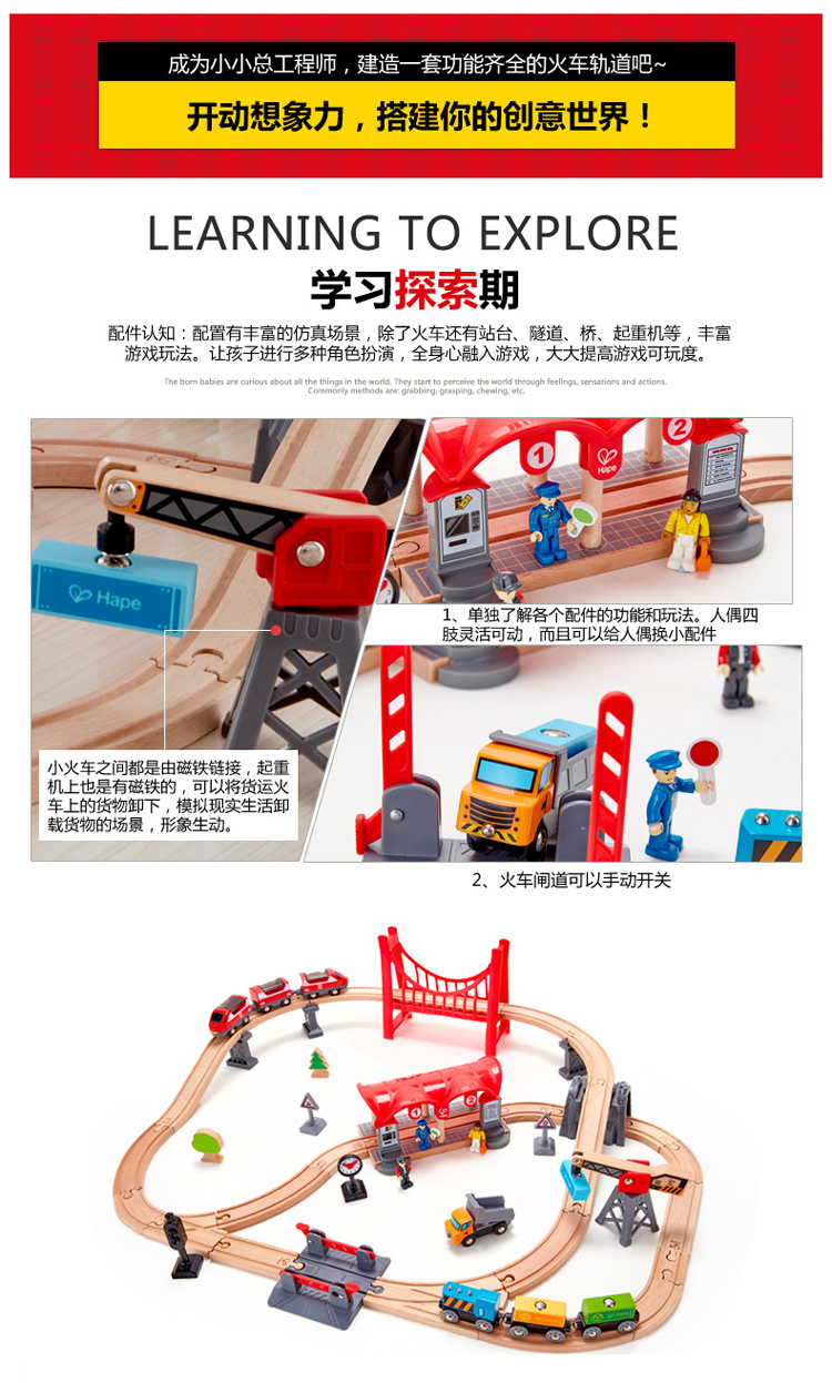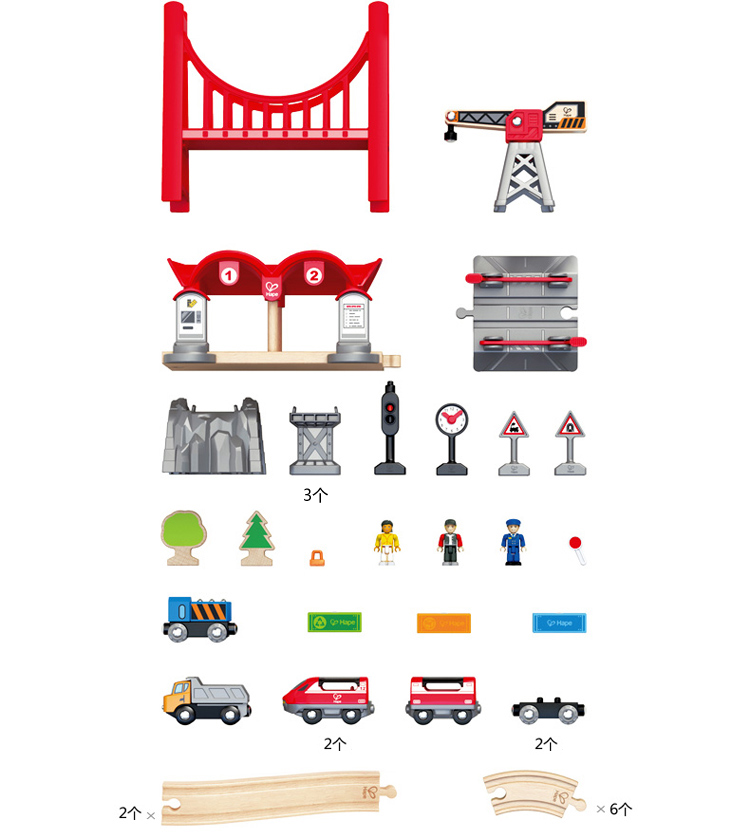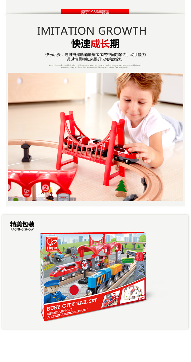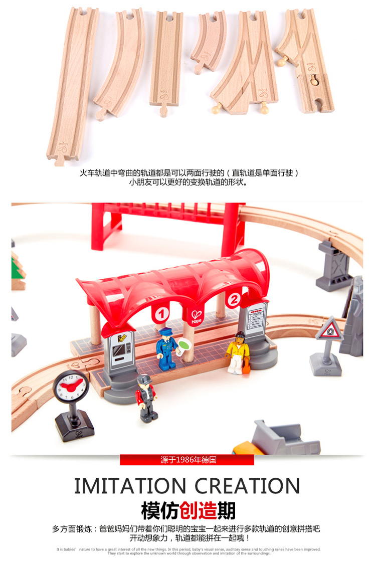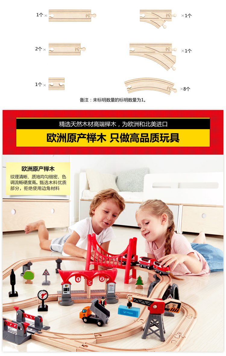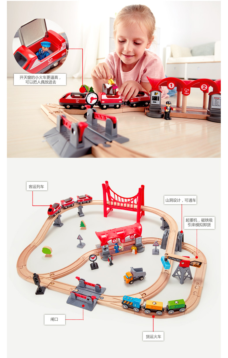 Hape(德国)儿童小火车轨道玩具木质拼搭diy多功能套装积木礼物E3730