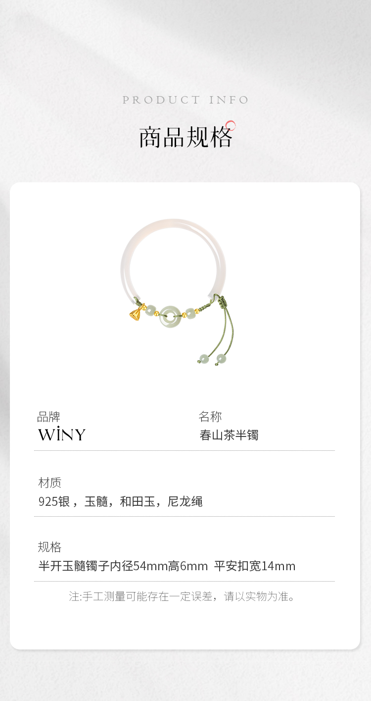 Winy925纯银春山茶半镯送女友闺蜜节日生日礼物