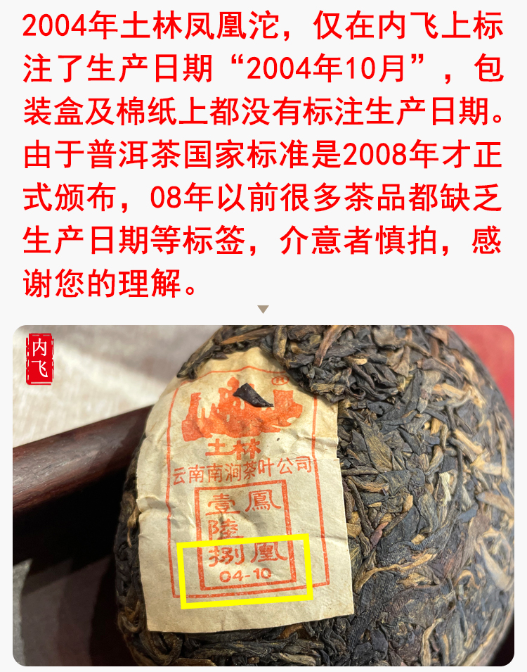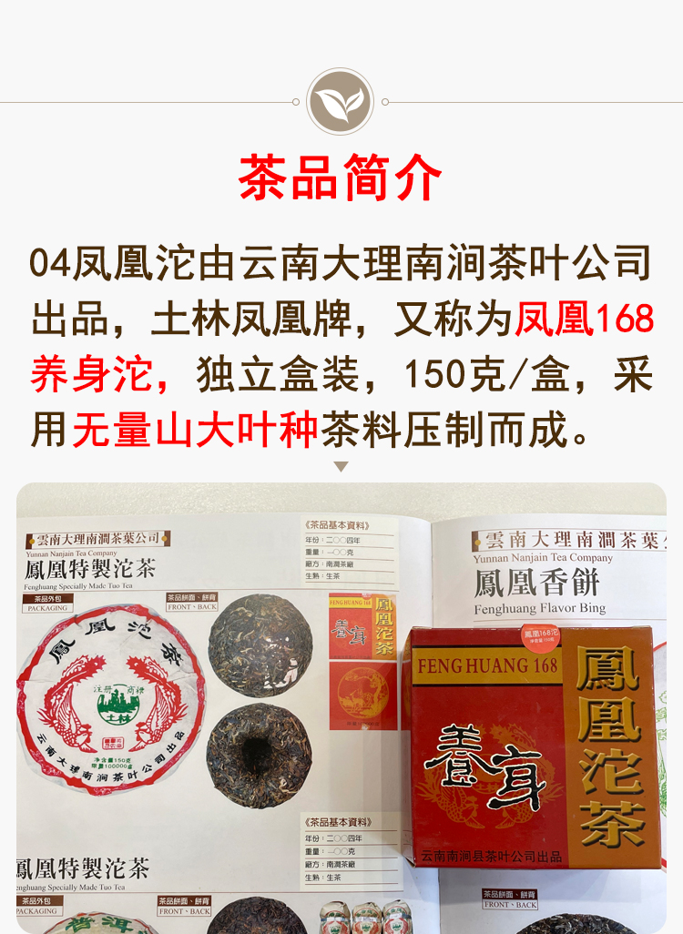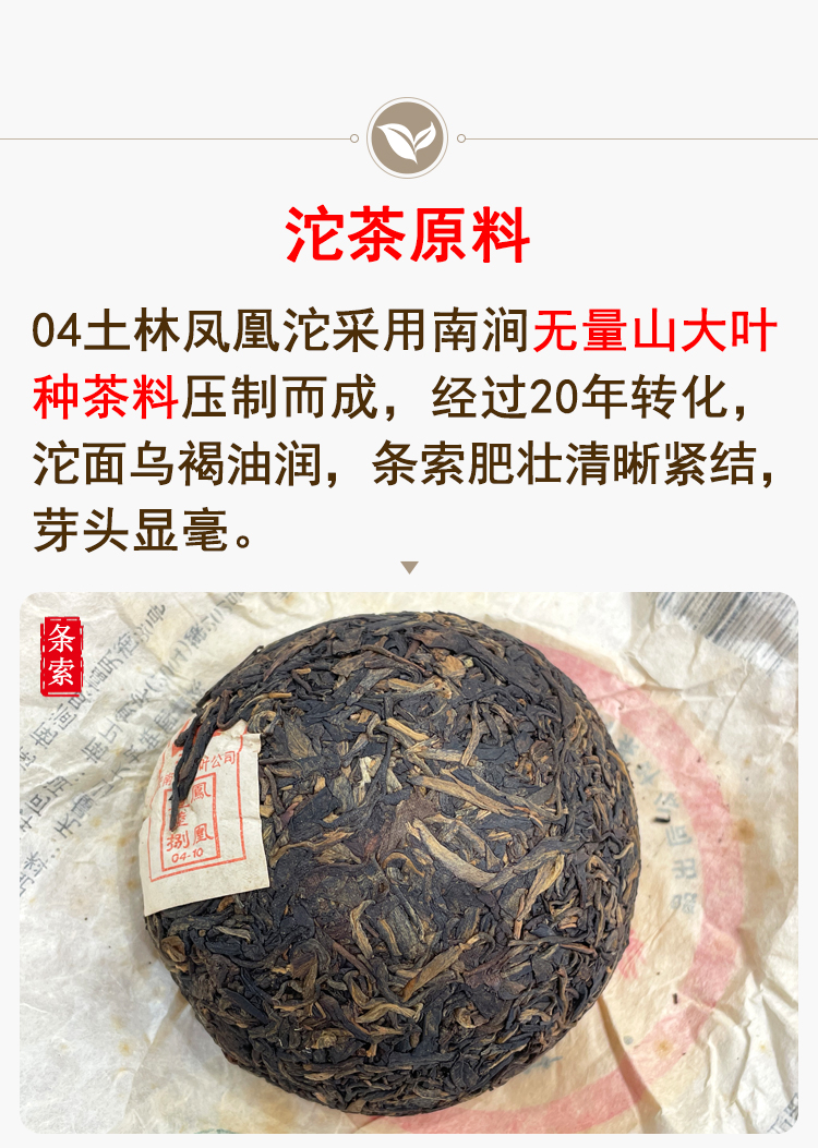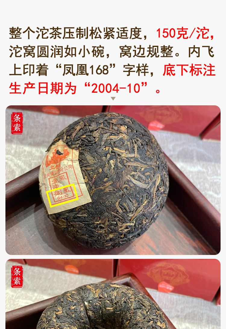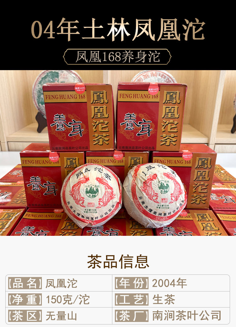 【品质好茶】2004年南涧茶厂土林凤凰沱 别名168养身沱 普洱老生茶 无量山茶区原料 原件一手仓高香 烟香入水 浓强度高 高品质性价比很高 干仓真品 一盒一沱 一沱150克 单盒标价