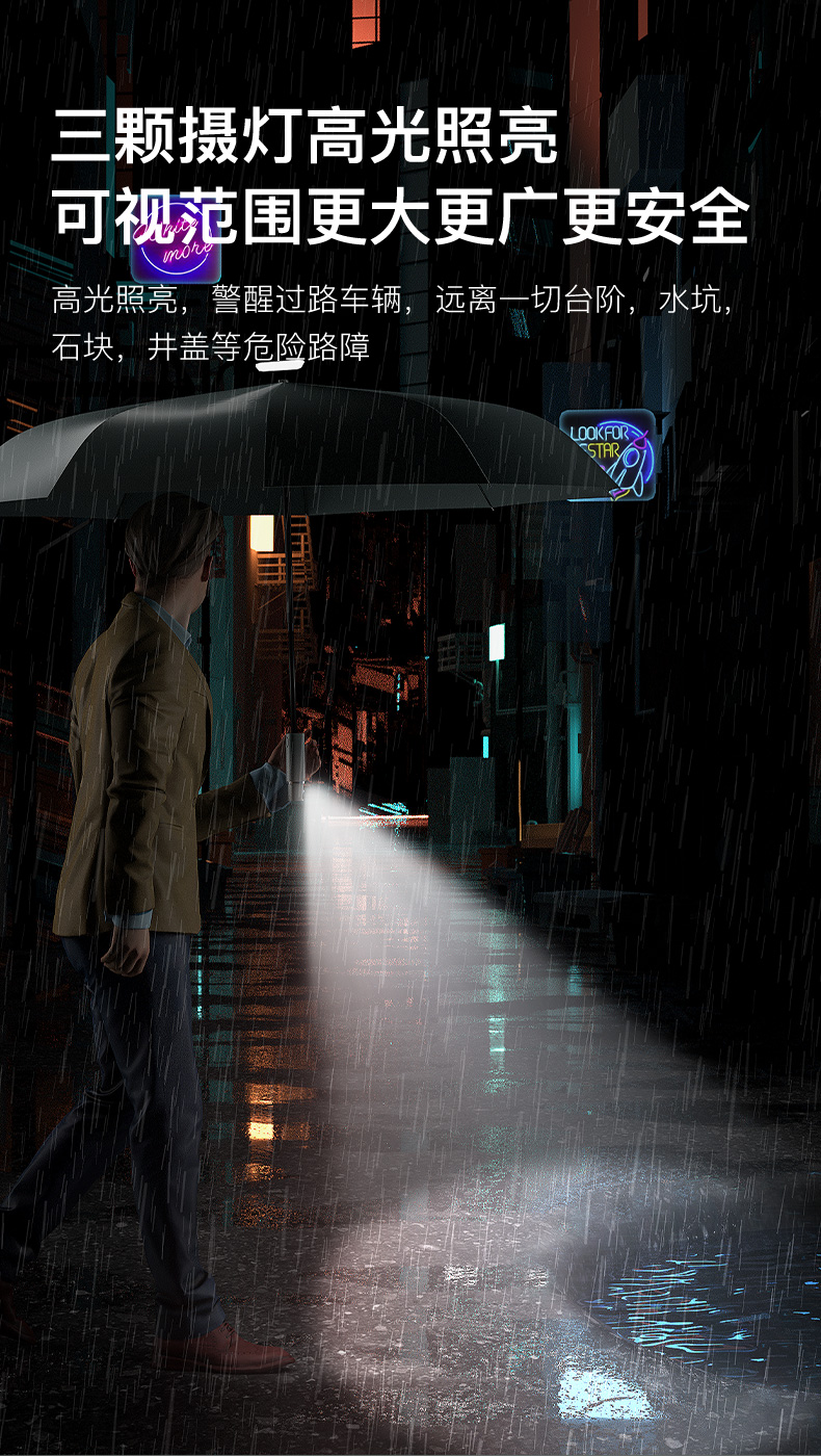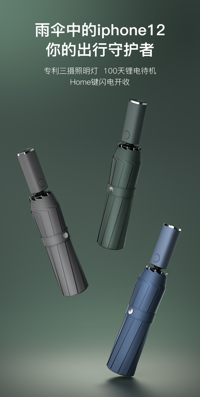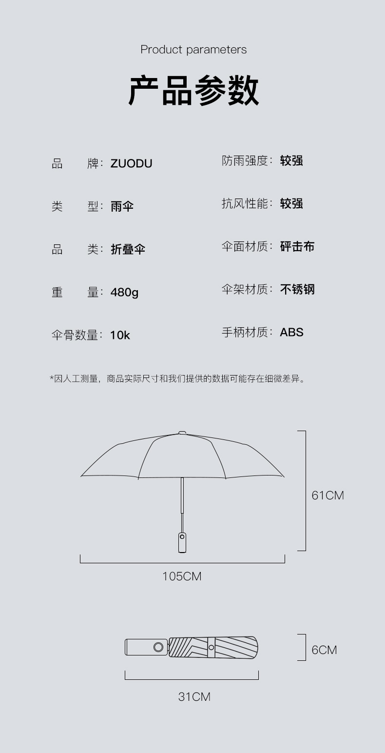 左都 ZD107 全自动大号男女晴雨两用反向三摄灯