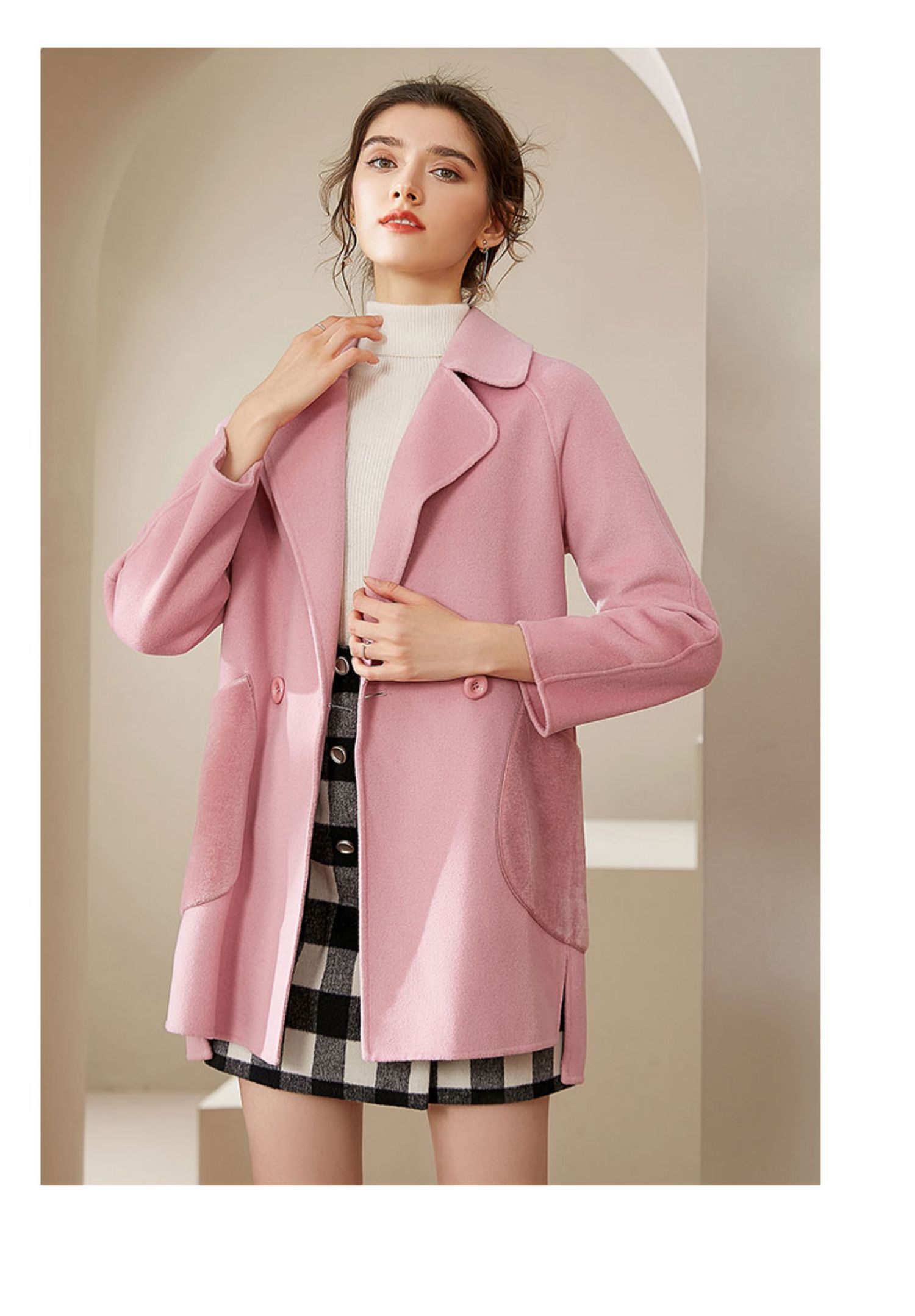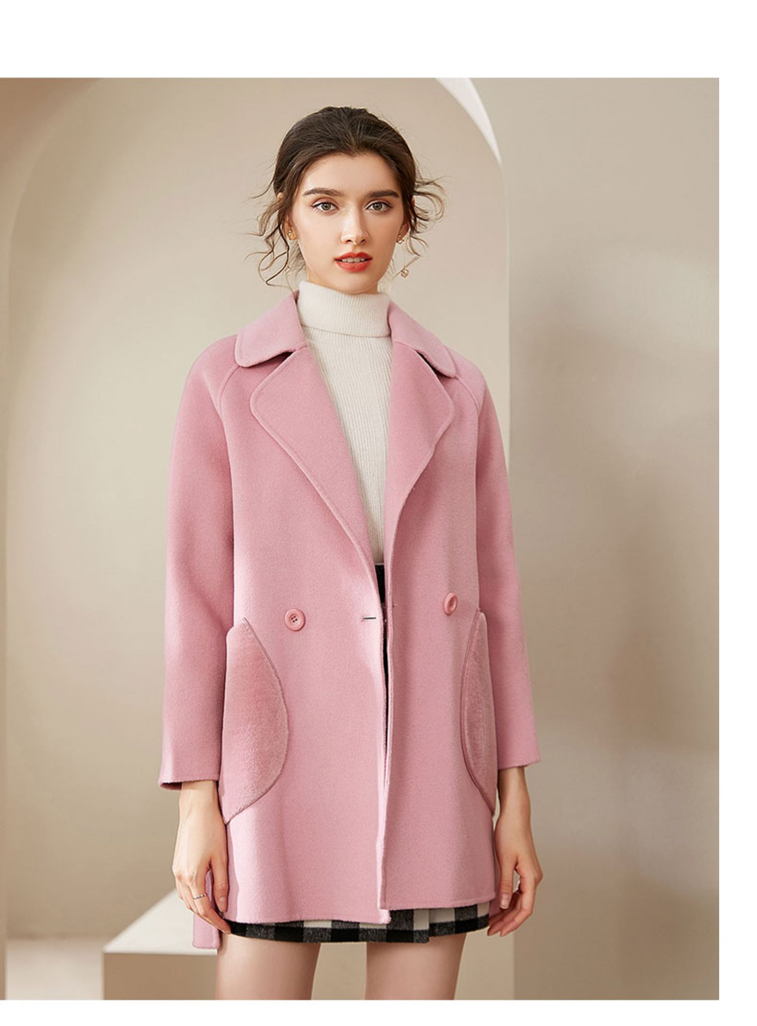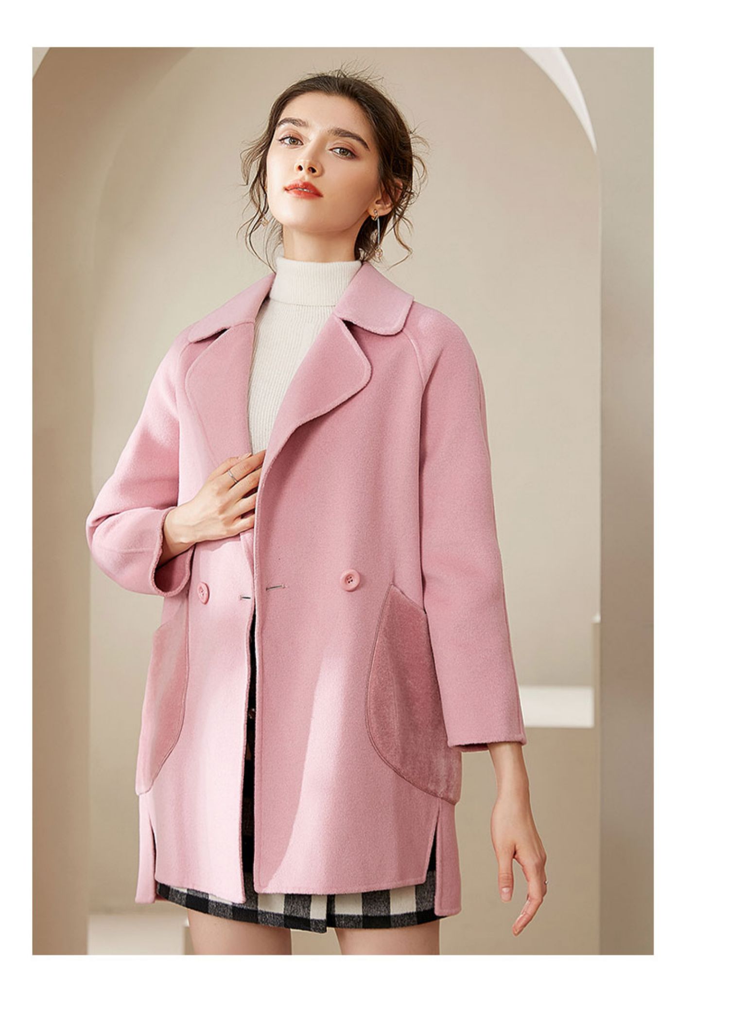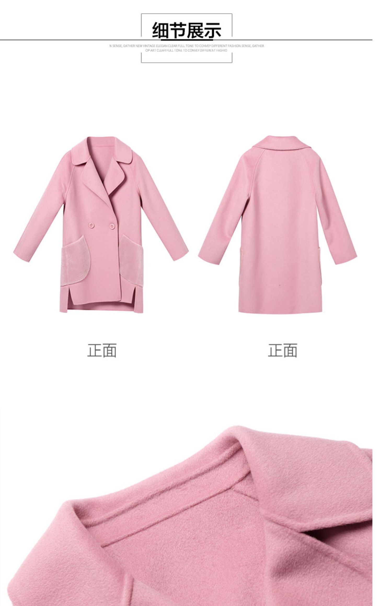 仅限本群福利 (VIP福利 性价比超高!售完下架! 不退不换)洛诗琳秋冬大口袋粉色双面呢大衣女中长款羊毛呢子外套(小个子可入!)