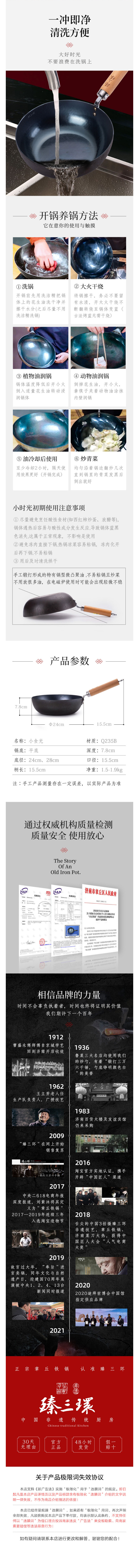 基地直发 一锅多用丨臻三环手工锻打章丘铁锅 无涂层 家用物理不粘铁锅/锅盖 古斗木把手(28/24cm口径 黑色已开锅)