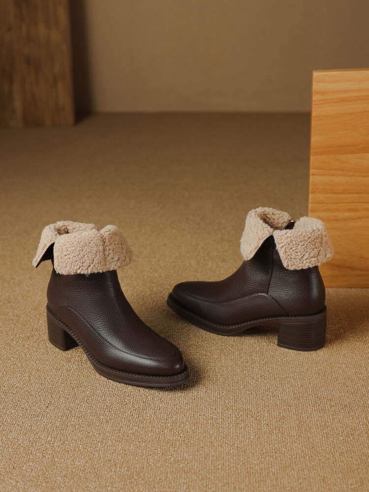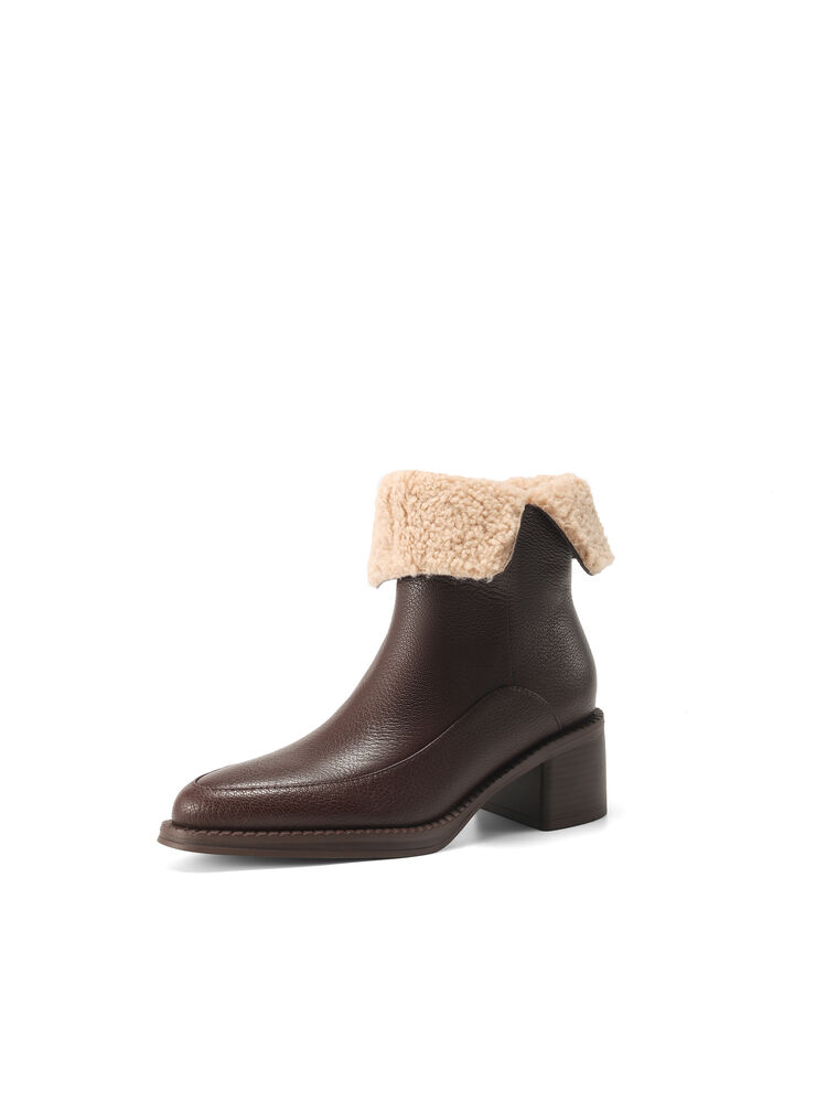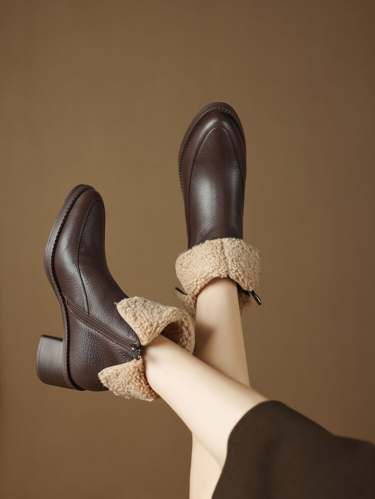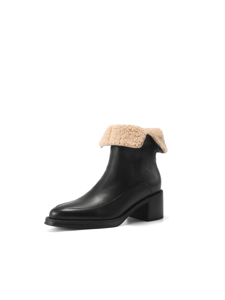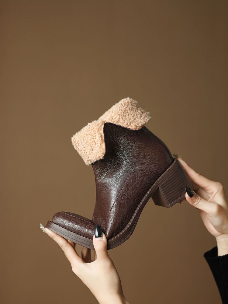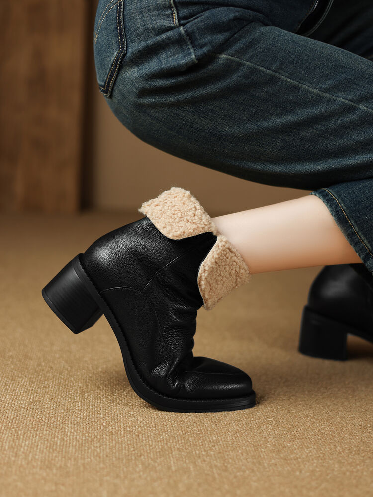 【预售5天】巨保暖~真皮尖头粗跟侧拉链短靴女加厚绒毛毛鞋冬季新款高跟棉靴DTN&259-2